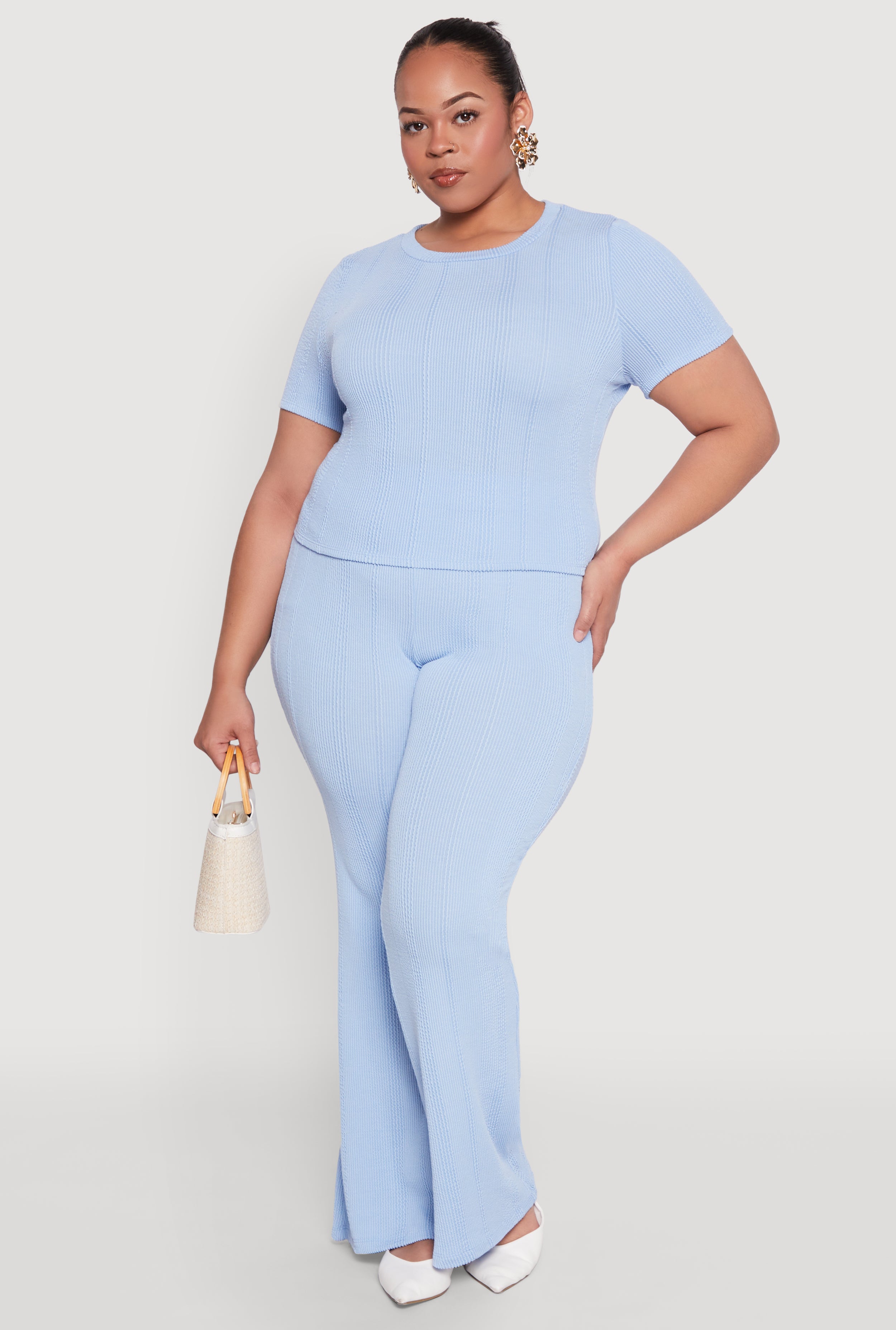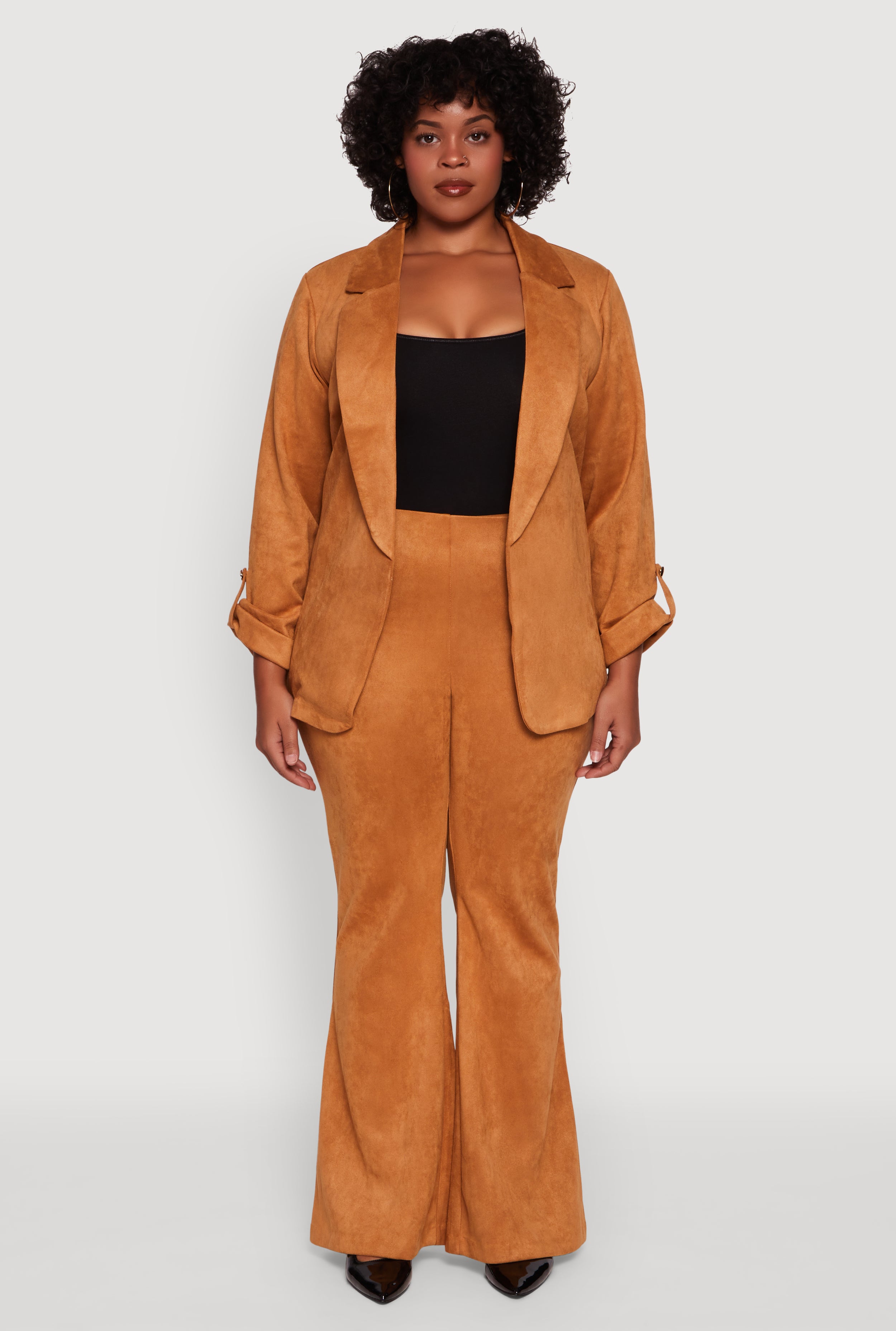 Plus Size High Waisted Faux Suede Flare Dress Pants