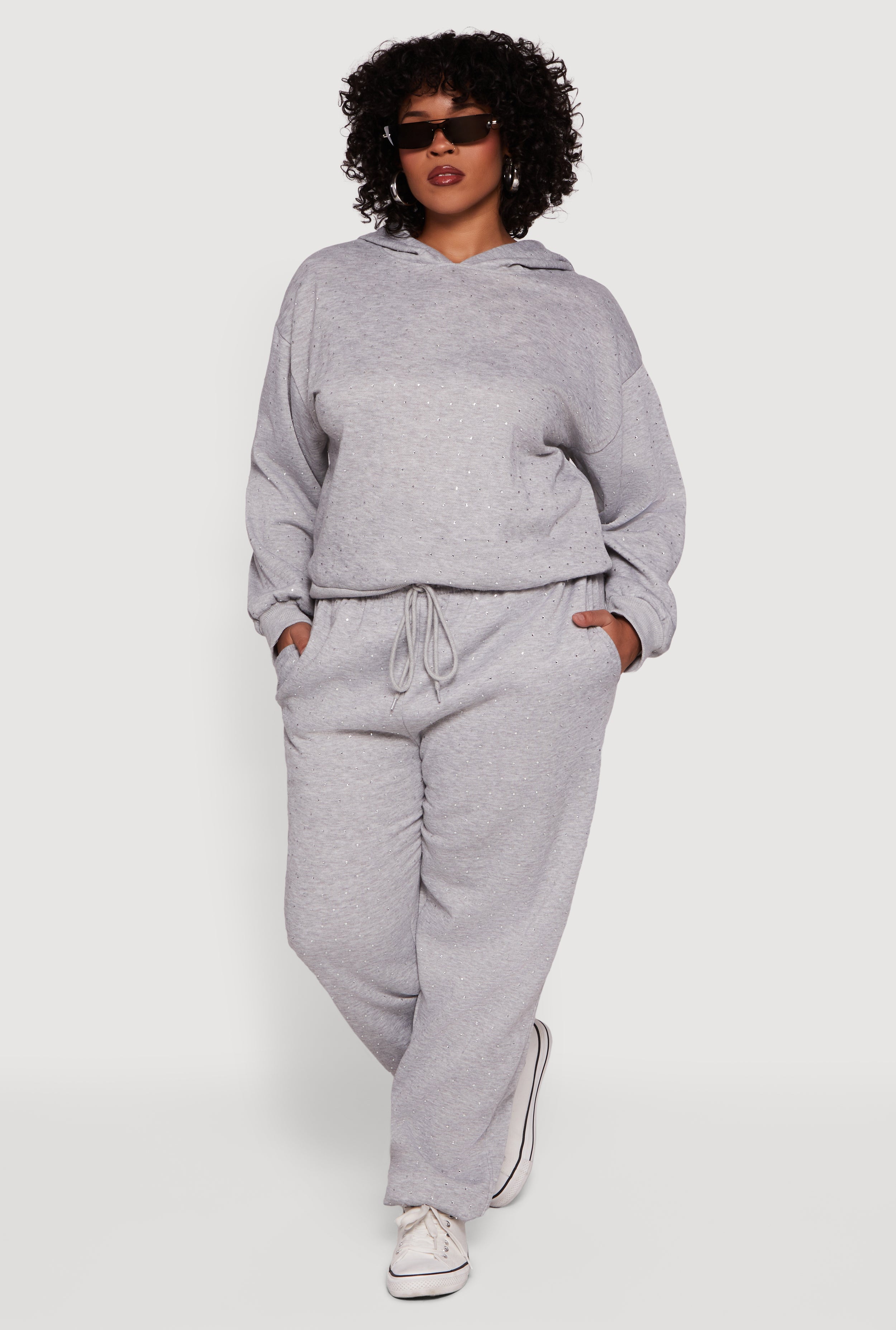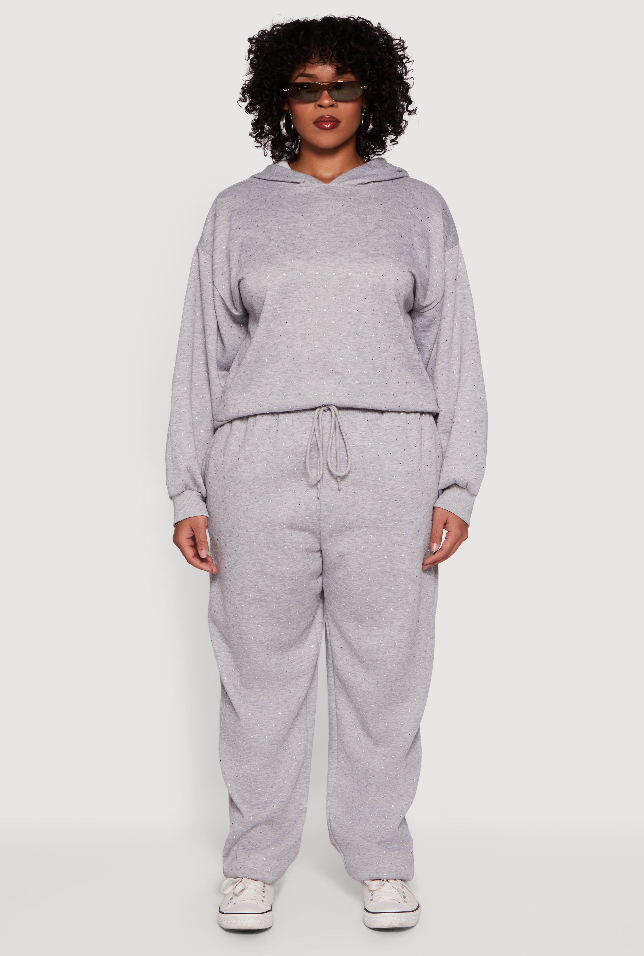 Plus Size Rhinestone Studded Drawstring Waist Sweatpants