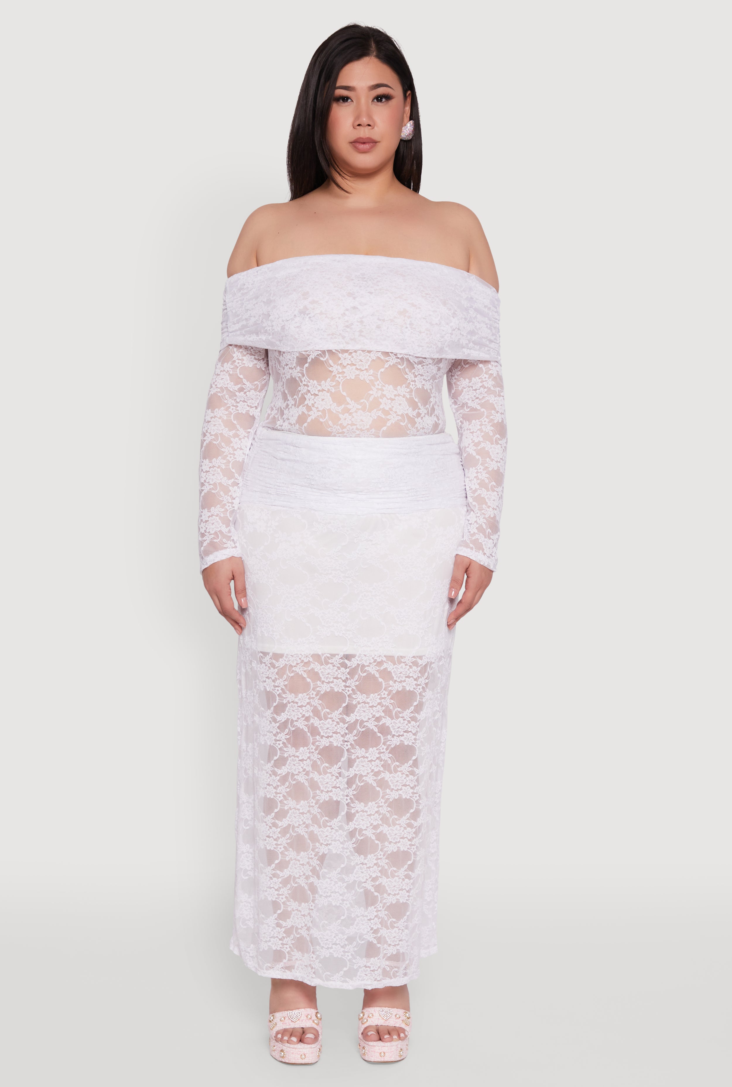 Plus Size Lace High Waisted Fold Over Maxi Skirt