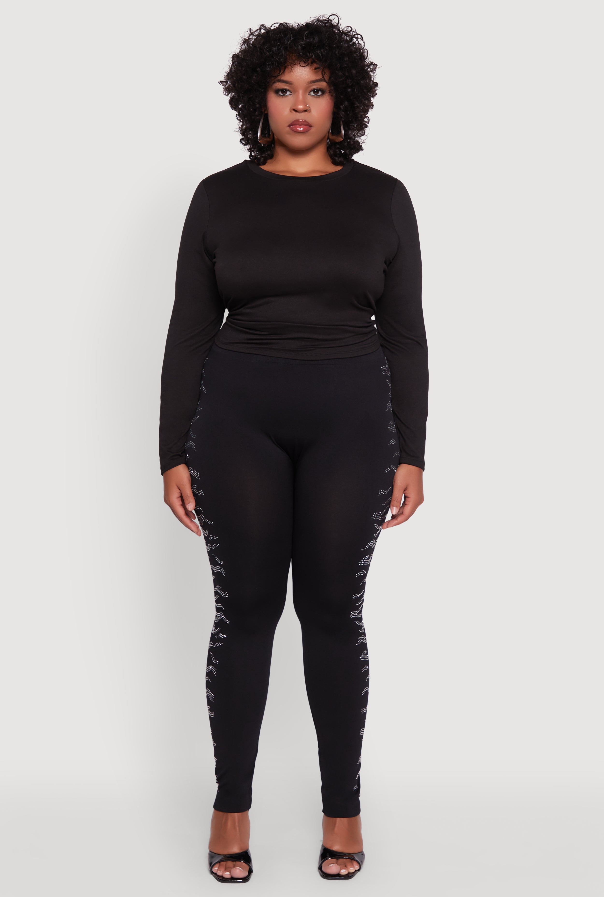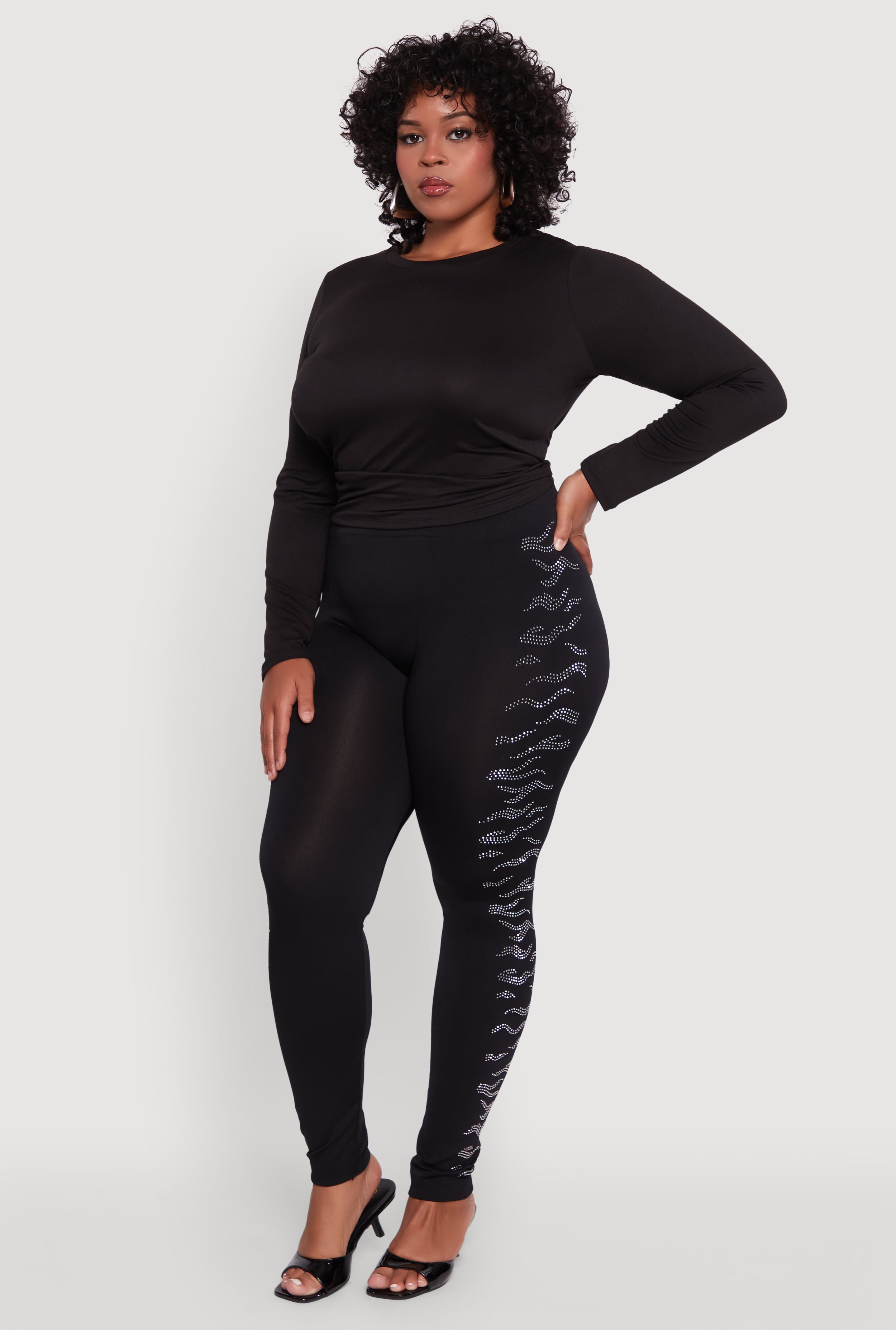Plus Size Seamless High Waisted Zebra Rhinestone Trim Leggings