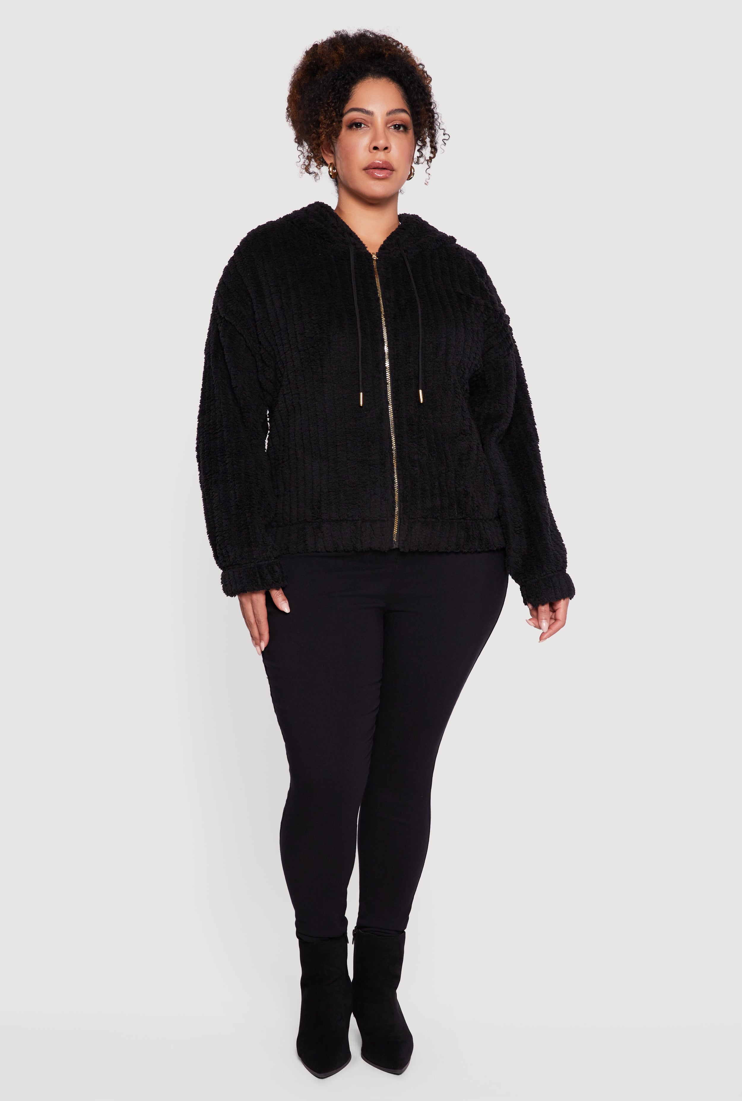 Plus Size Zip Front Hooded Sherpa Jacket