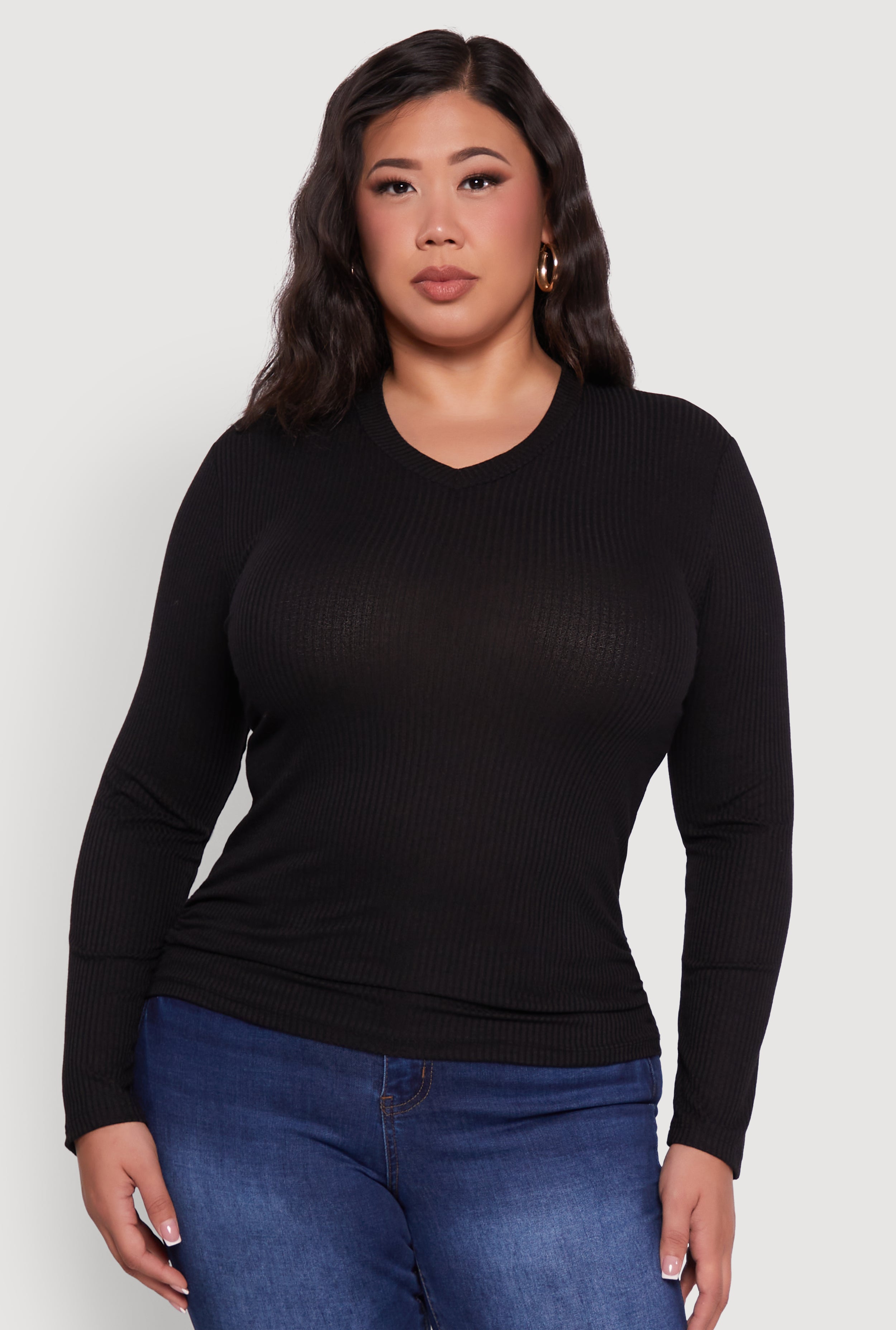 Plus Size Seamless V Neck Rib Knit Top