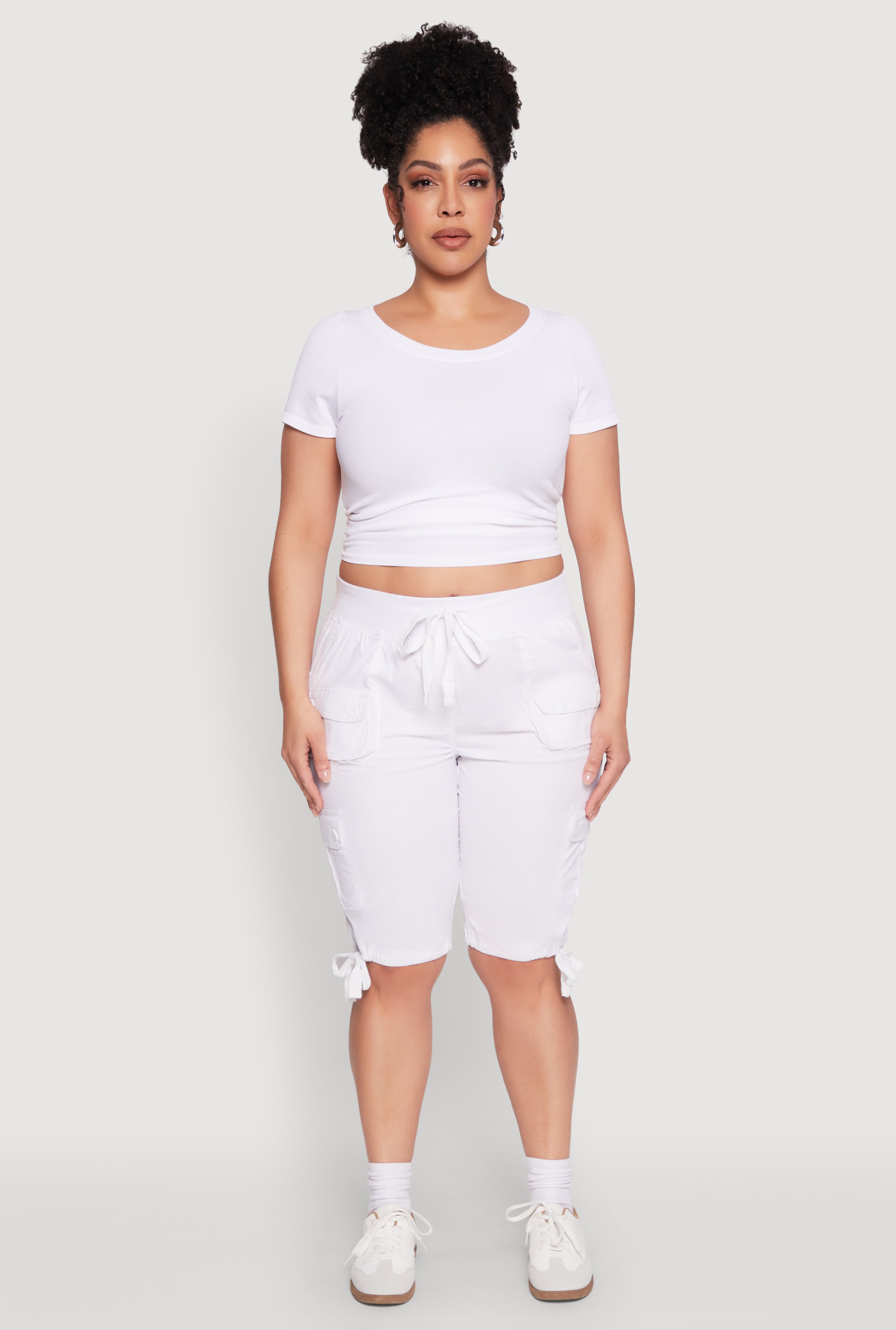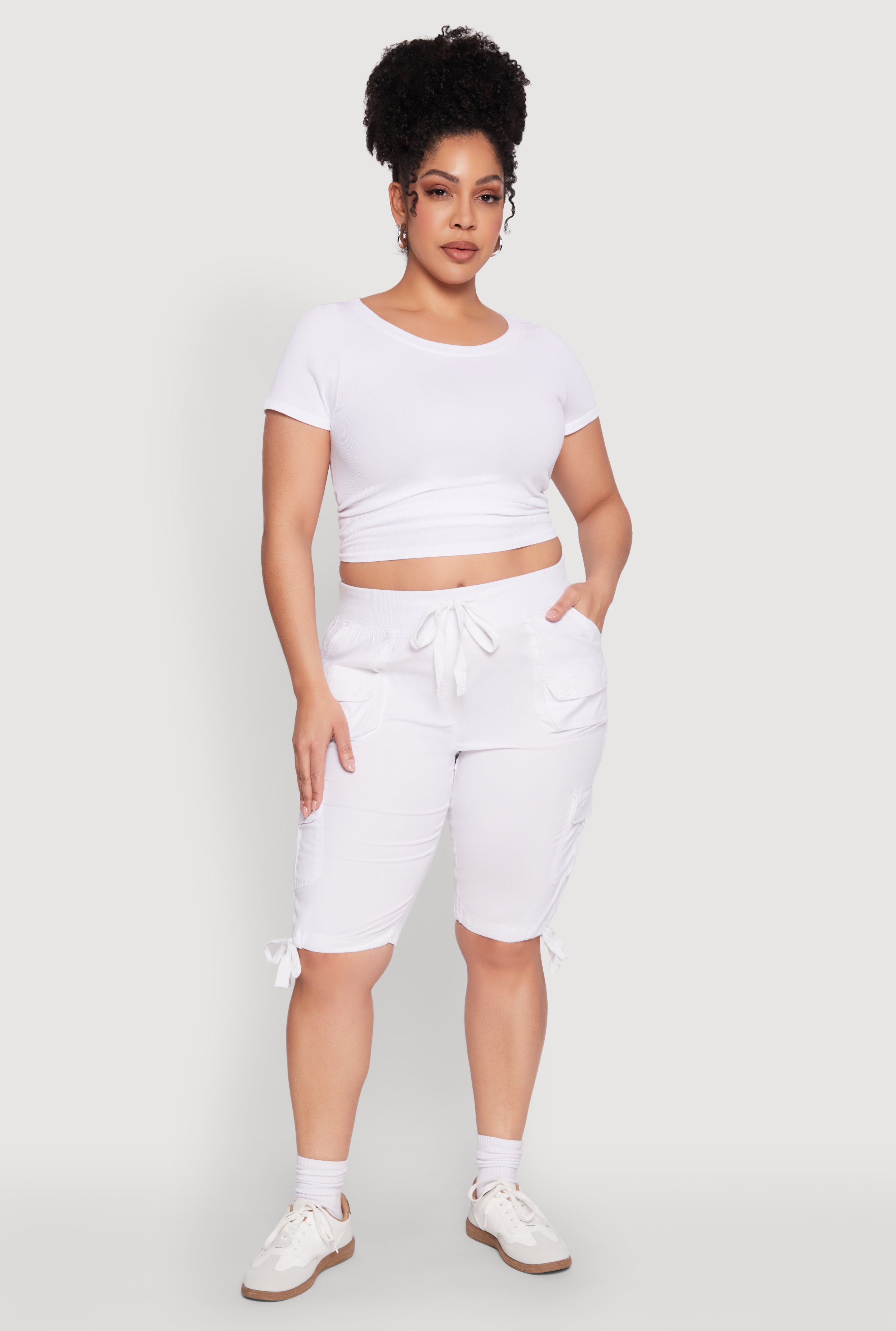 Plus Size Tie Hem Cargo Bermuda Shorts