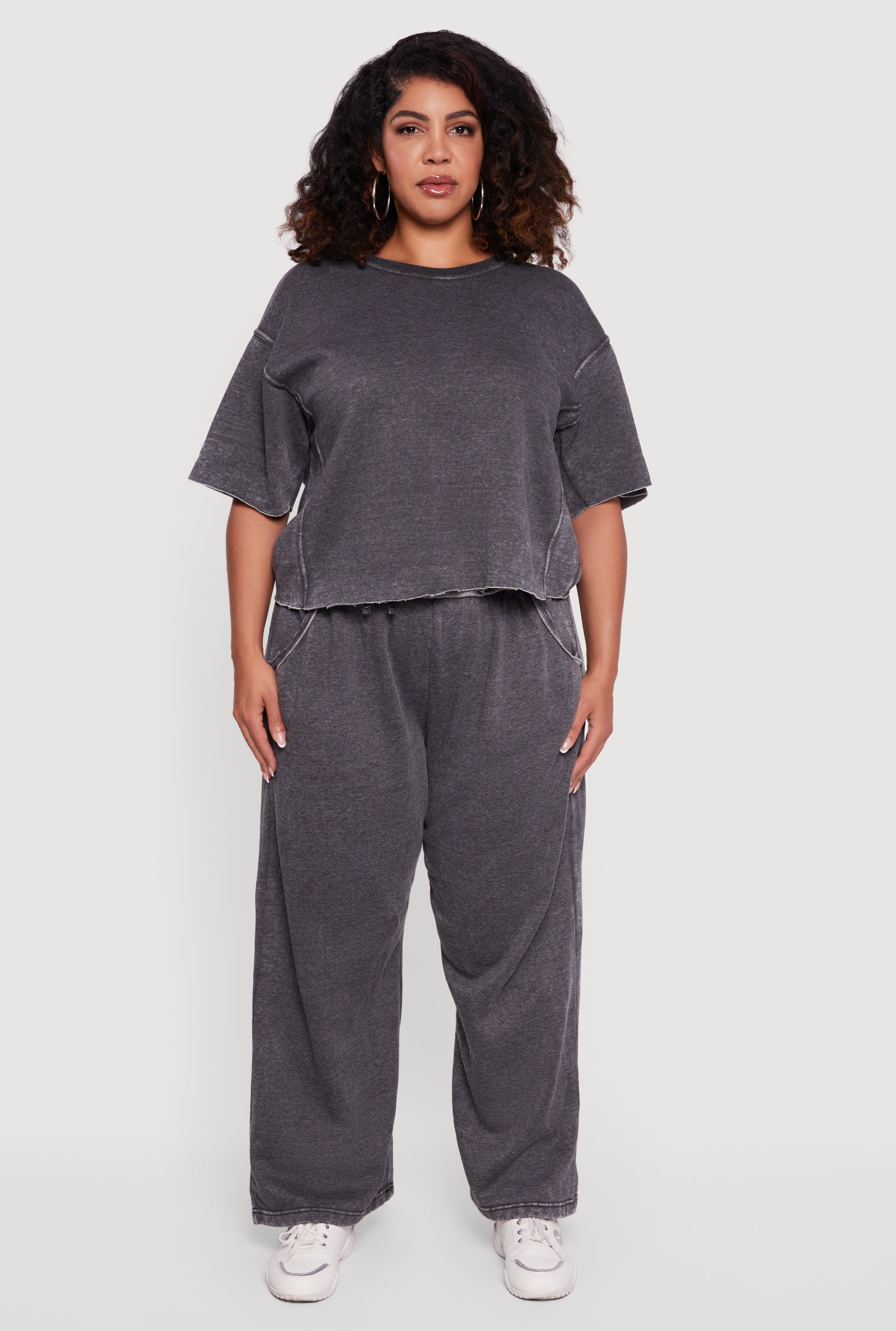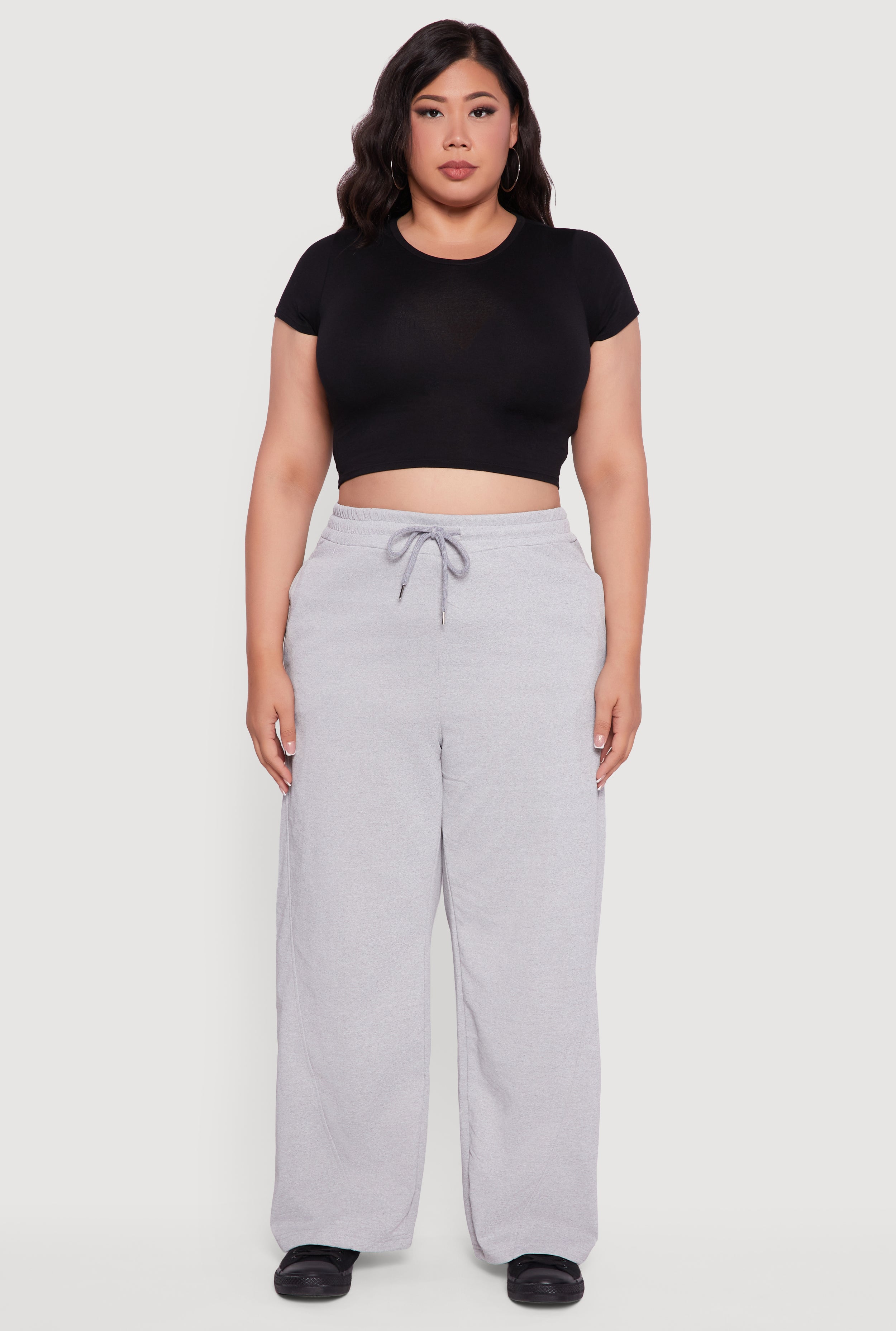 Plus Size Fleece Lined Wide Leg Sweatpants with Pockets
