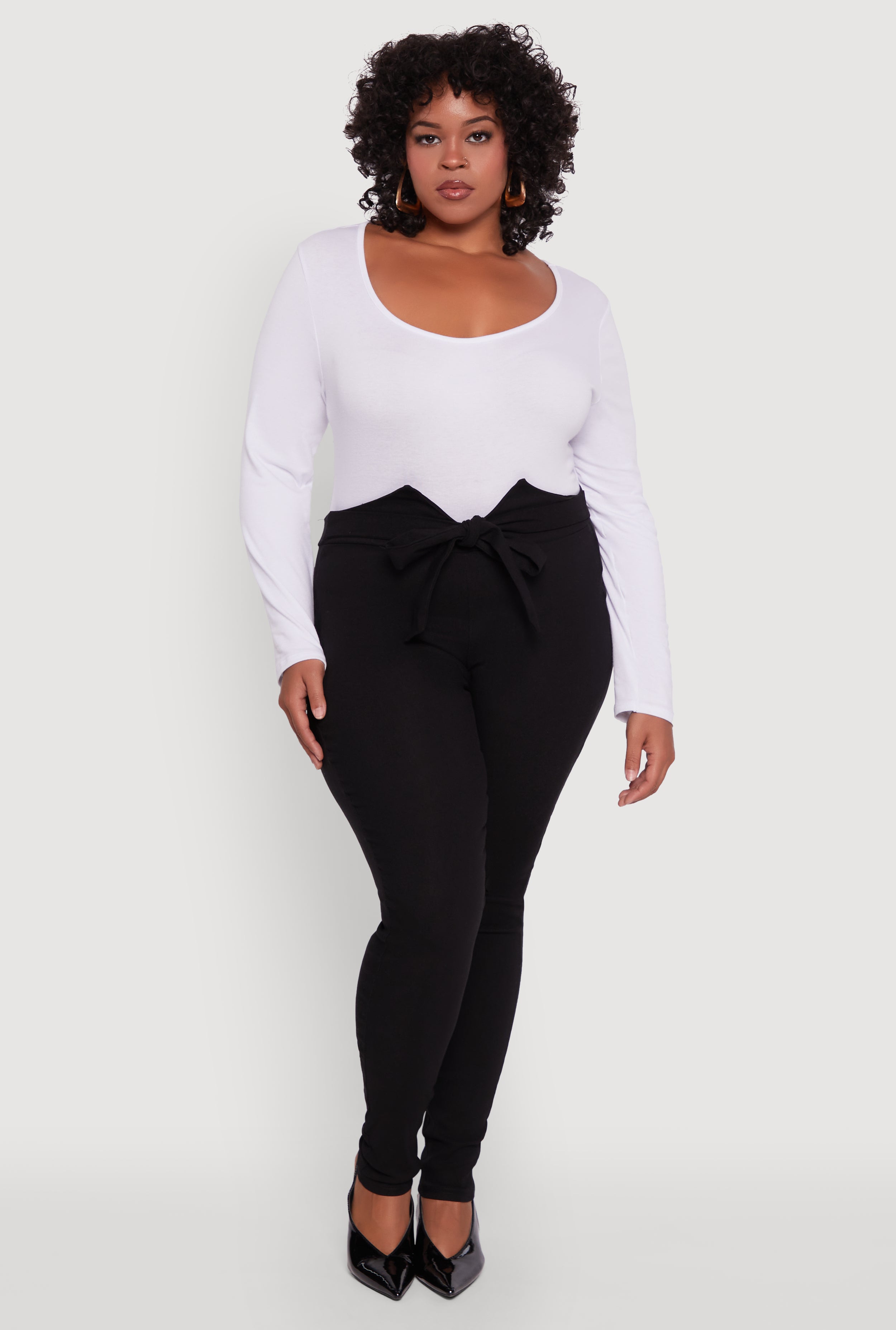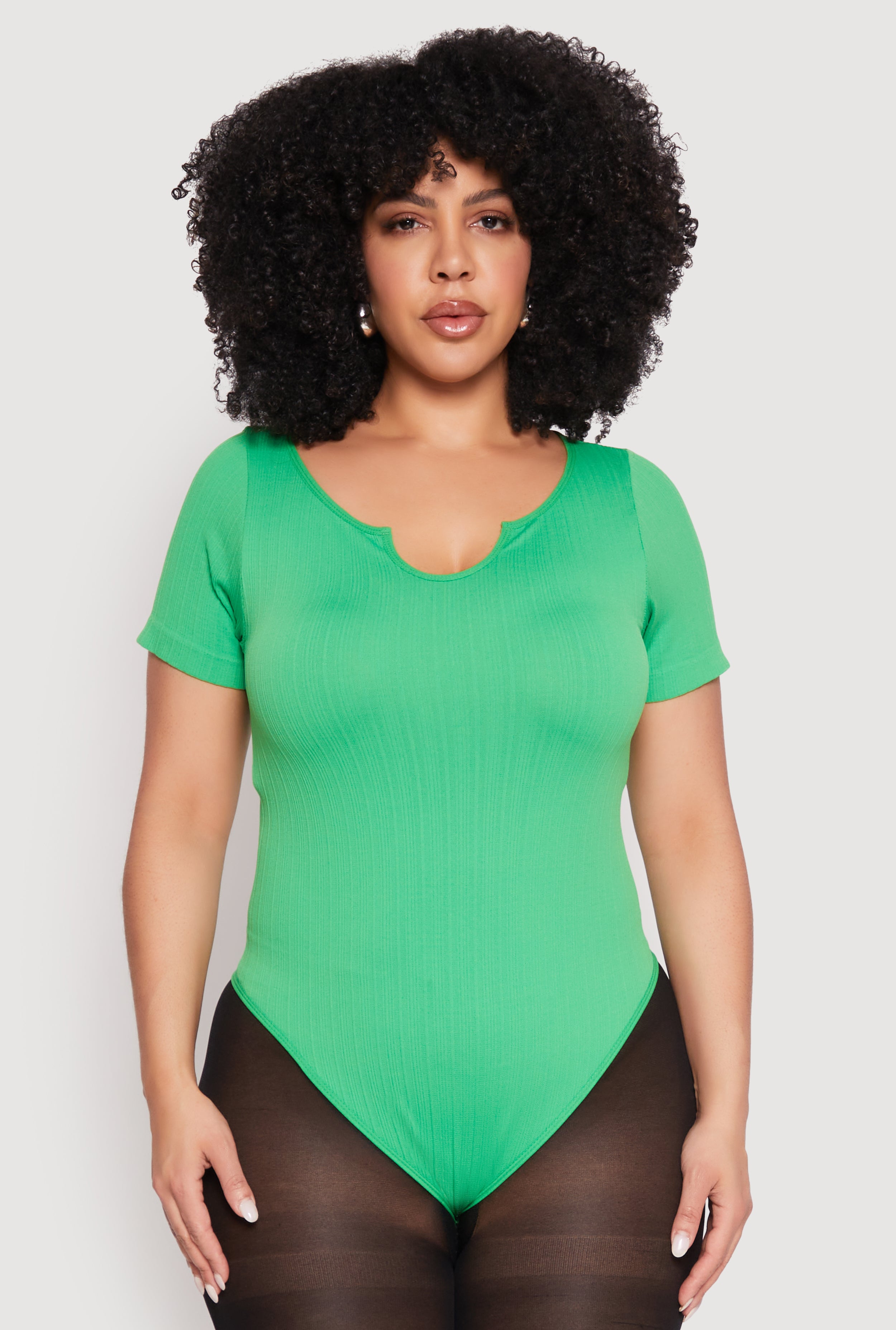 Plus Size Ribbed Knit Notch Neck Bodysuit