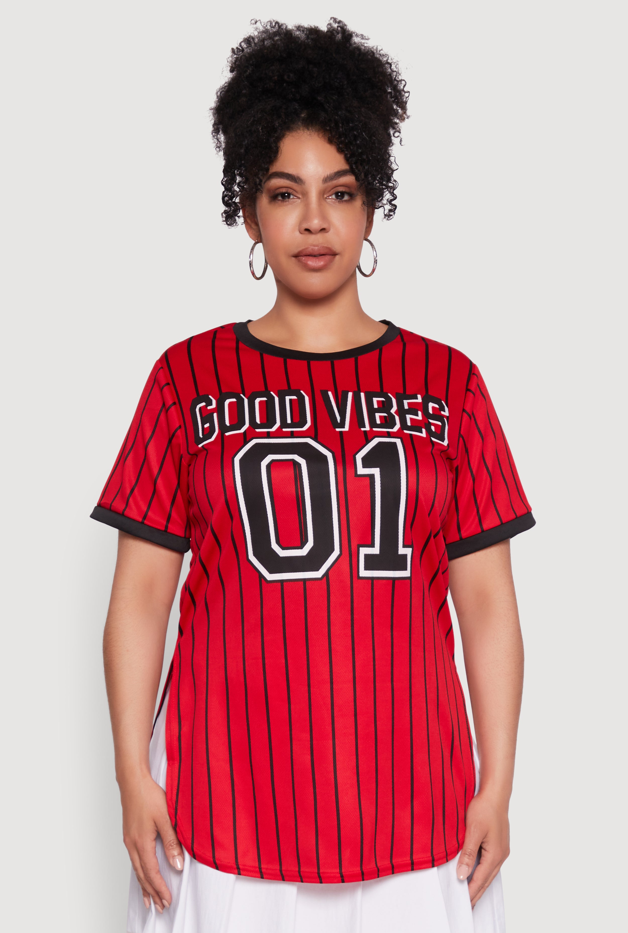 Plus Size Good Vibes 01 Pinstripe Baseball Jersey