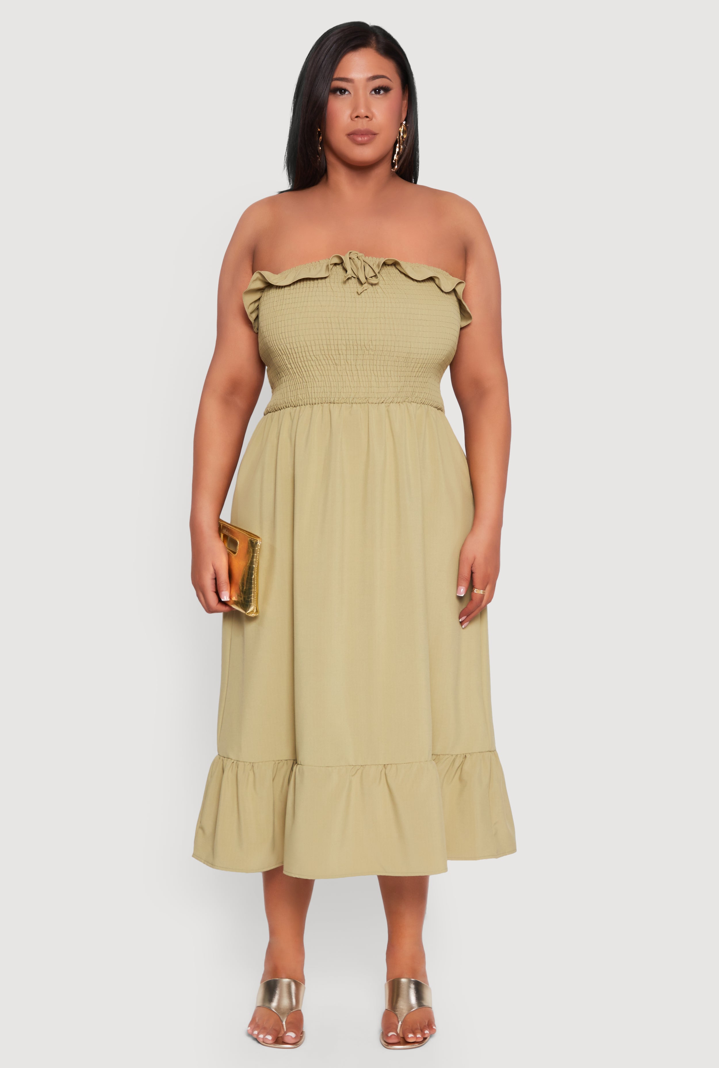 Plus Size Ruffle Trim Tiered Midi Dress