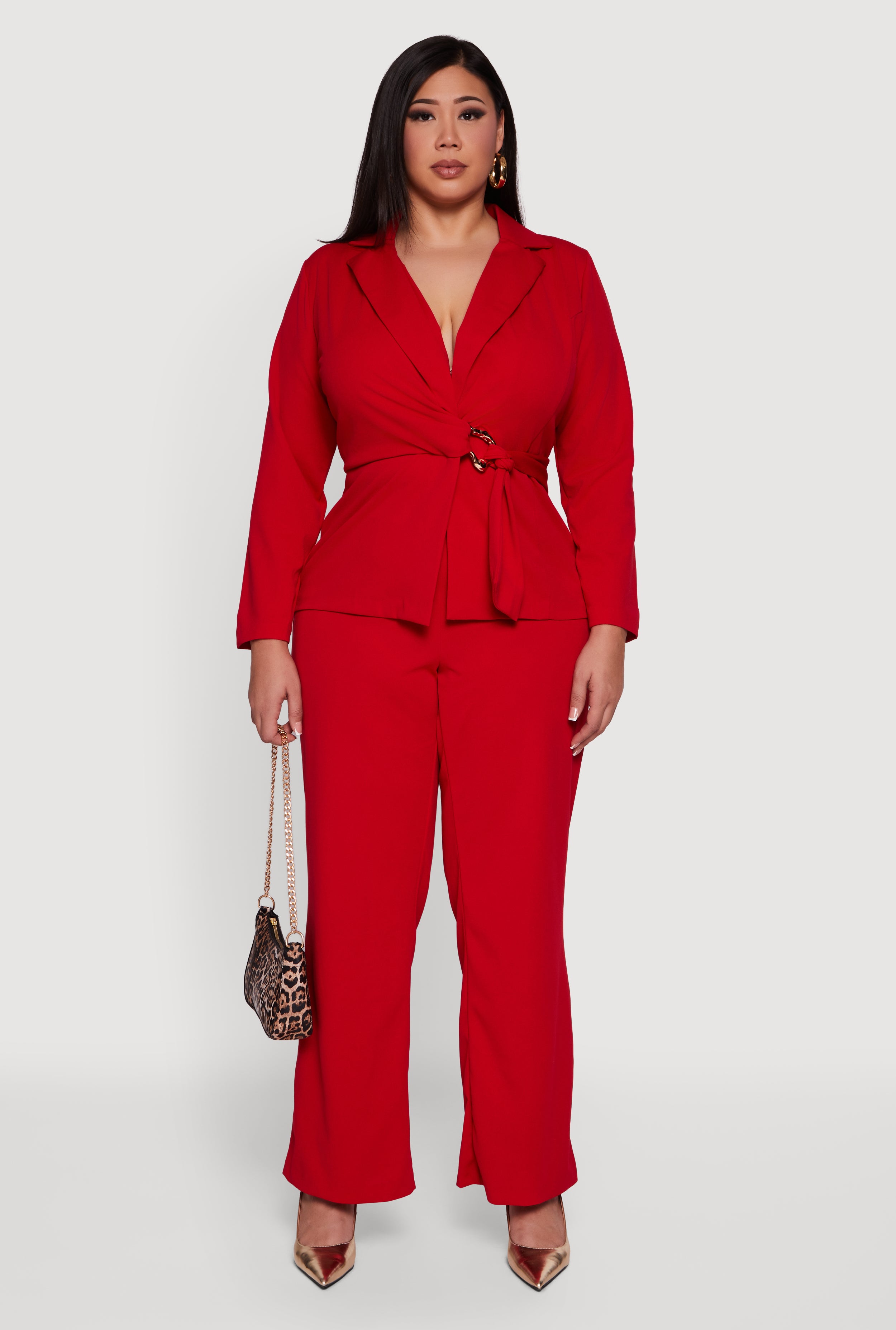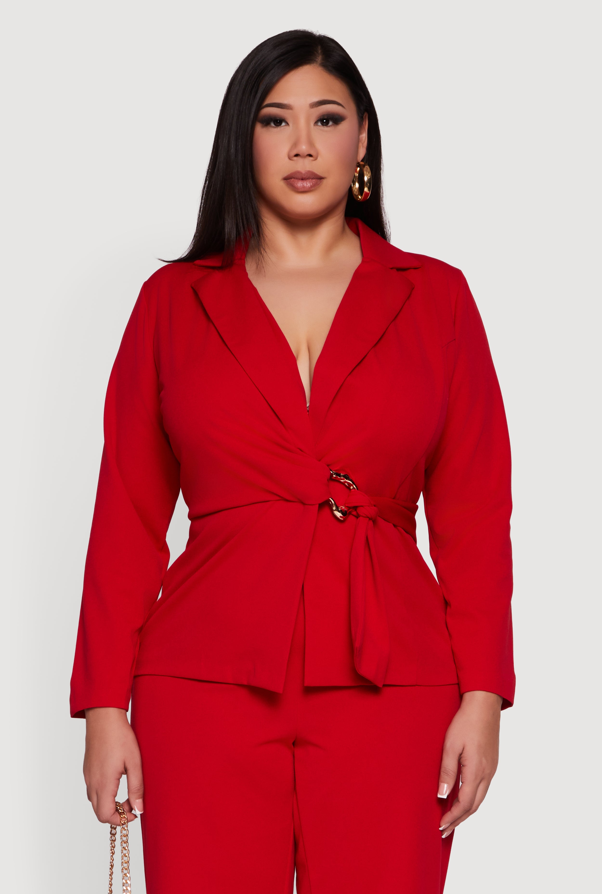 Plus Size Metallic Belted Front Crepe Knit Blazer