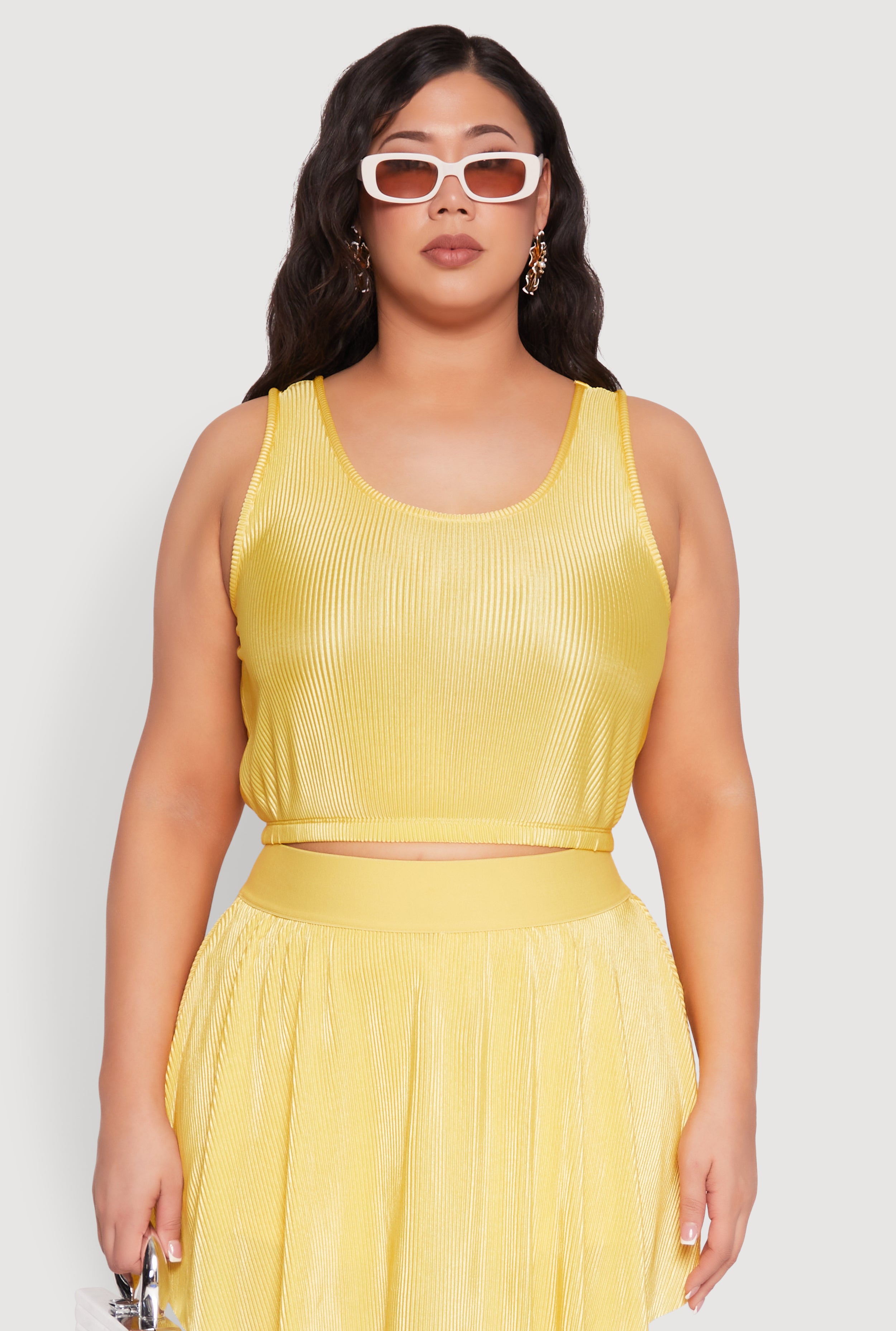 Plus Size Almost Famous Plisse Cropped Tank Top