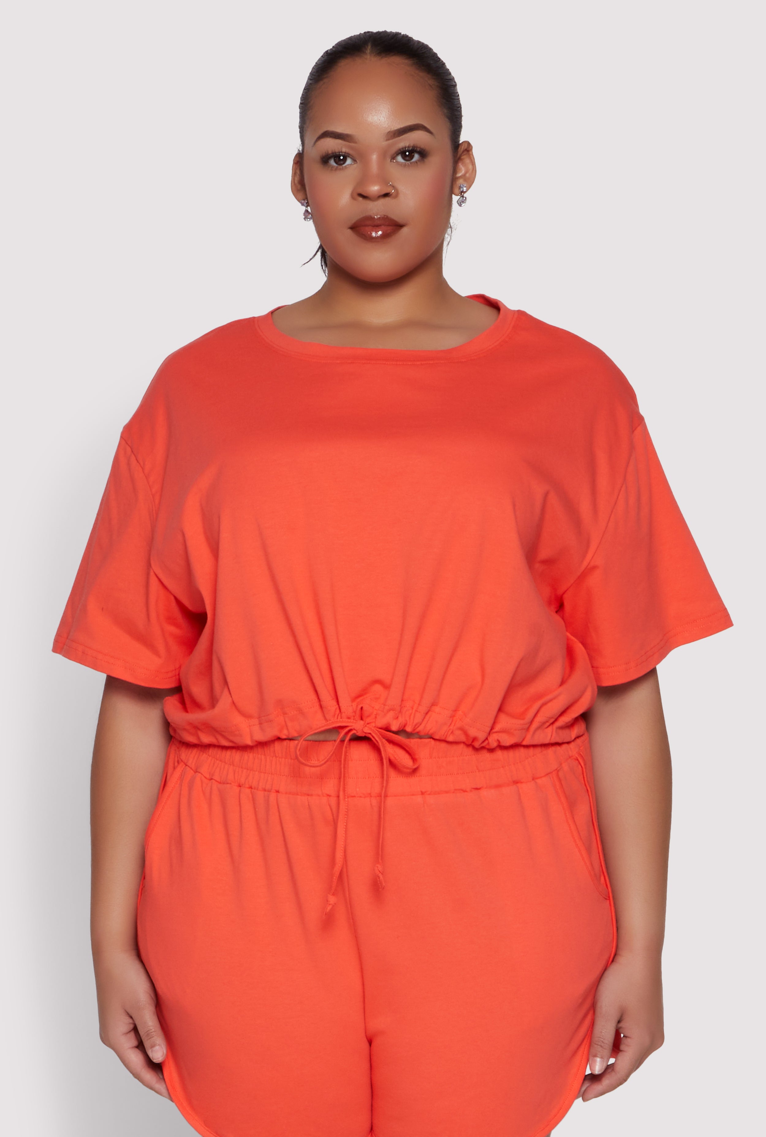 Plus Size Daisy Drawstring Hem Crop Top