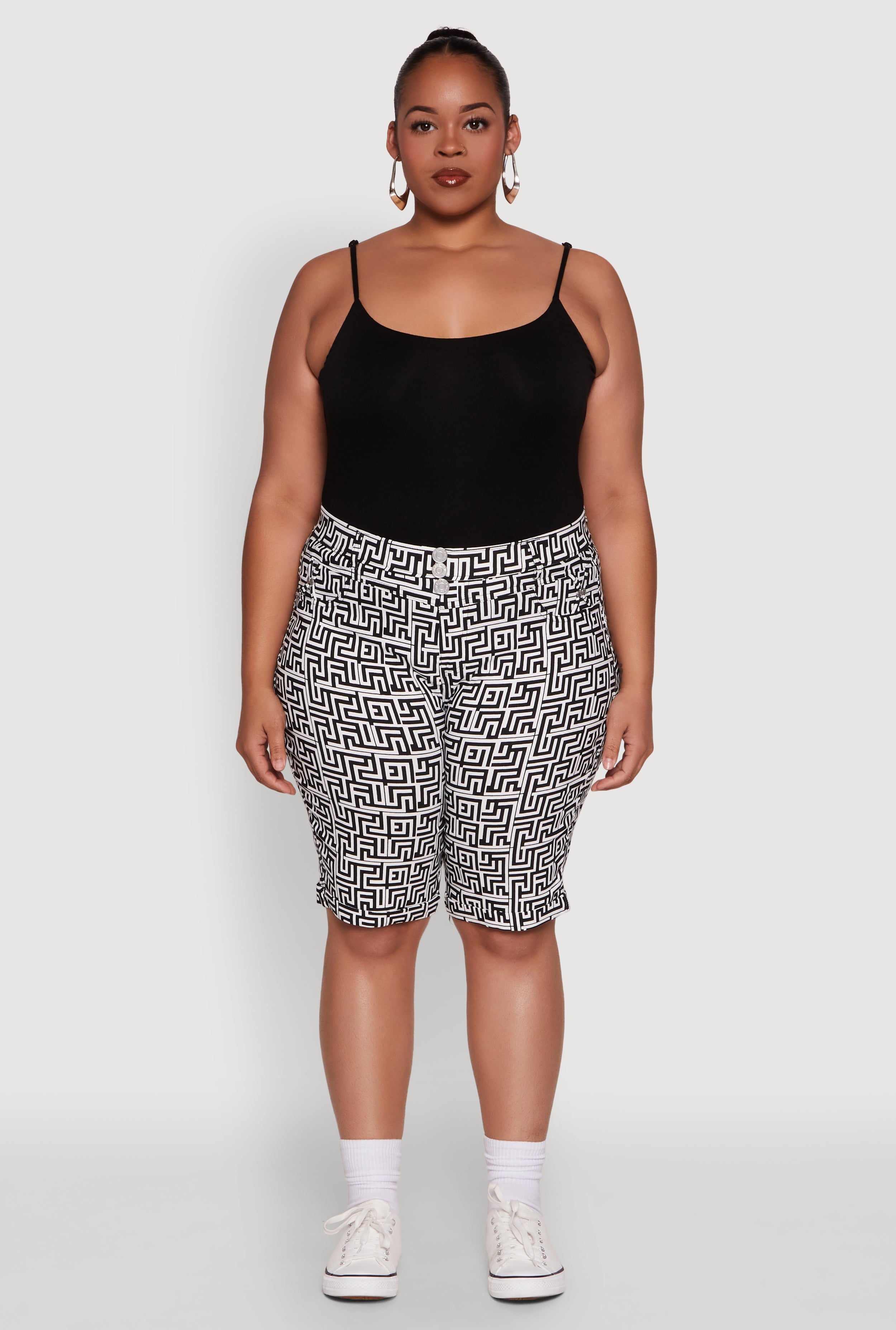 Plus Size Trendy High Waisted Bermuda Shorts