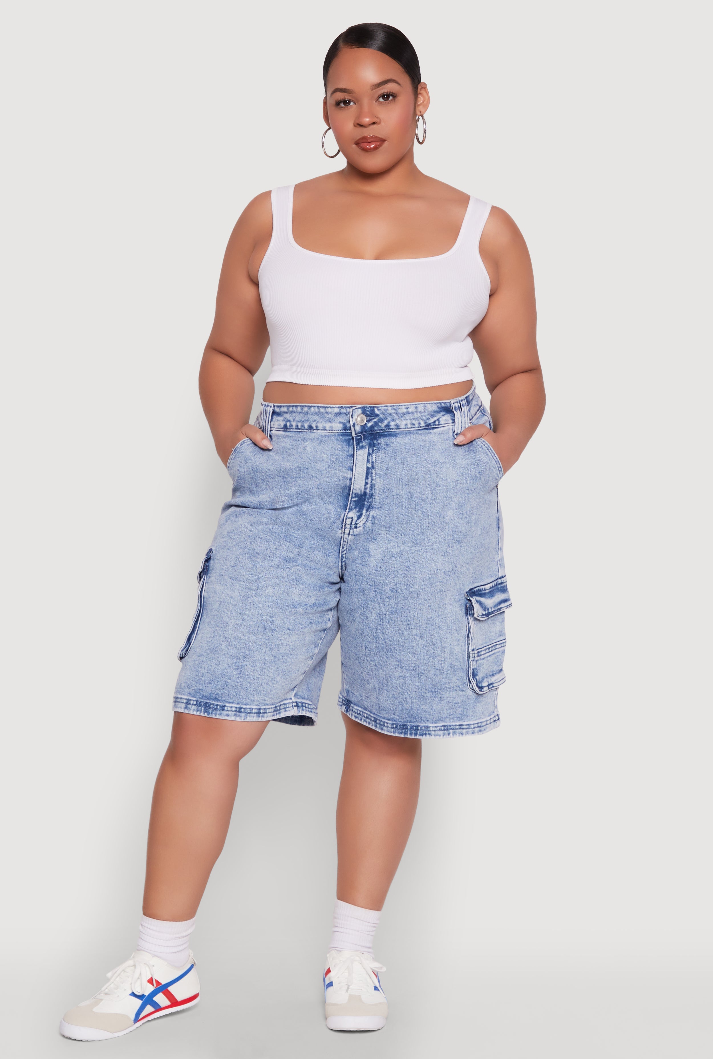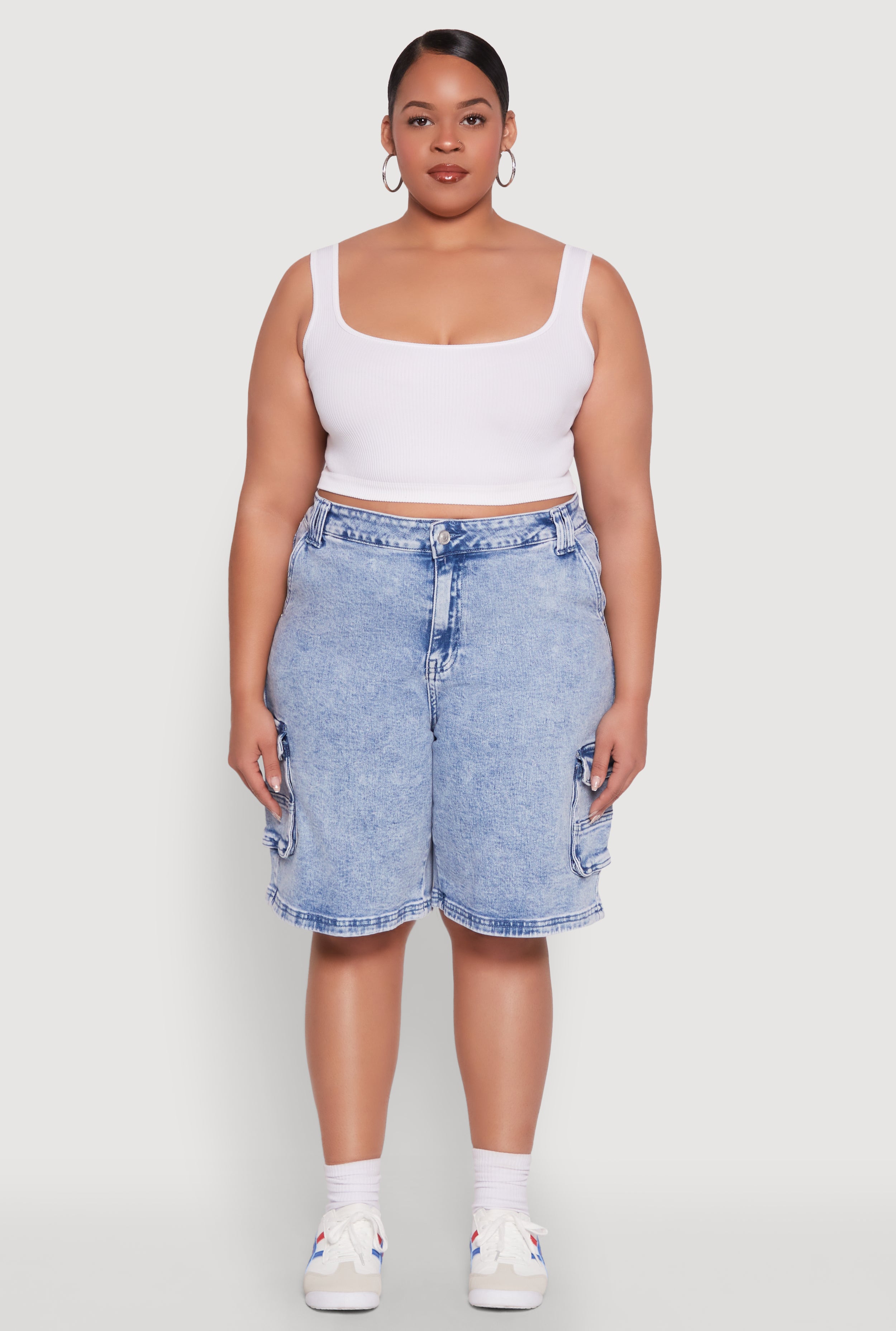 Plus Size Hyperstretch Bermuda Shorts with Cargo Pockets