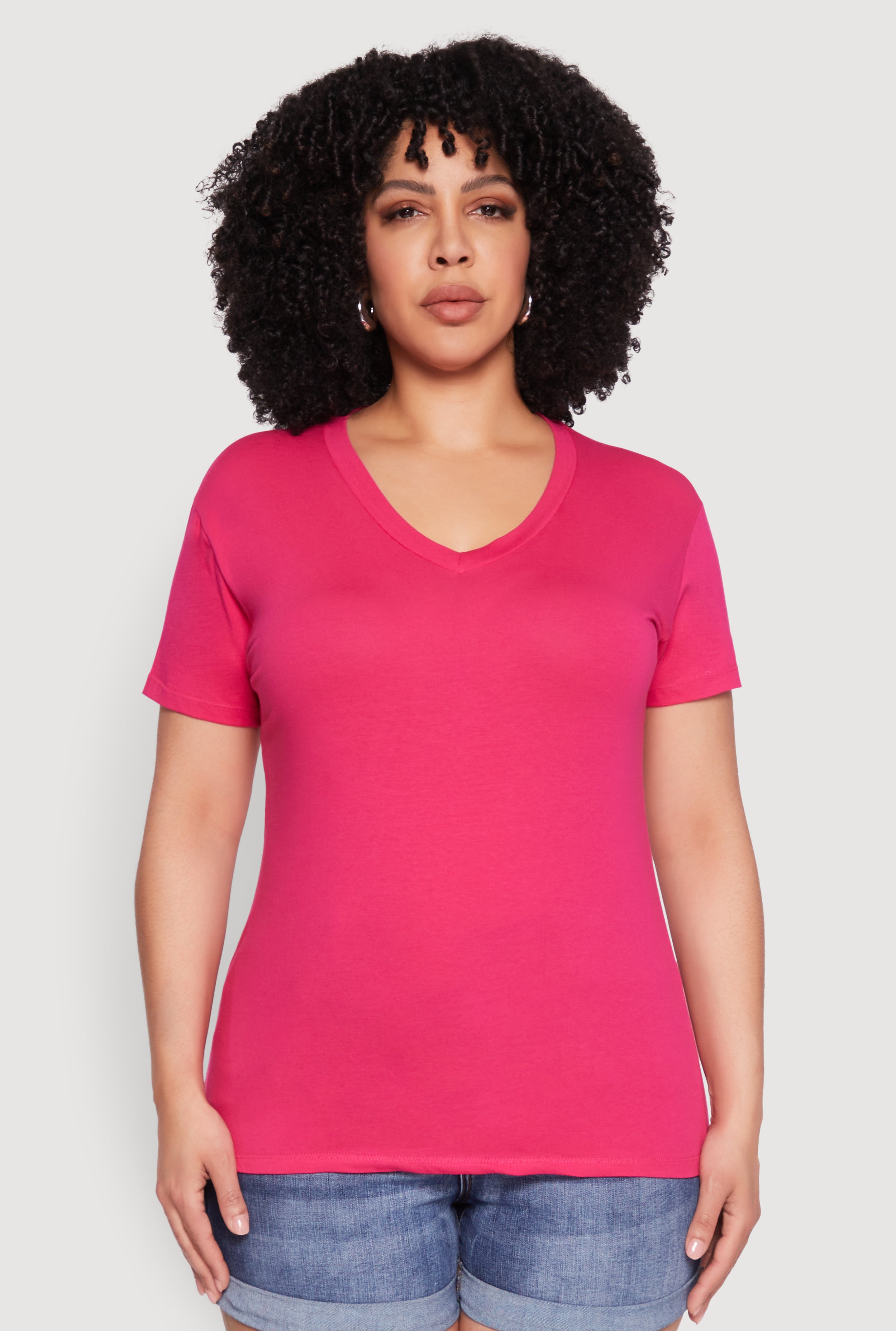 Plus Size V Neck Short Sleeve Top