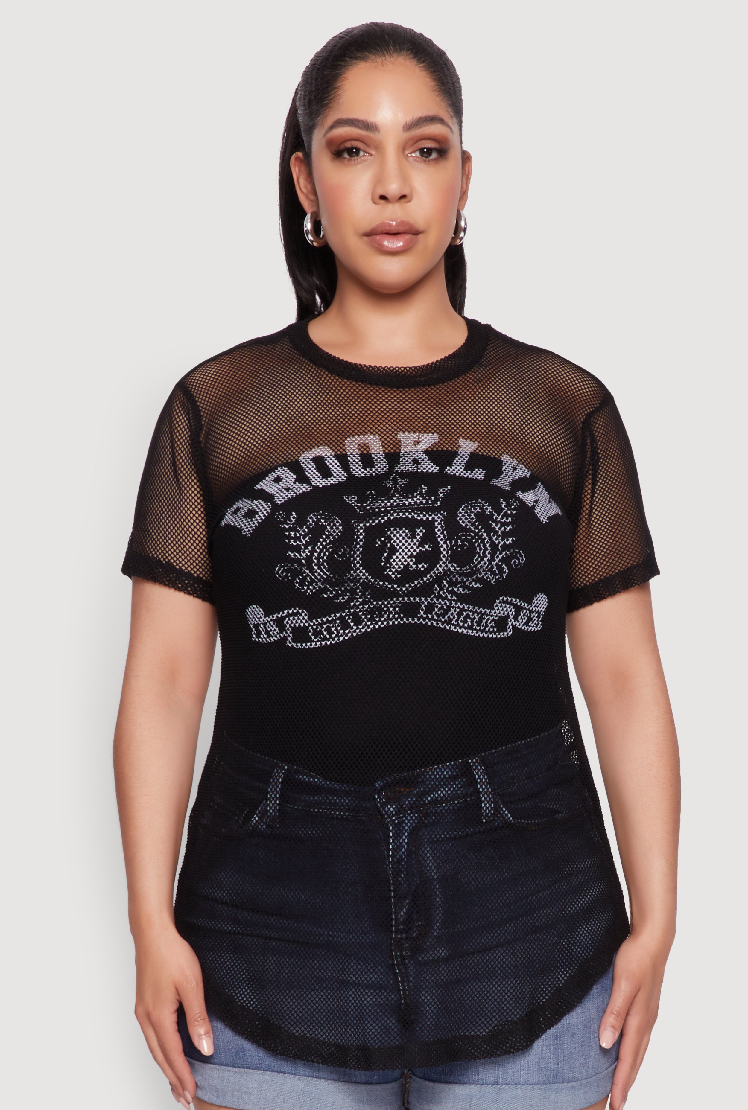 Plus Size Brooklyn College League Fishnet Top