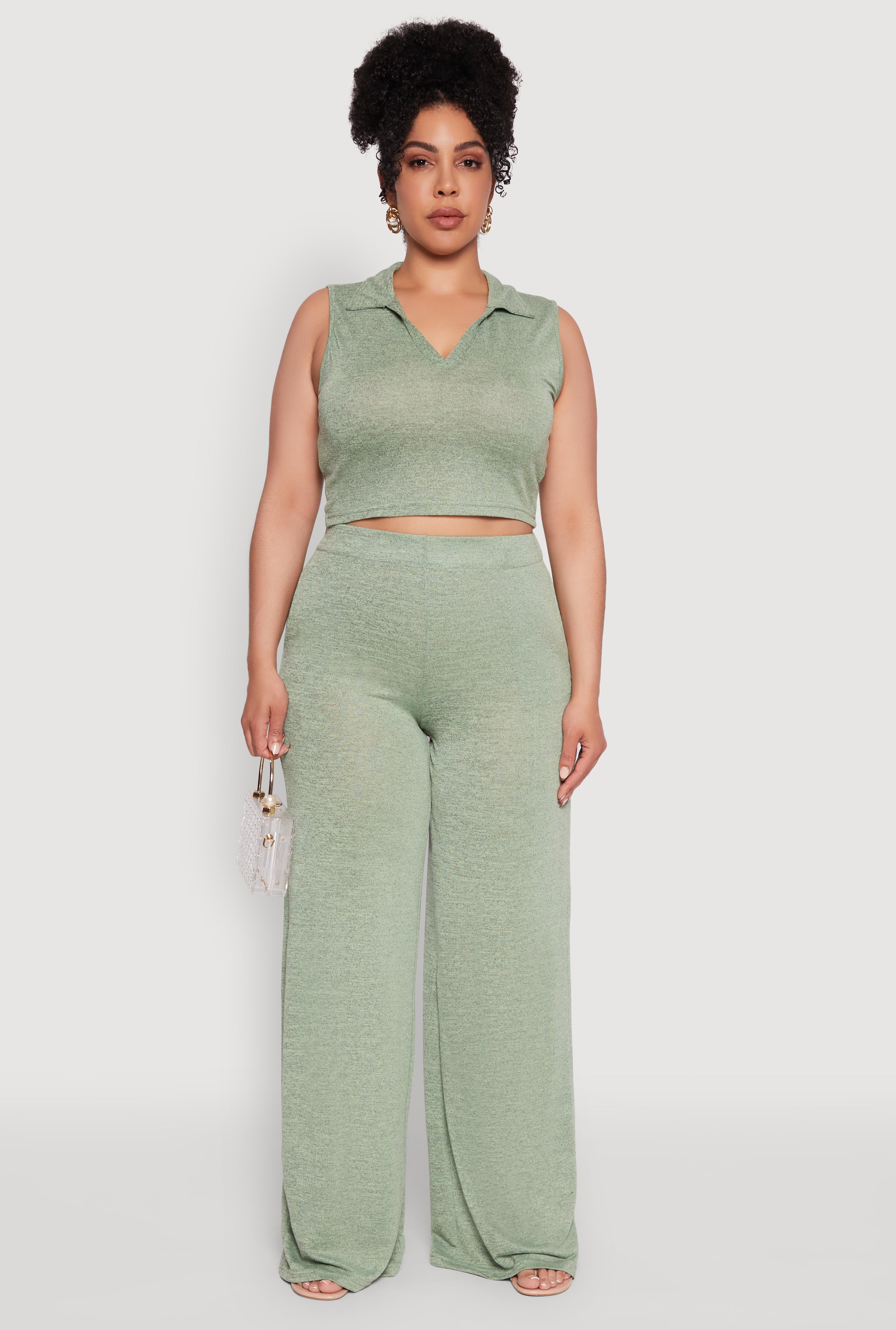 Plus Size Daisy Sleeveless Cropped Polo Top
