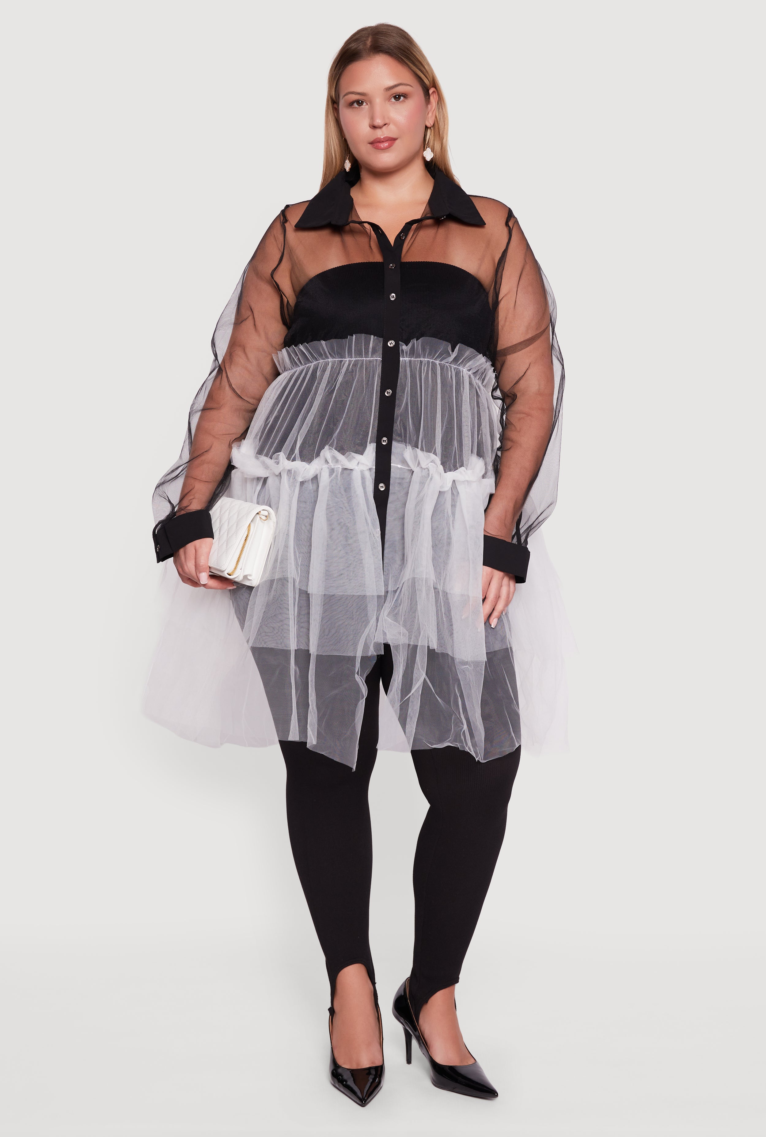 Plus Size Color Block Ruffle Tulle Tiered Shirt