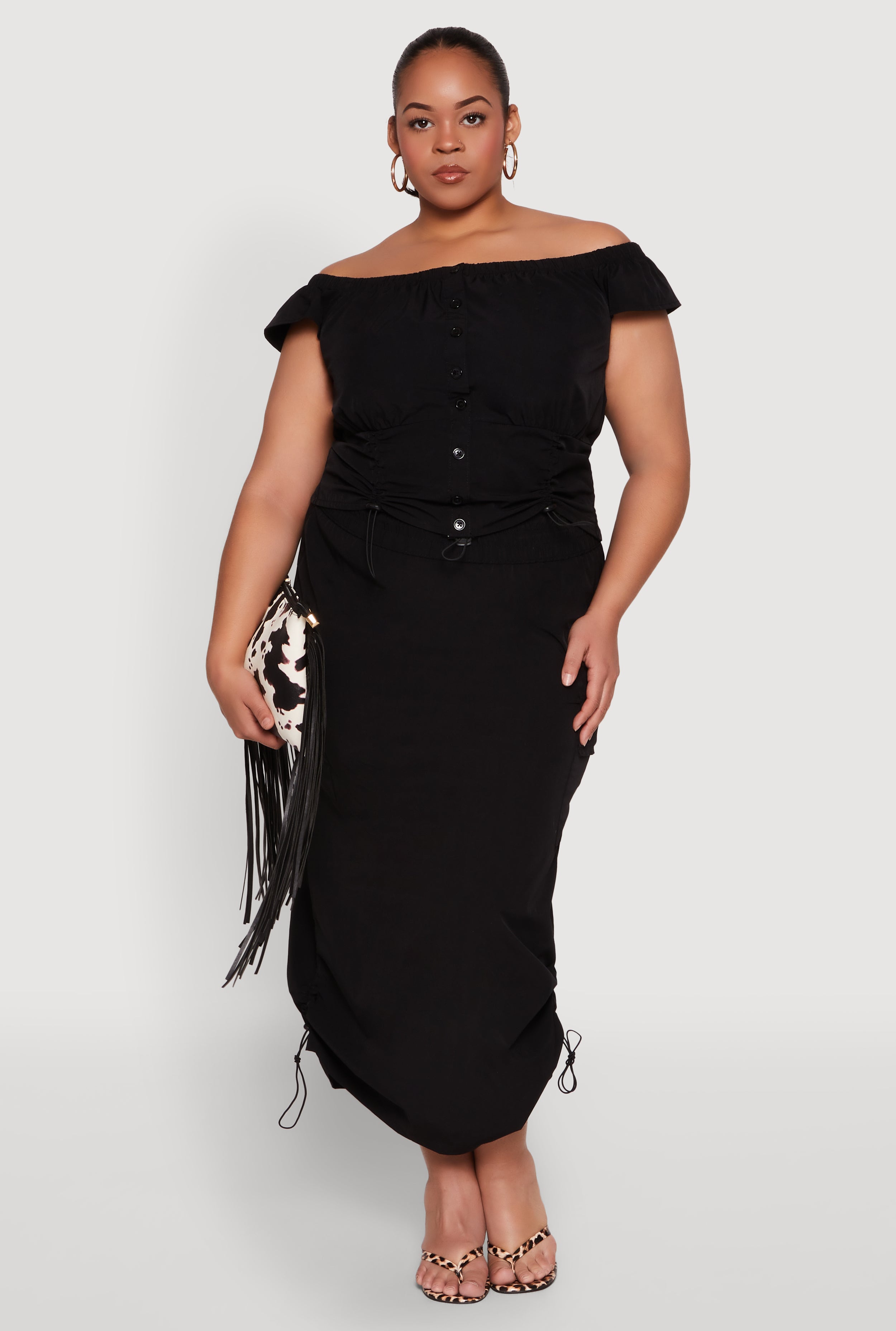 Plus Size Nylon Toggle Drawstring Off the Shoulder Top