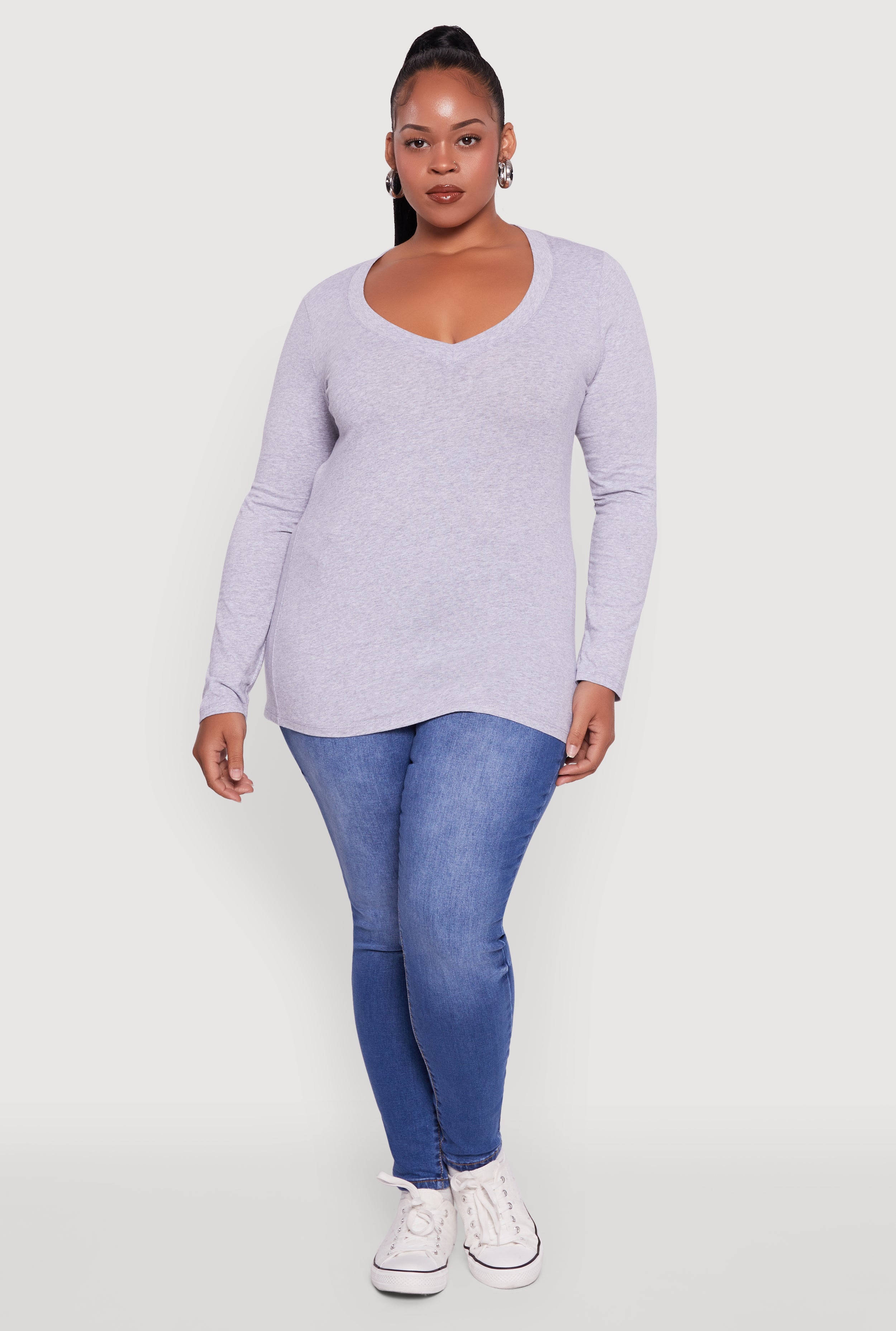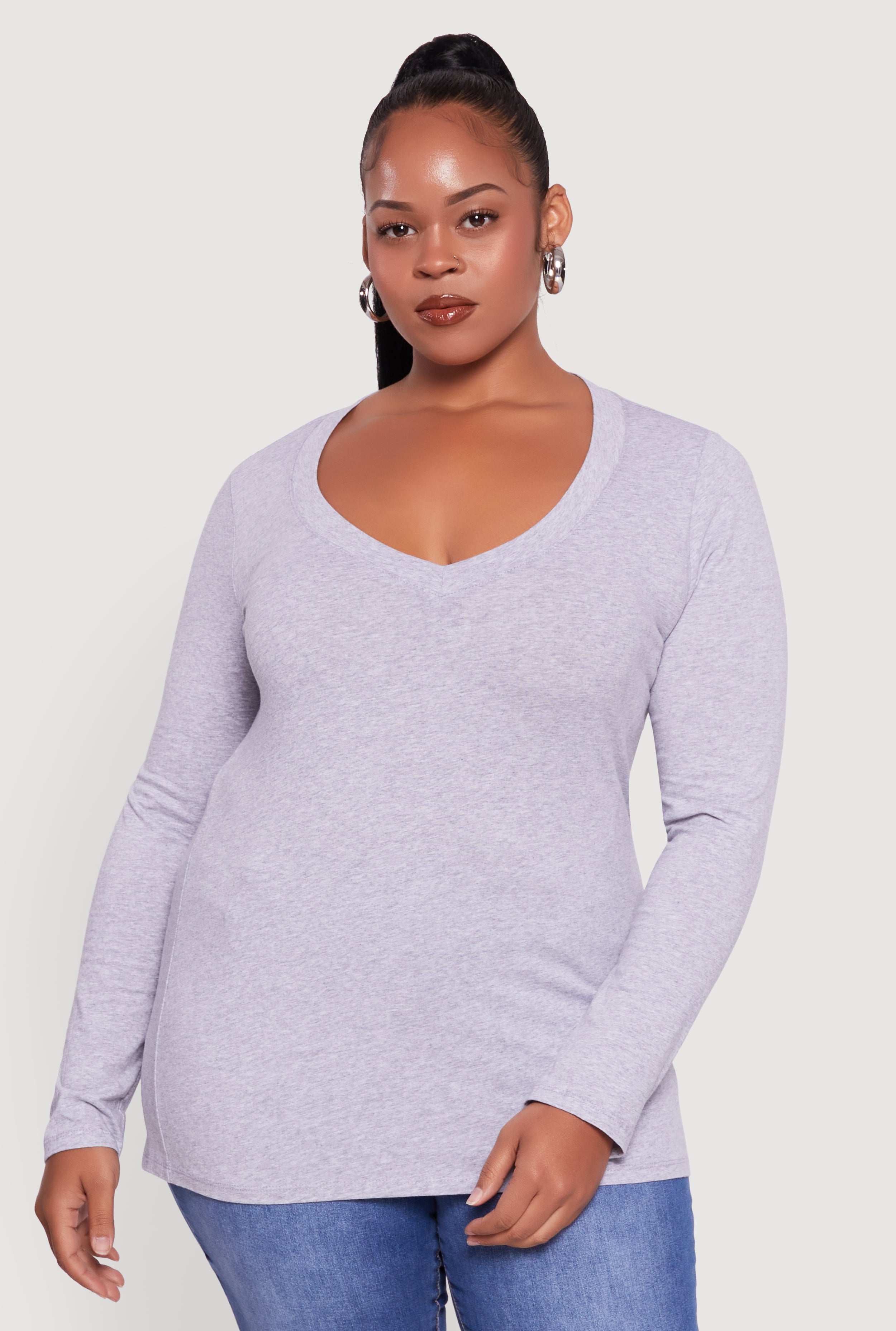 Plus Size Long Sleeve V-Neck Tee