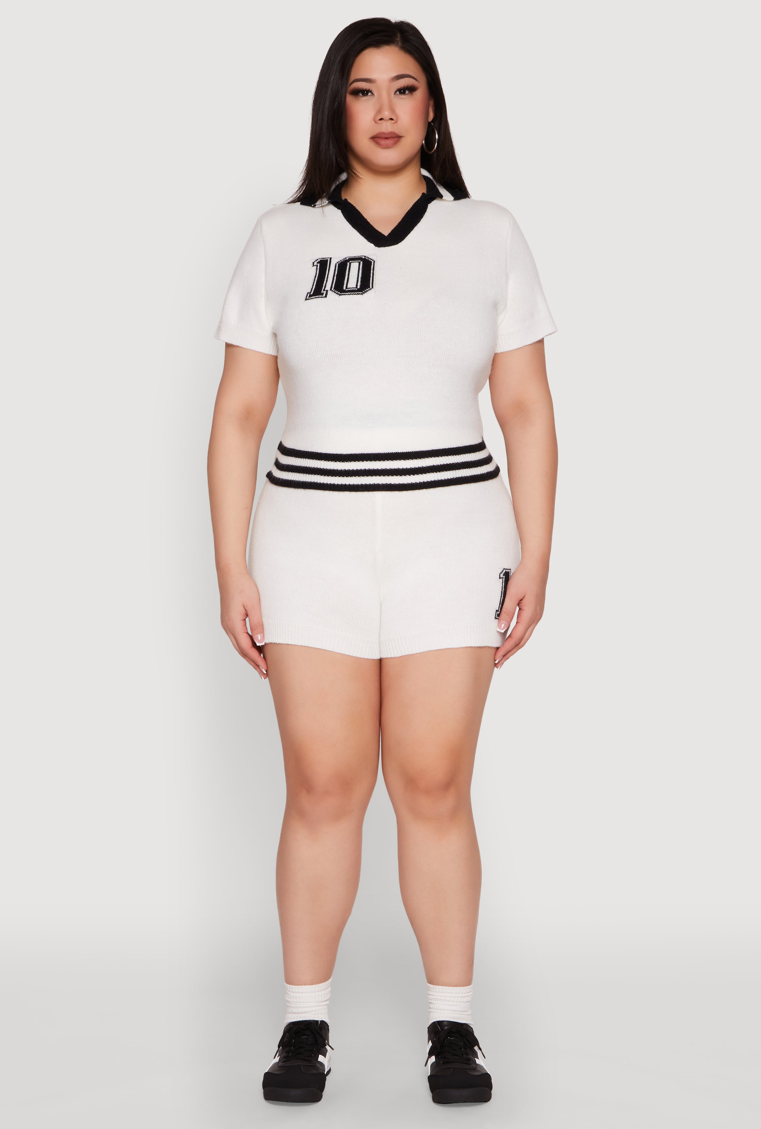 Plus Size Daisy 10 Graphic Varsity Stripe Crop Top