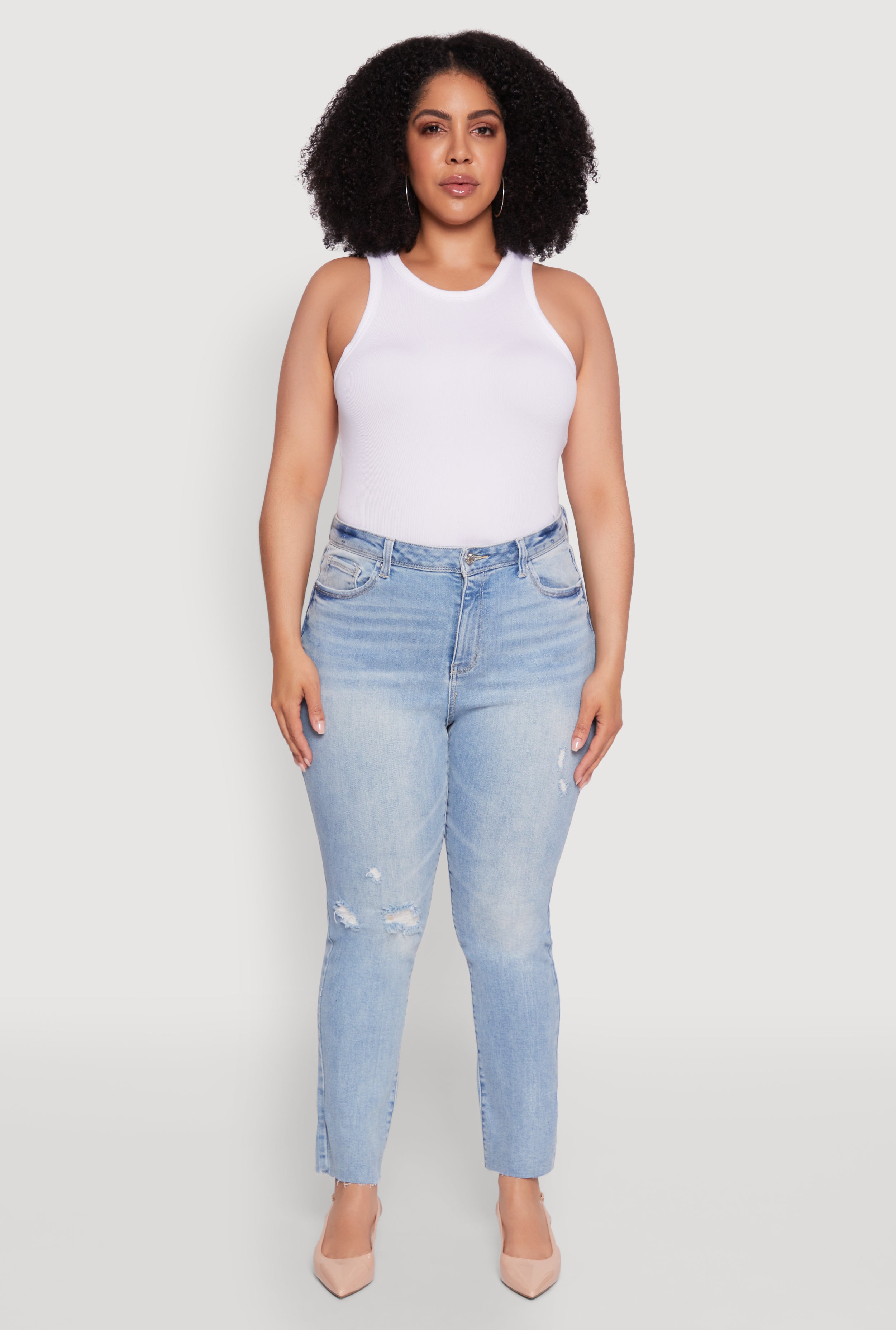 Plus Size Trendy High Waisted Distressed Whiskered Jeans