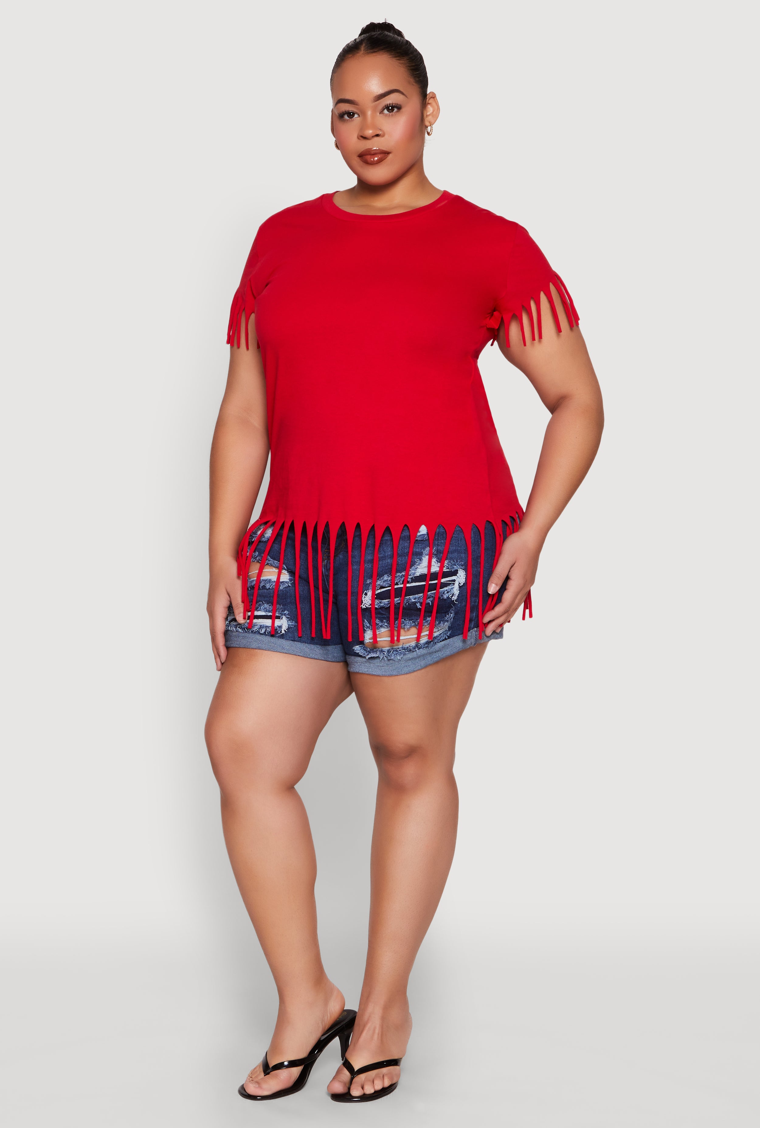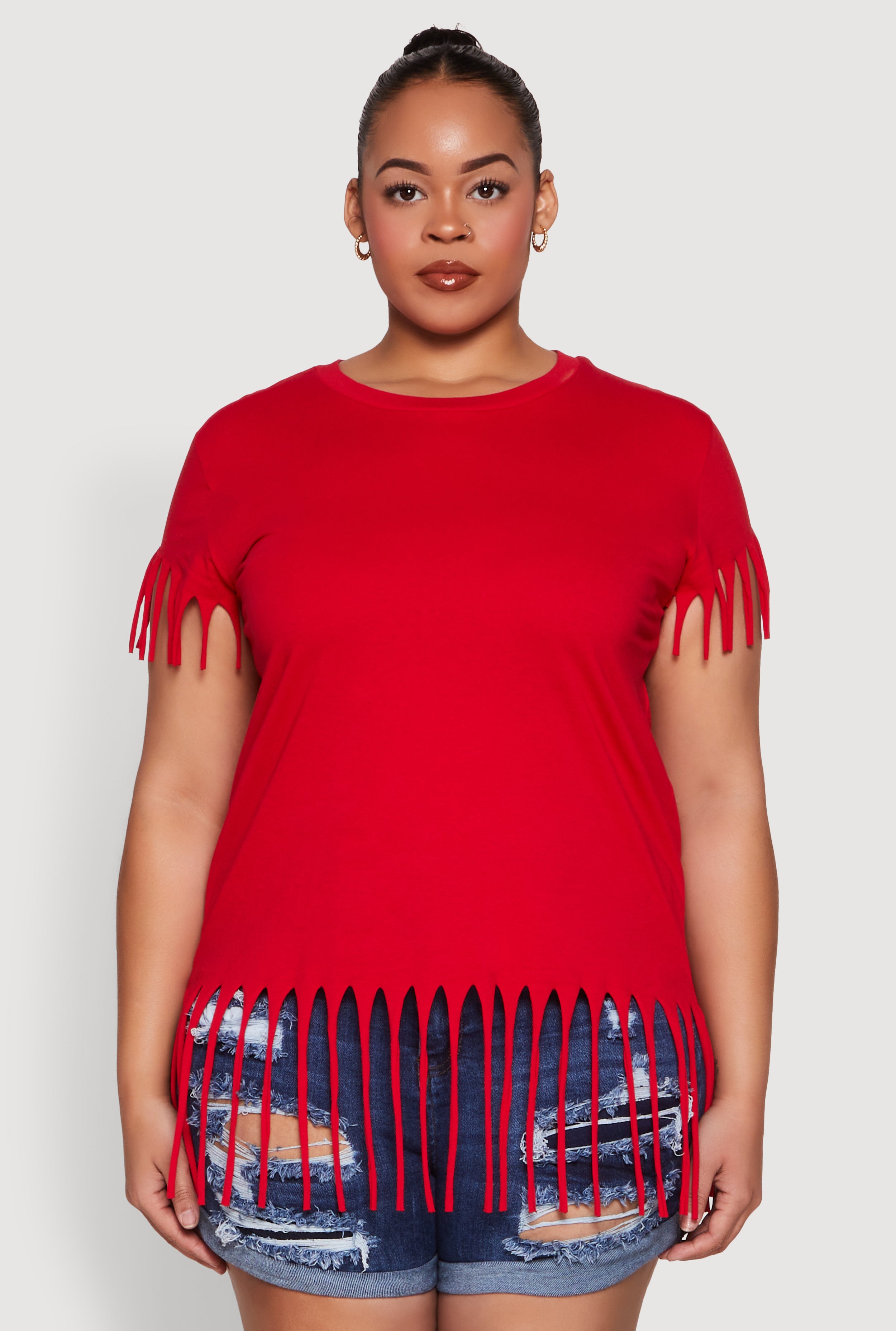 Plus Size Fringe Trim Tee