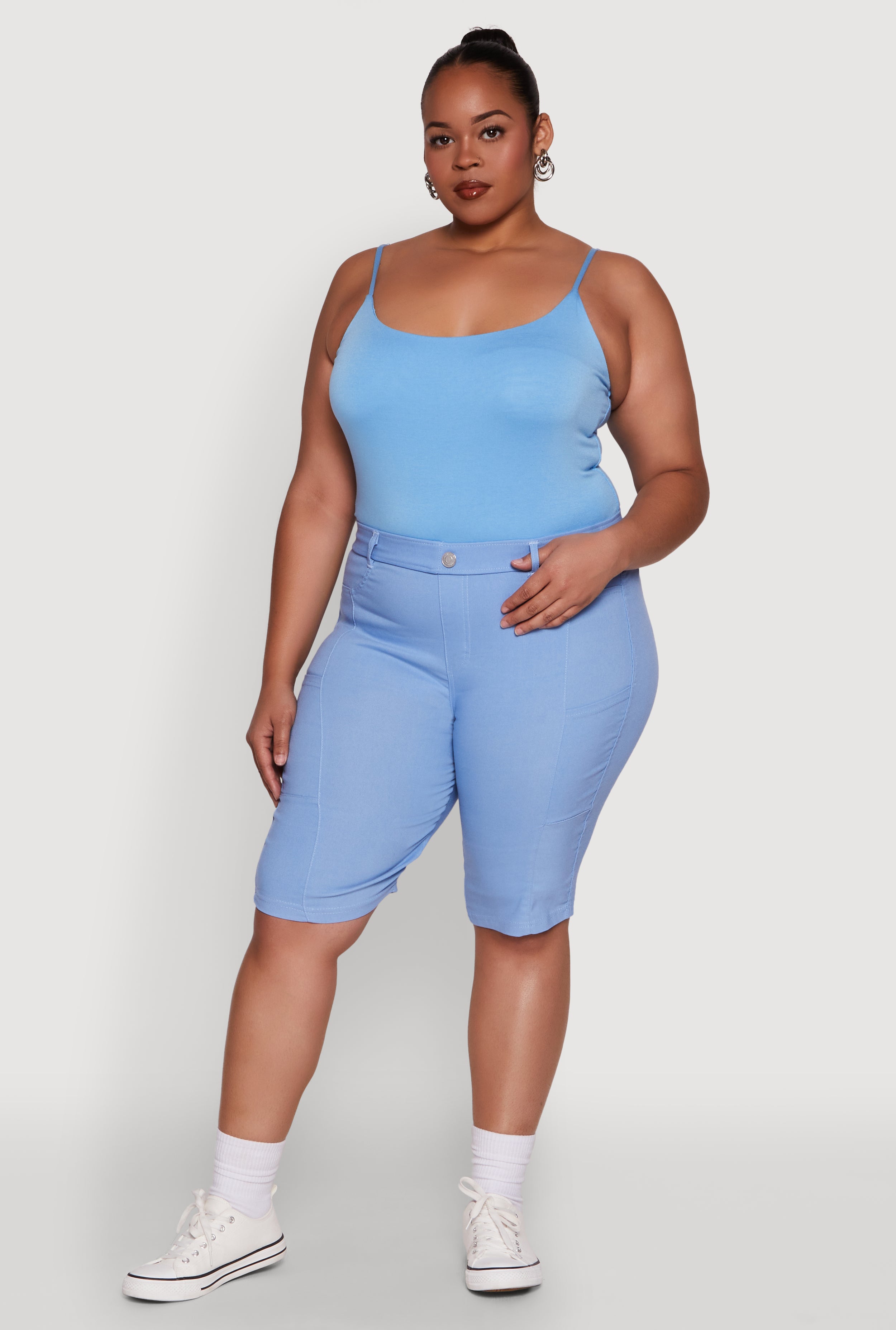 Plus Size Stylish Snatched High Waist Bermuda Shorts with Faux Buttons