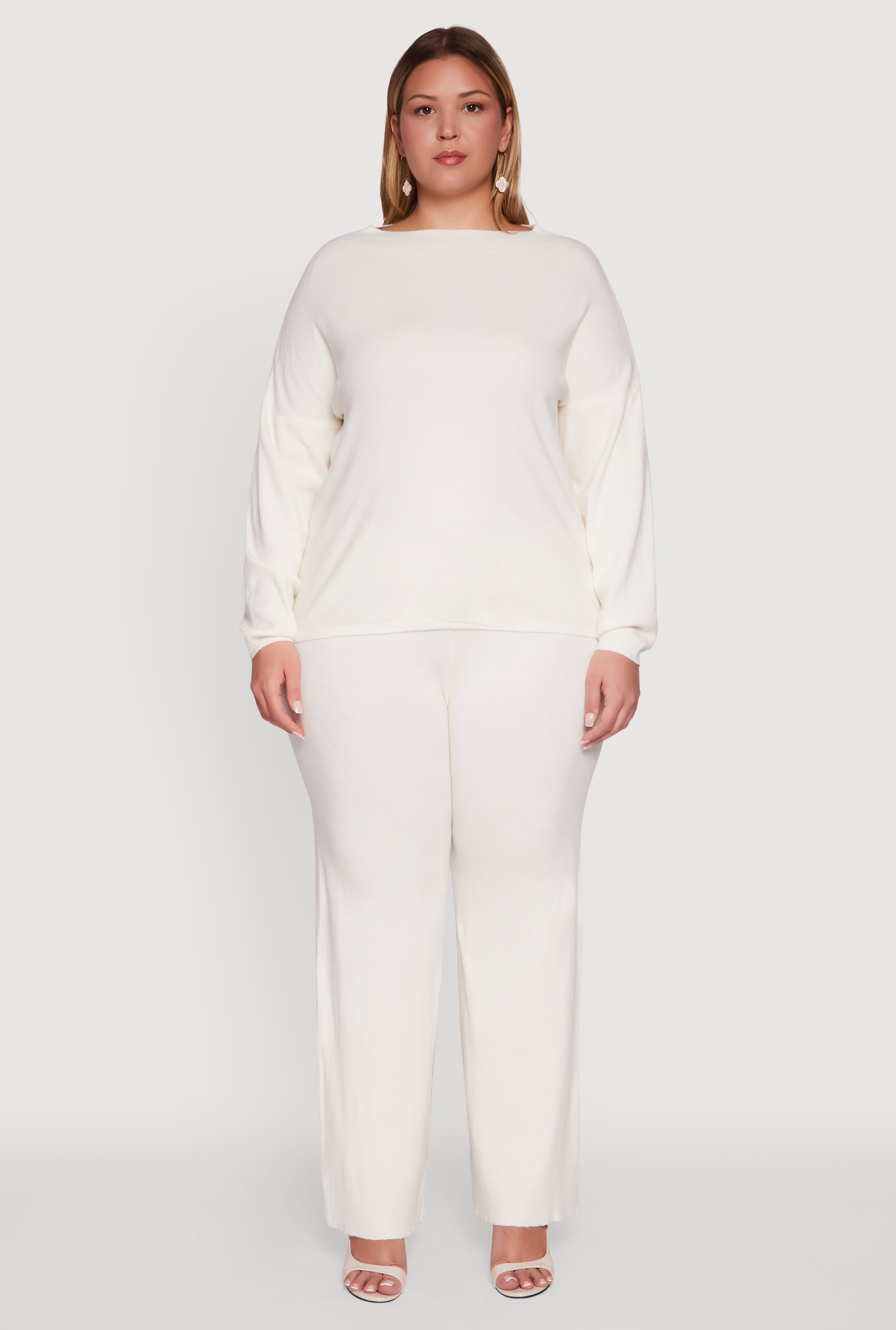 Plus Size High Waisted Ribbed Knit Flare Leg Active Pants