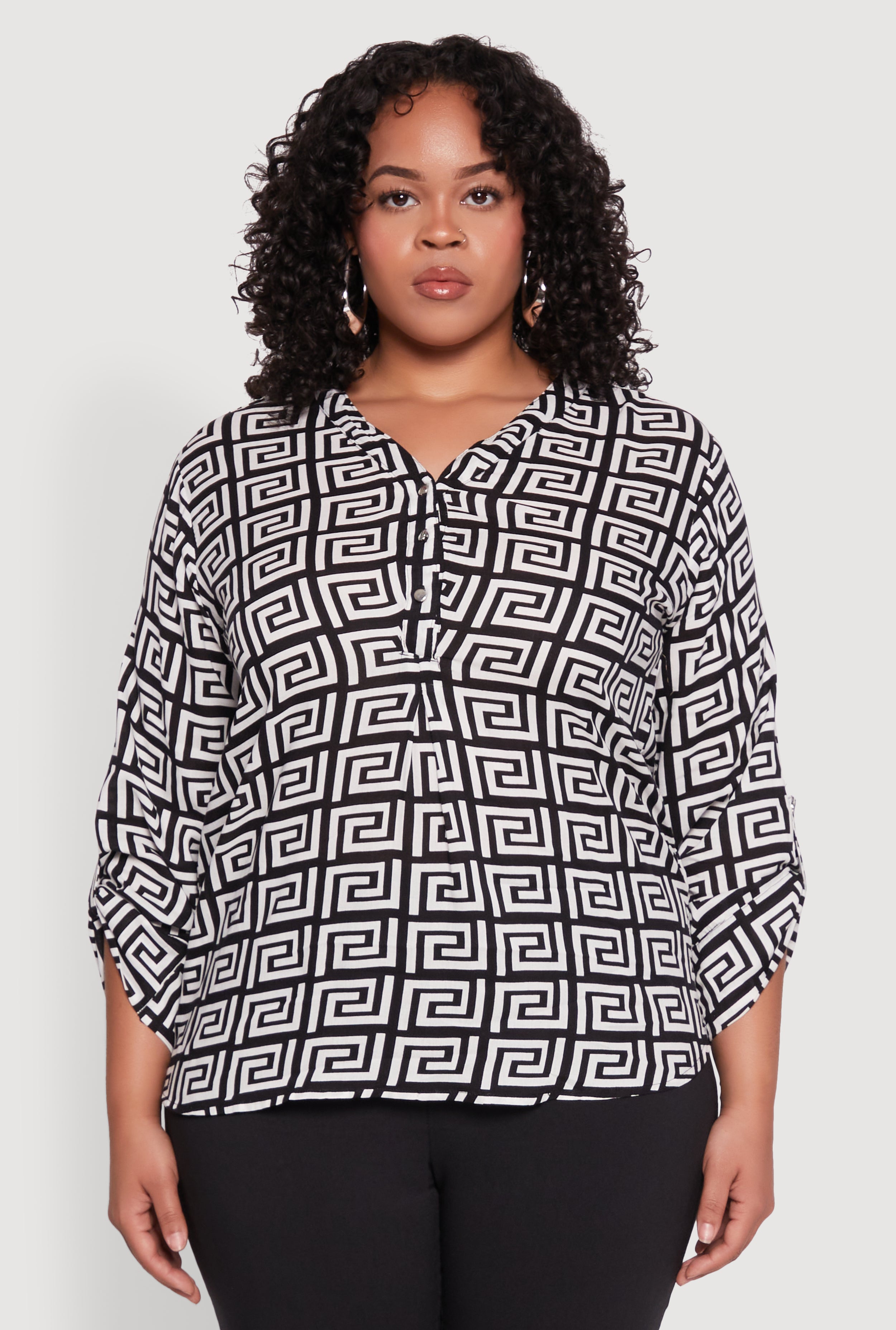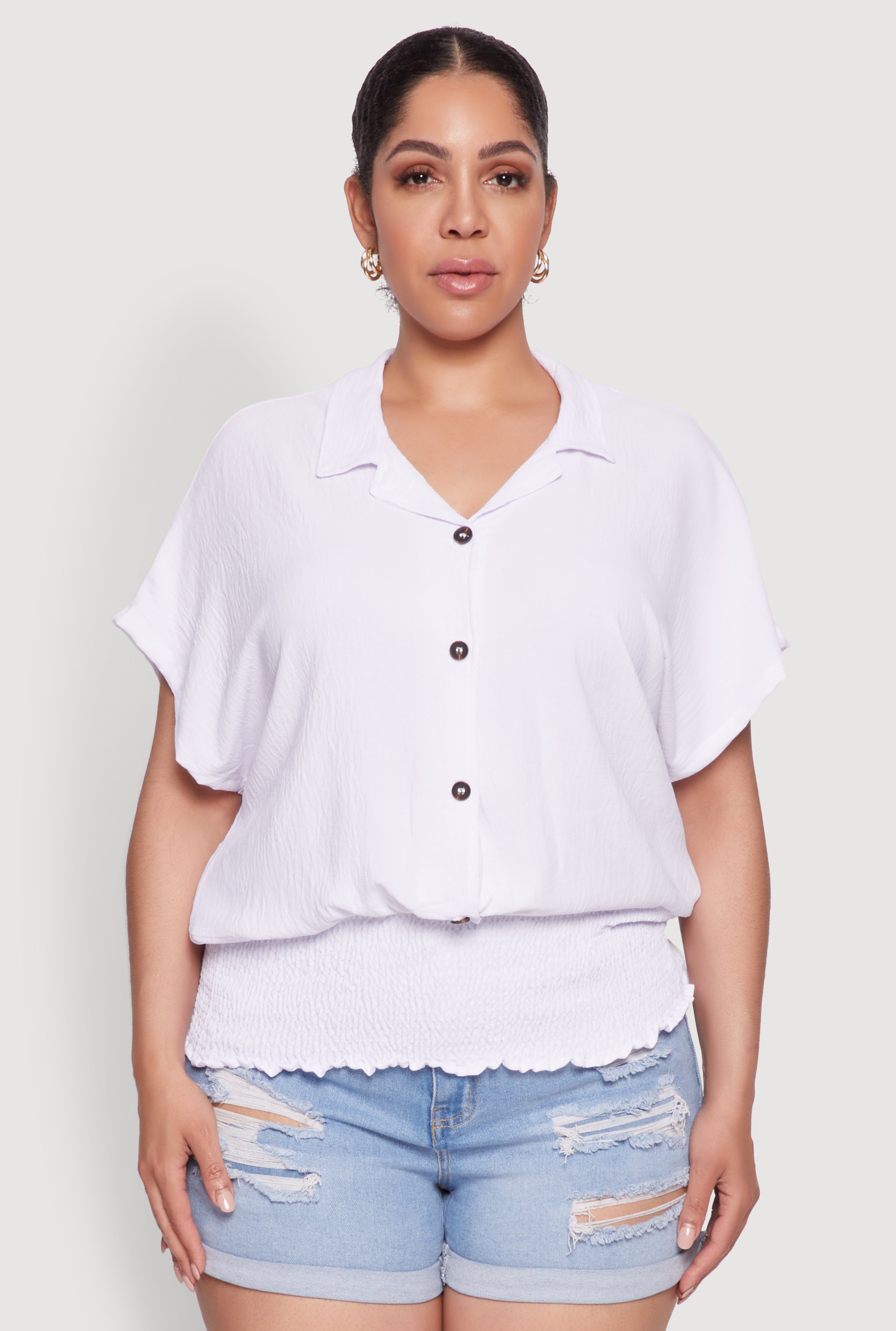 Plus Size Smocked Hem Button Front Top