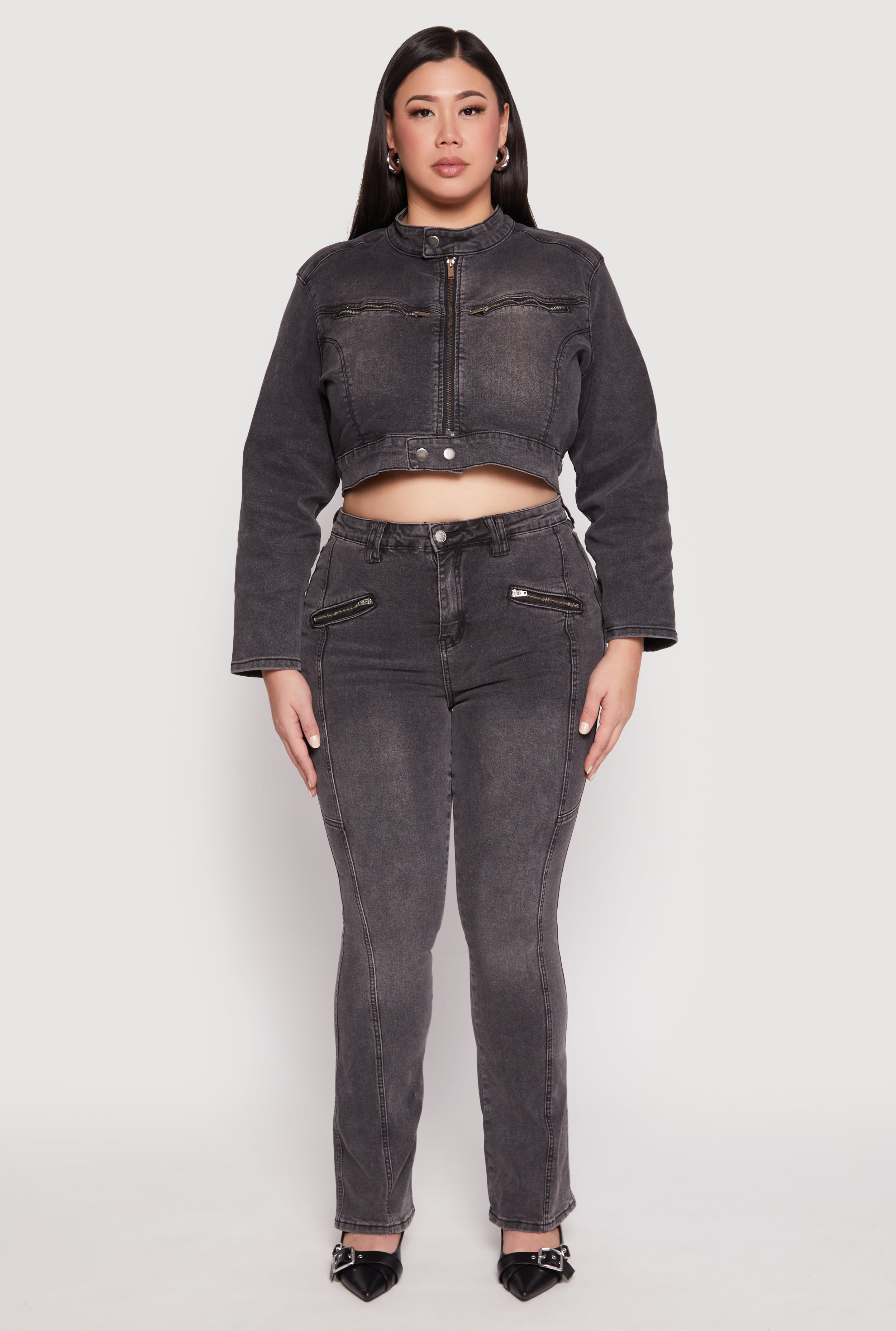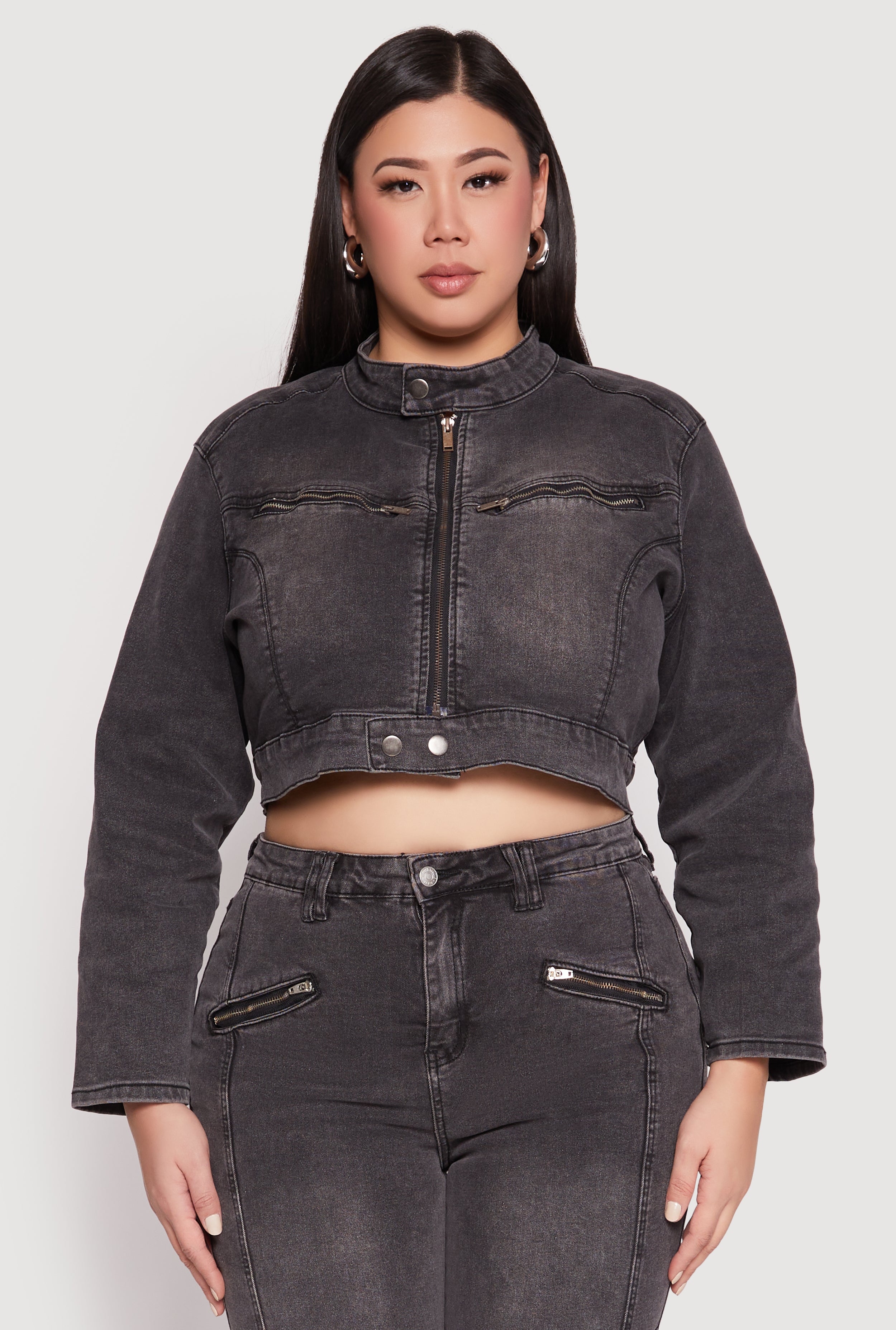 Plus Size Almost Famous Denim Moto Cropped Jacket