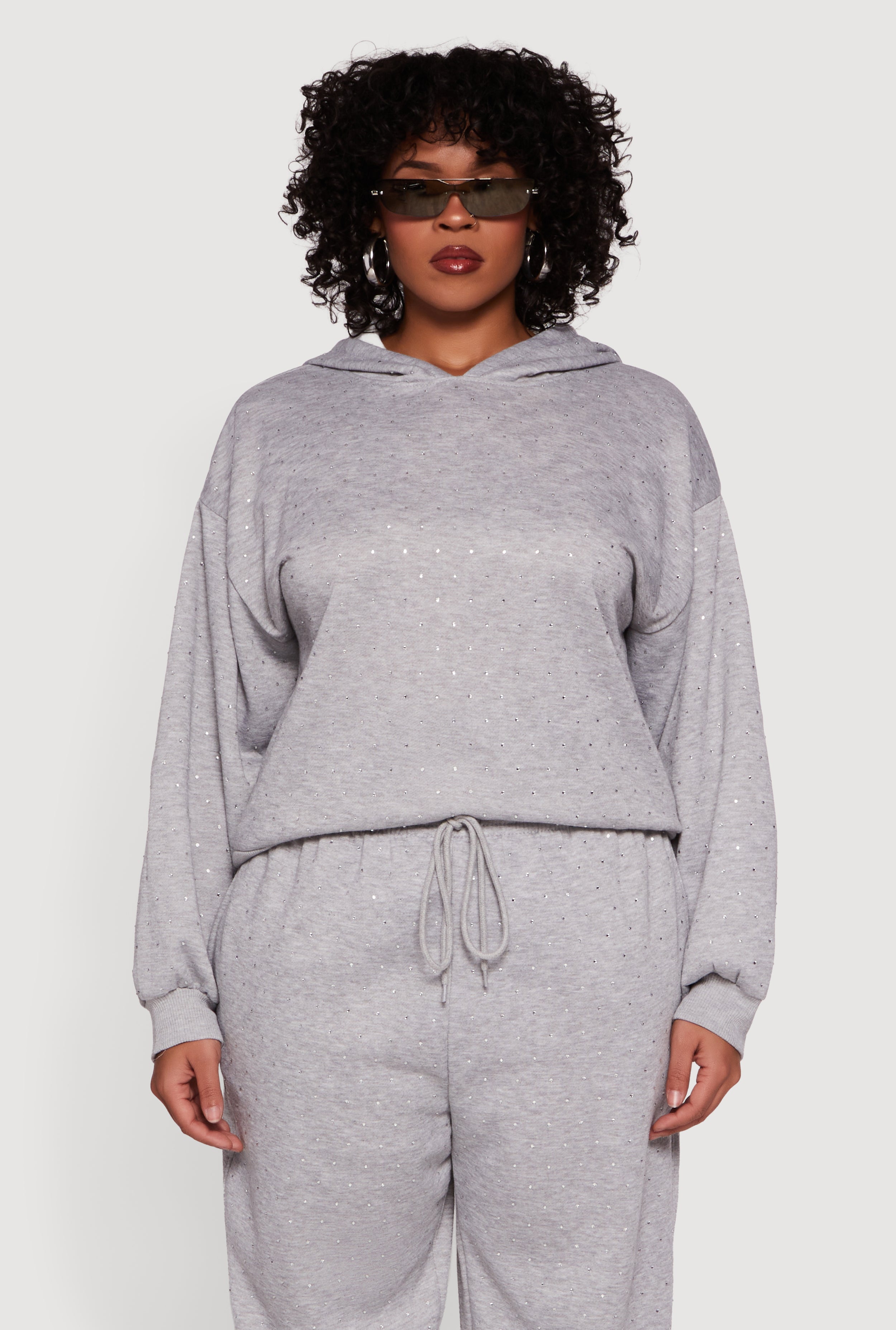Plus Size Rhinestone Studded Pullover Hoodie