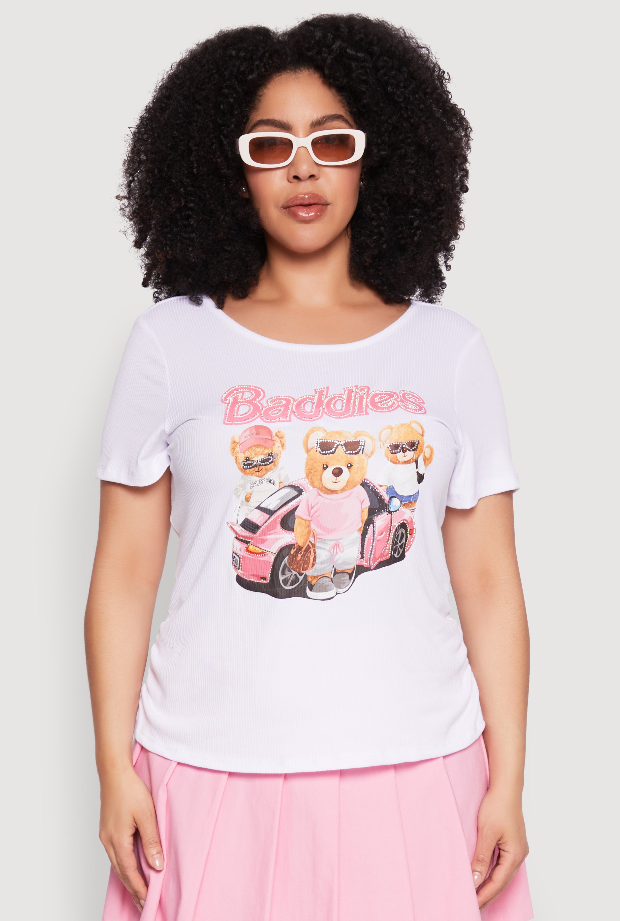 Plus Size Ribbed Knit Baddies Graphic Tee