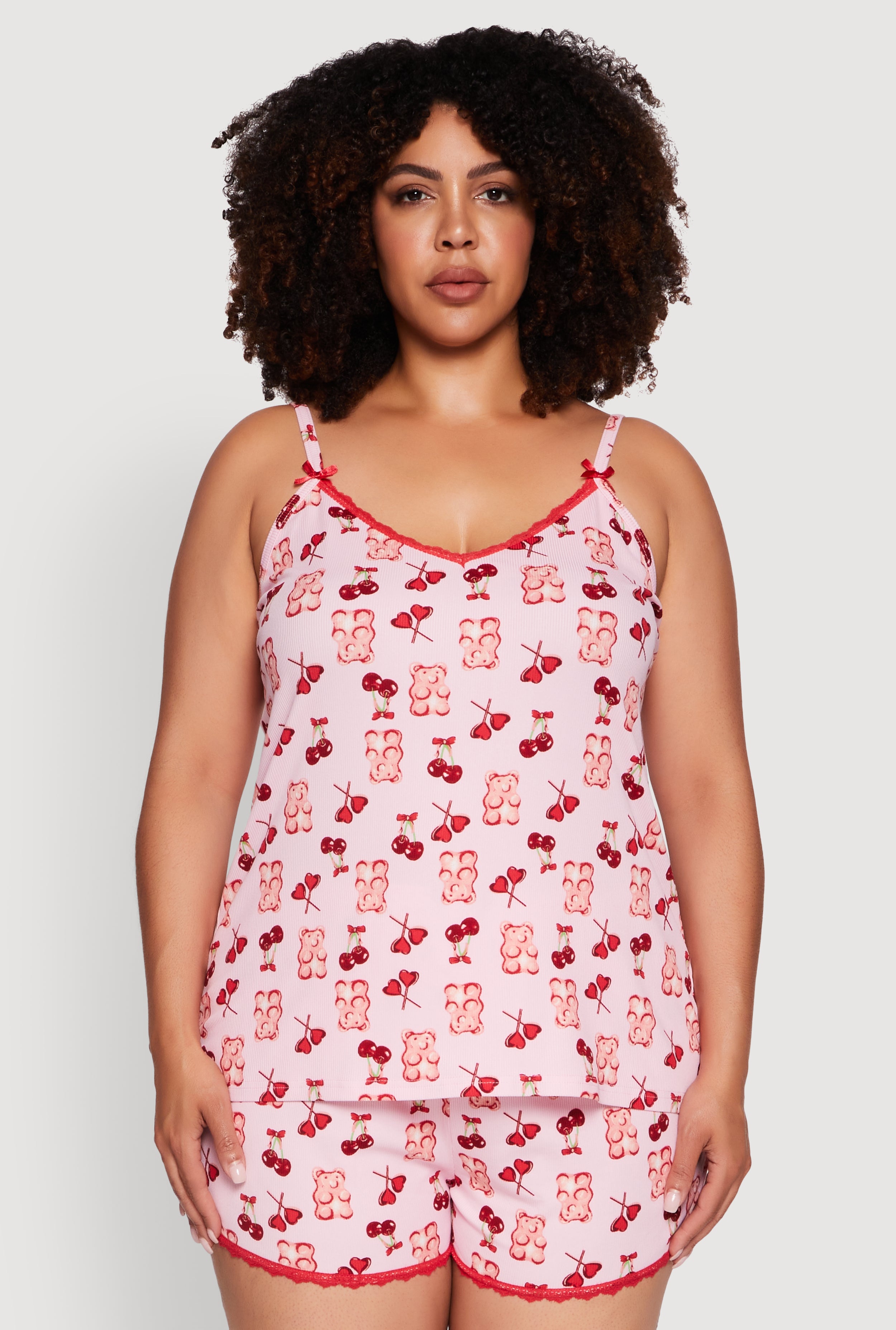 Plus Size Cherry Teddy Print Pajama Cami and Shorts