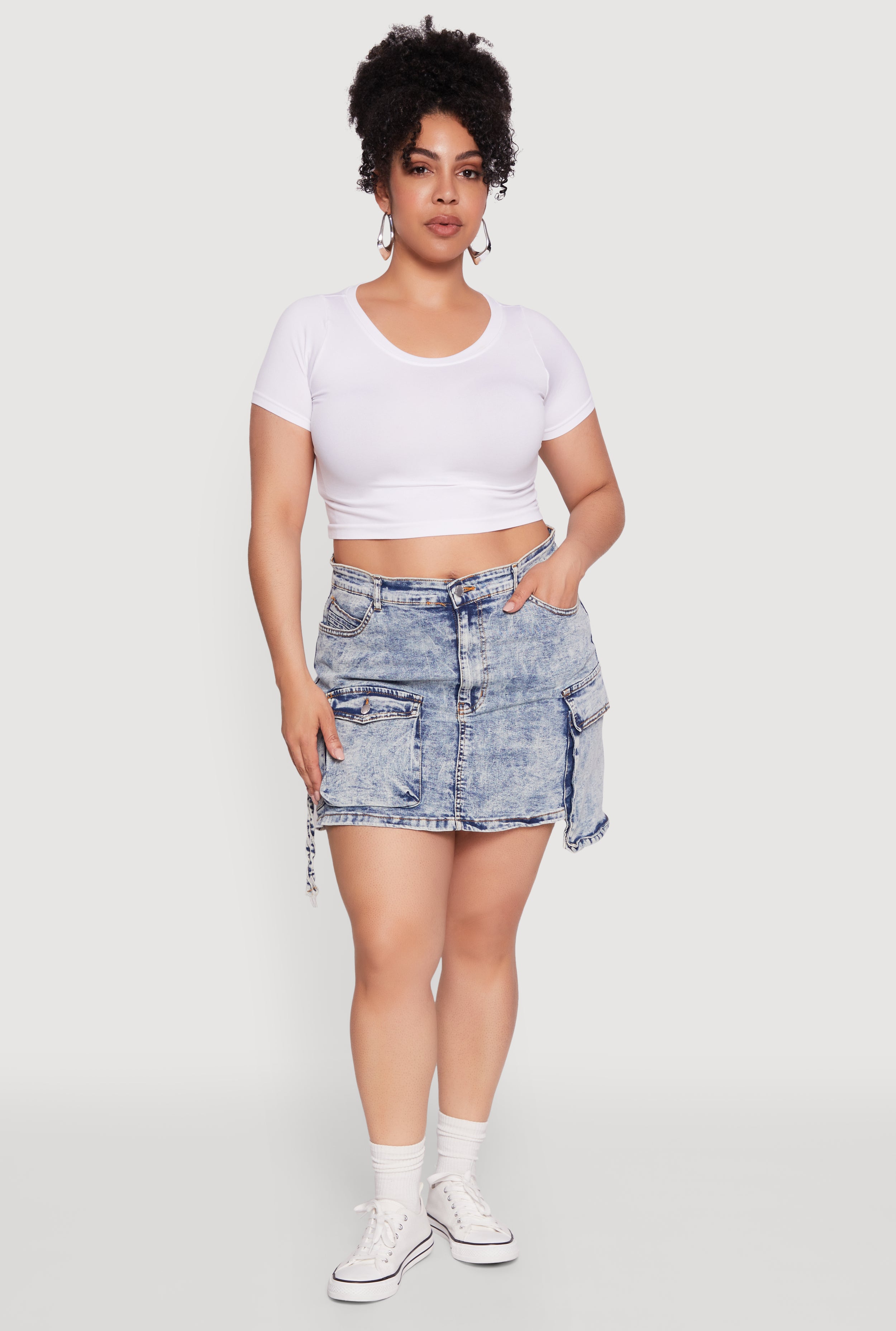 Plus Size Daisy Mineral Wash Denim Cargo Skirt