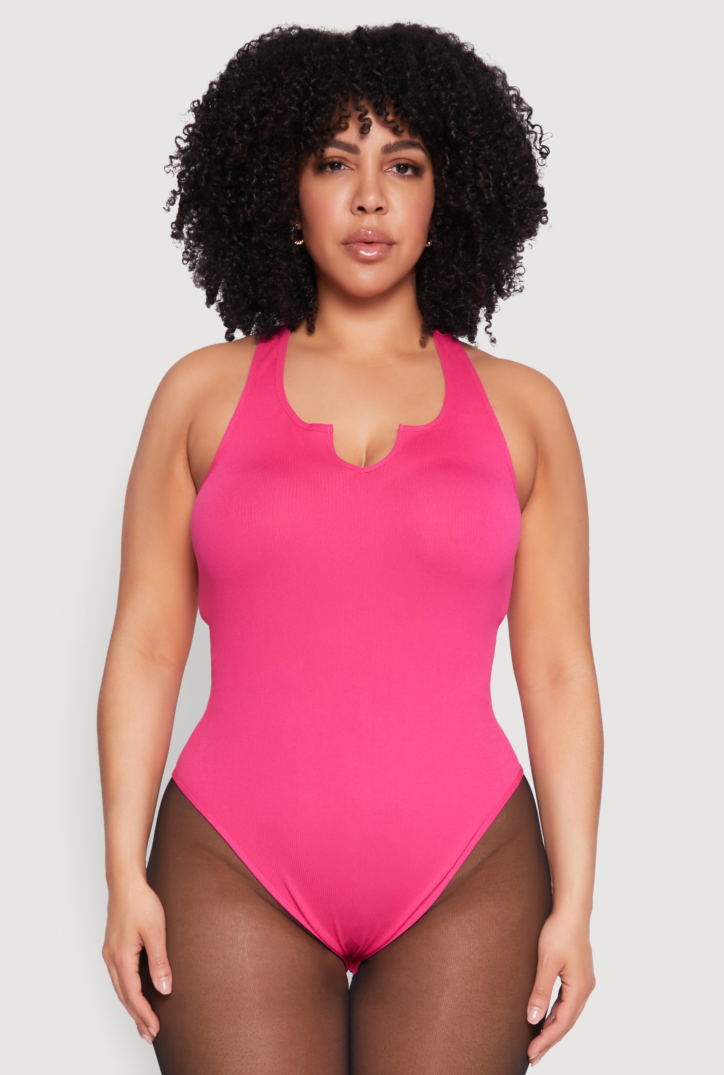 Plus Size Ribbed Notch Neck Tank Bodysuit