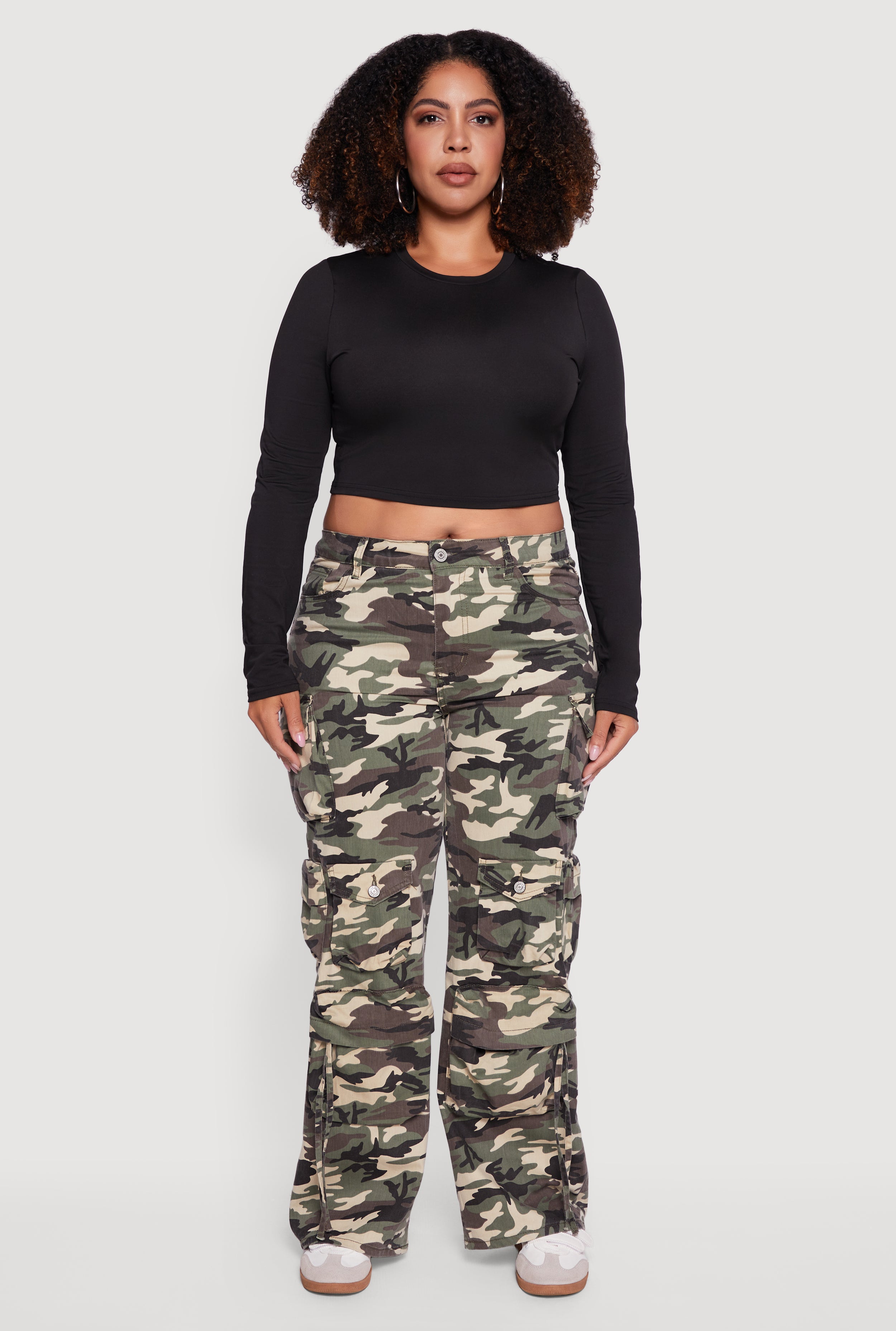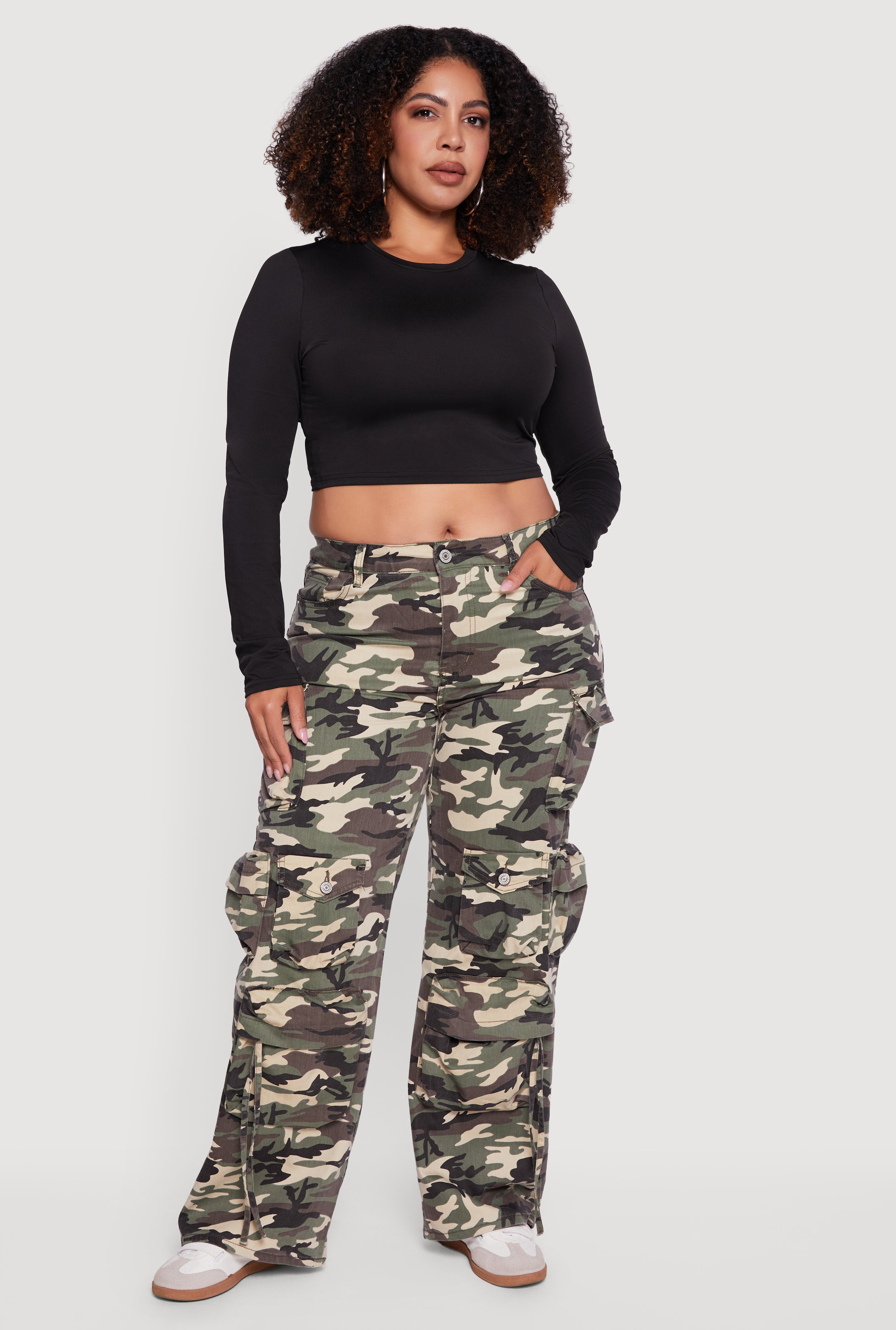 Plus Size High Waisted Wide Leg Camouflage Cargo Pants
