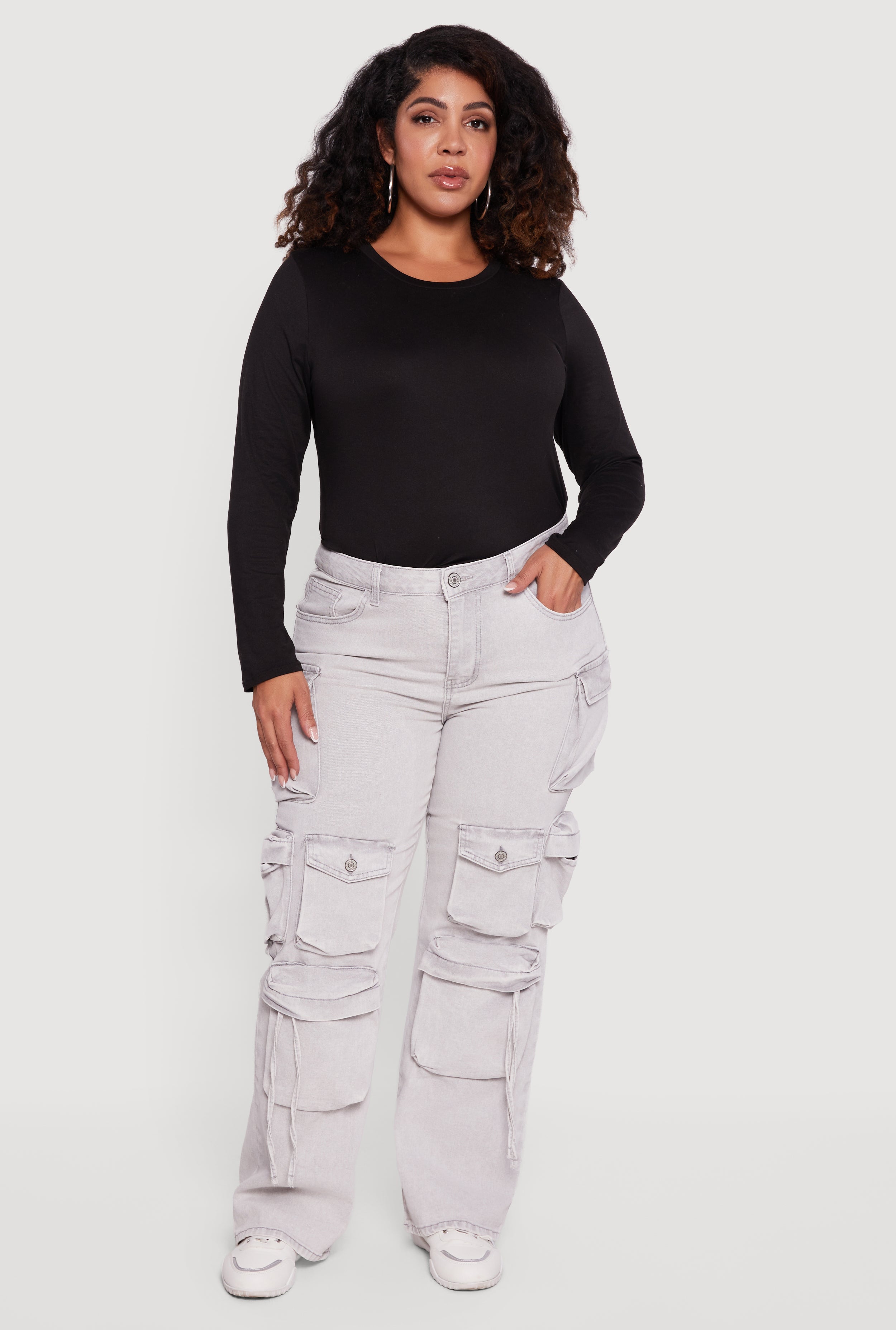 Plus Size VIP Mineral Wash Whiskered Cargo Jeans