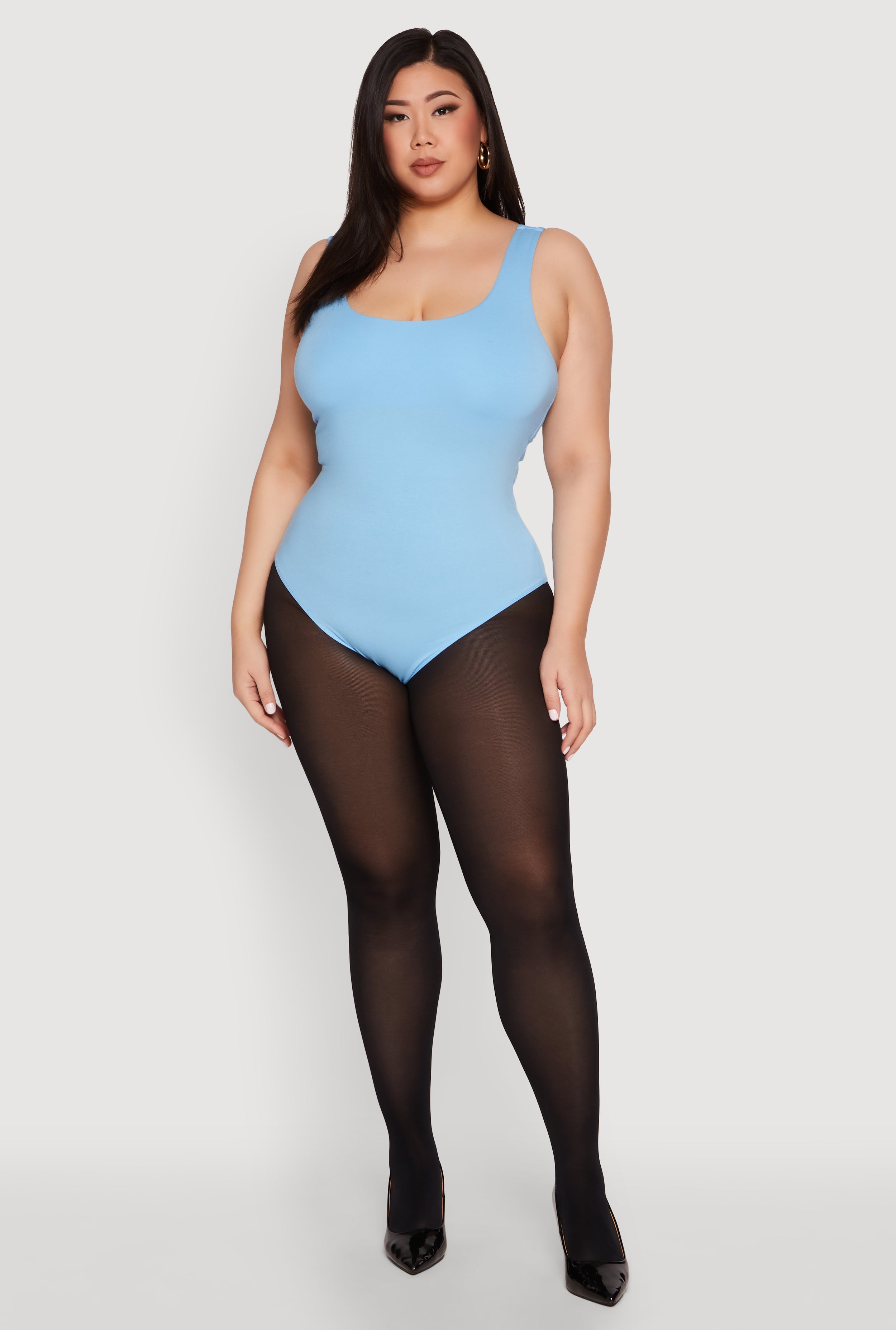 Plus Size Double Layered Scoop Neck Bodysuit