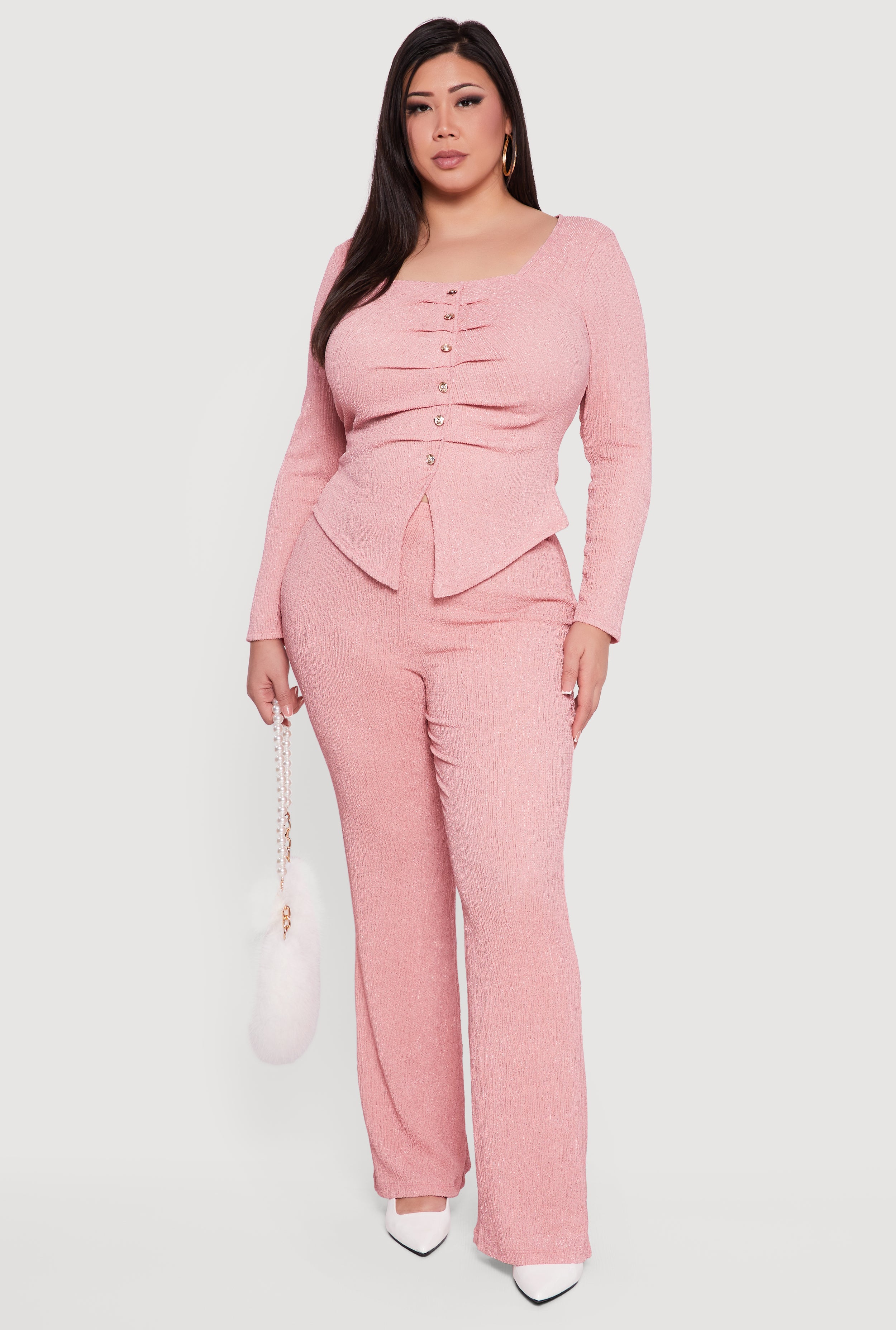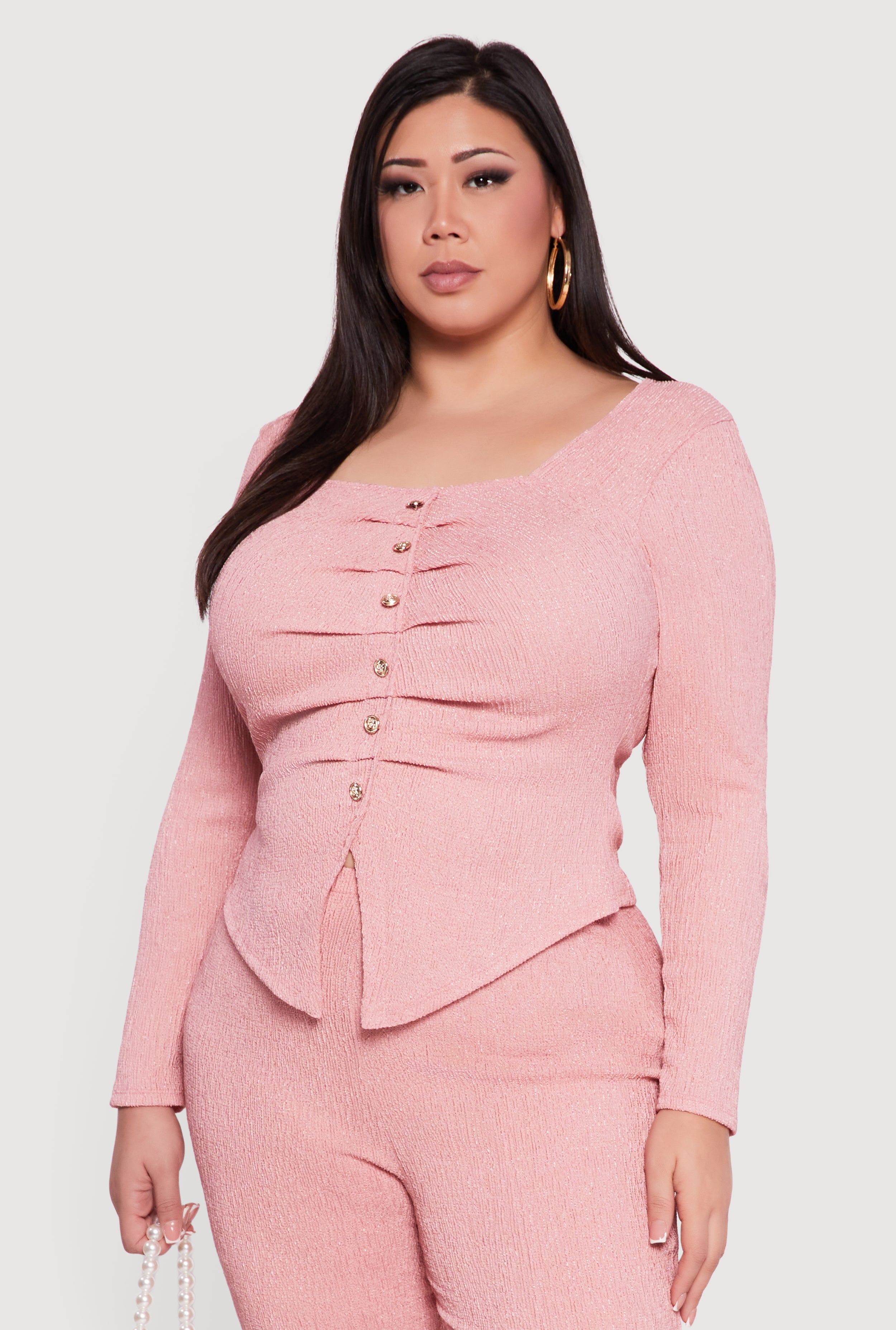 Plus Size Textured Knit Ruched Square Neck Blouse