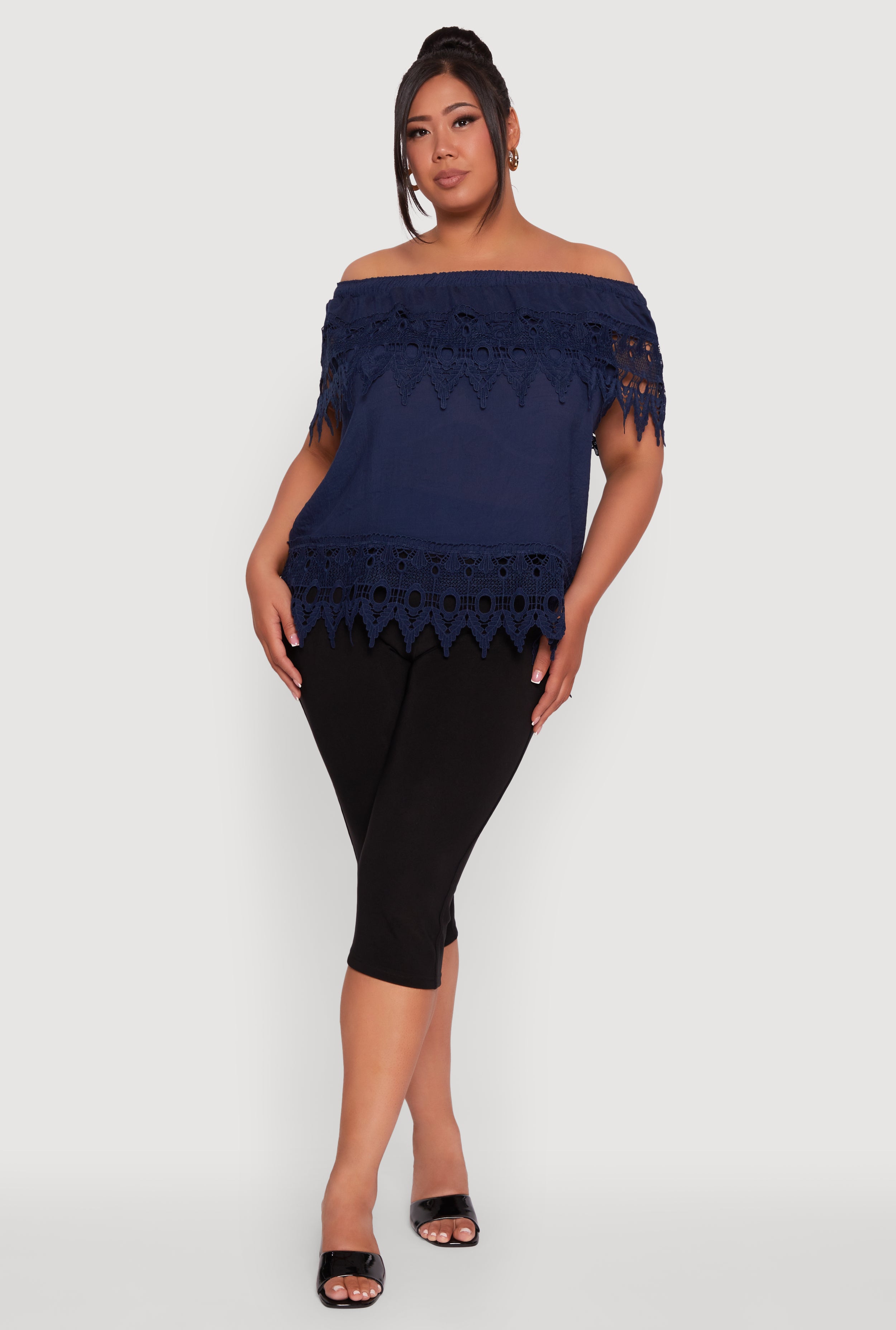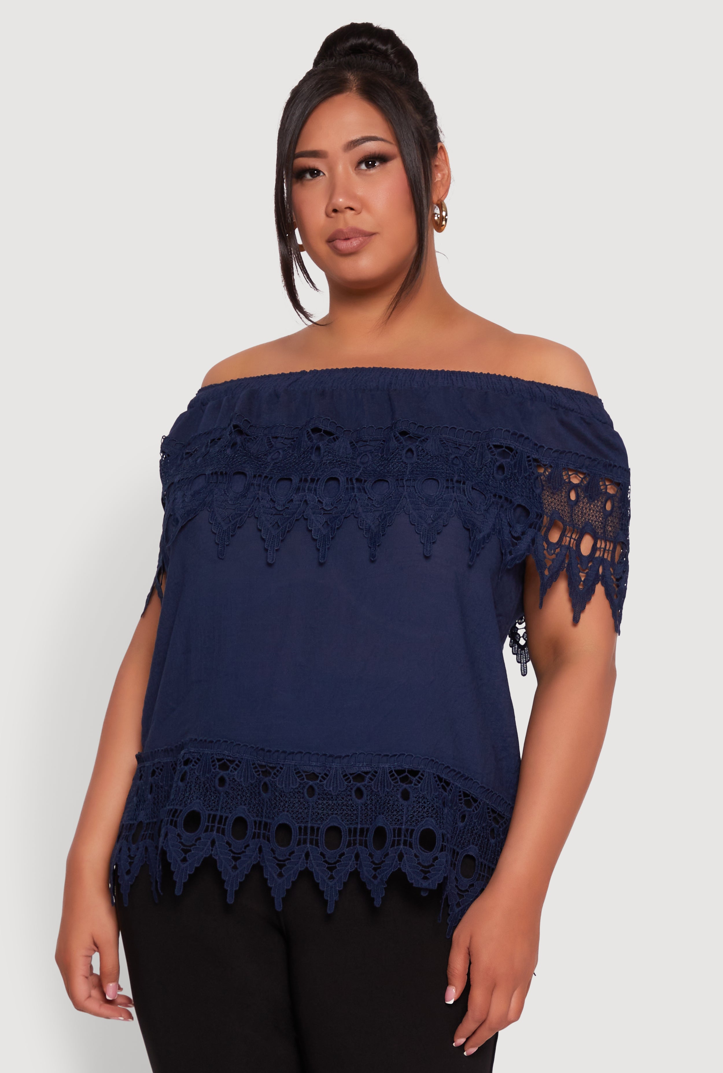 Plus Size Crochet Trim Off the Shoulder Blouse