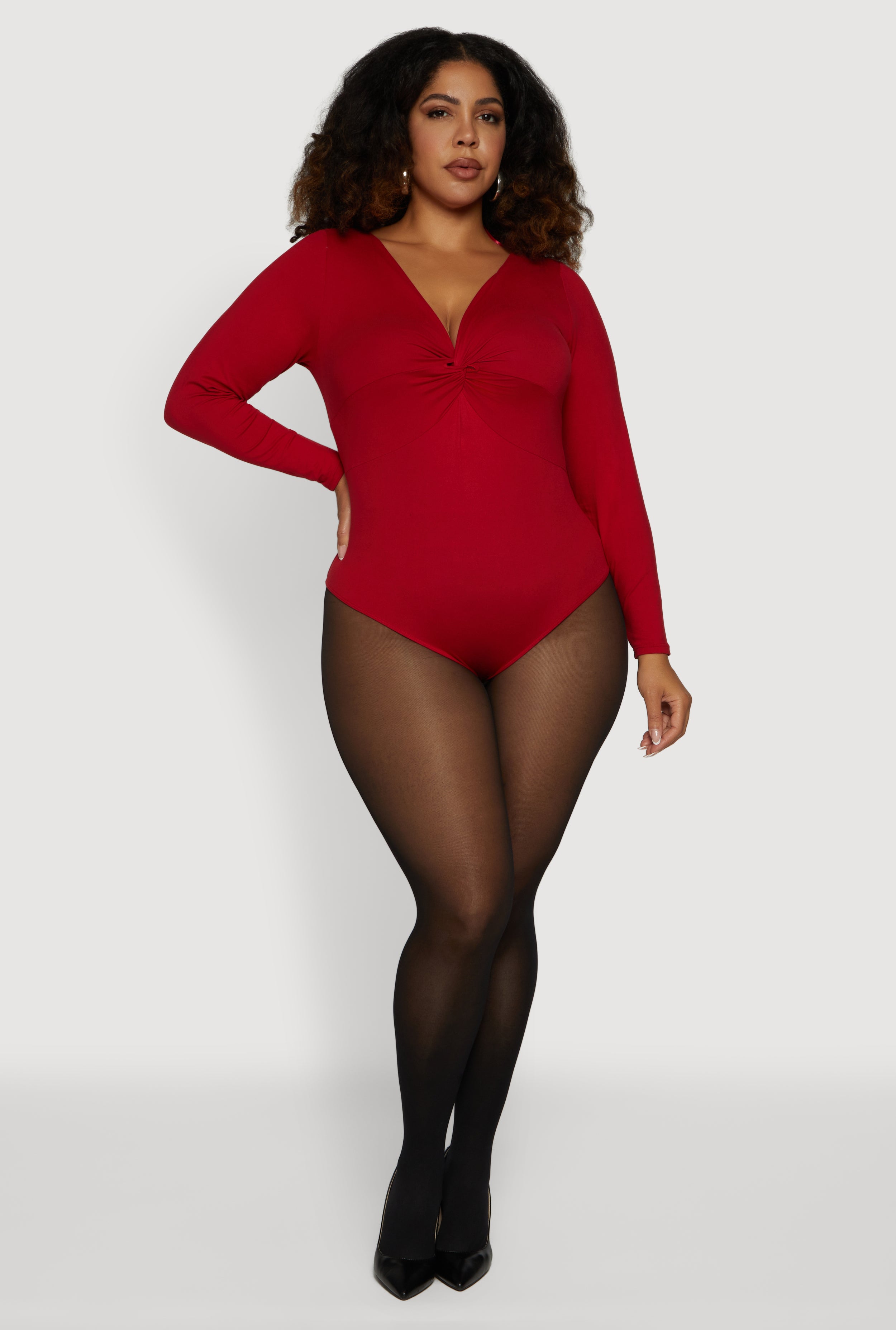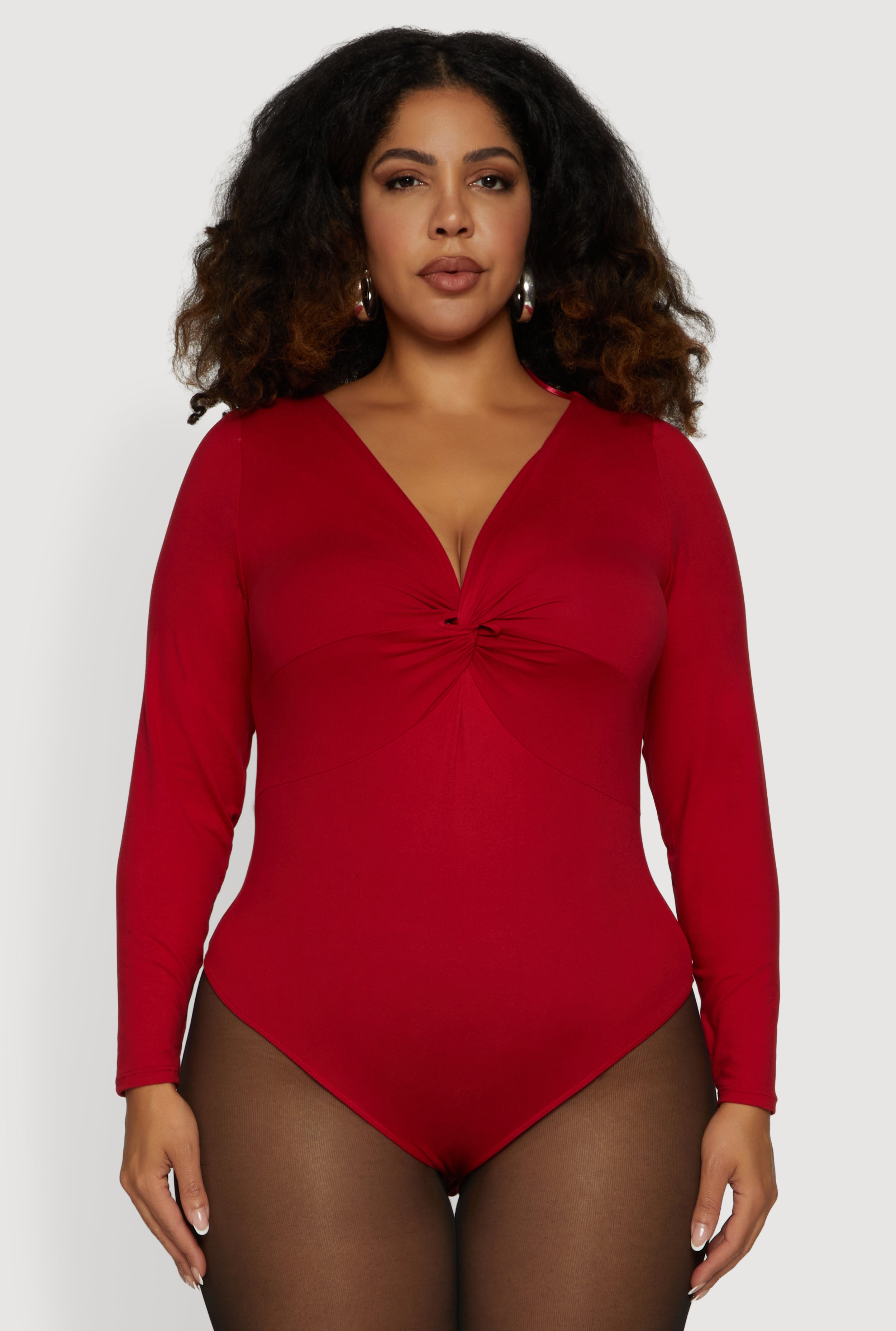 Plus Size Twist Front Plunge Neck Long Sleeve Bodysuit