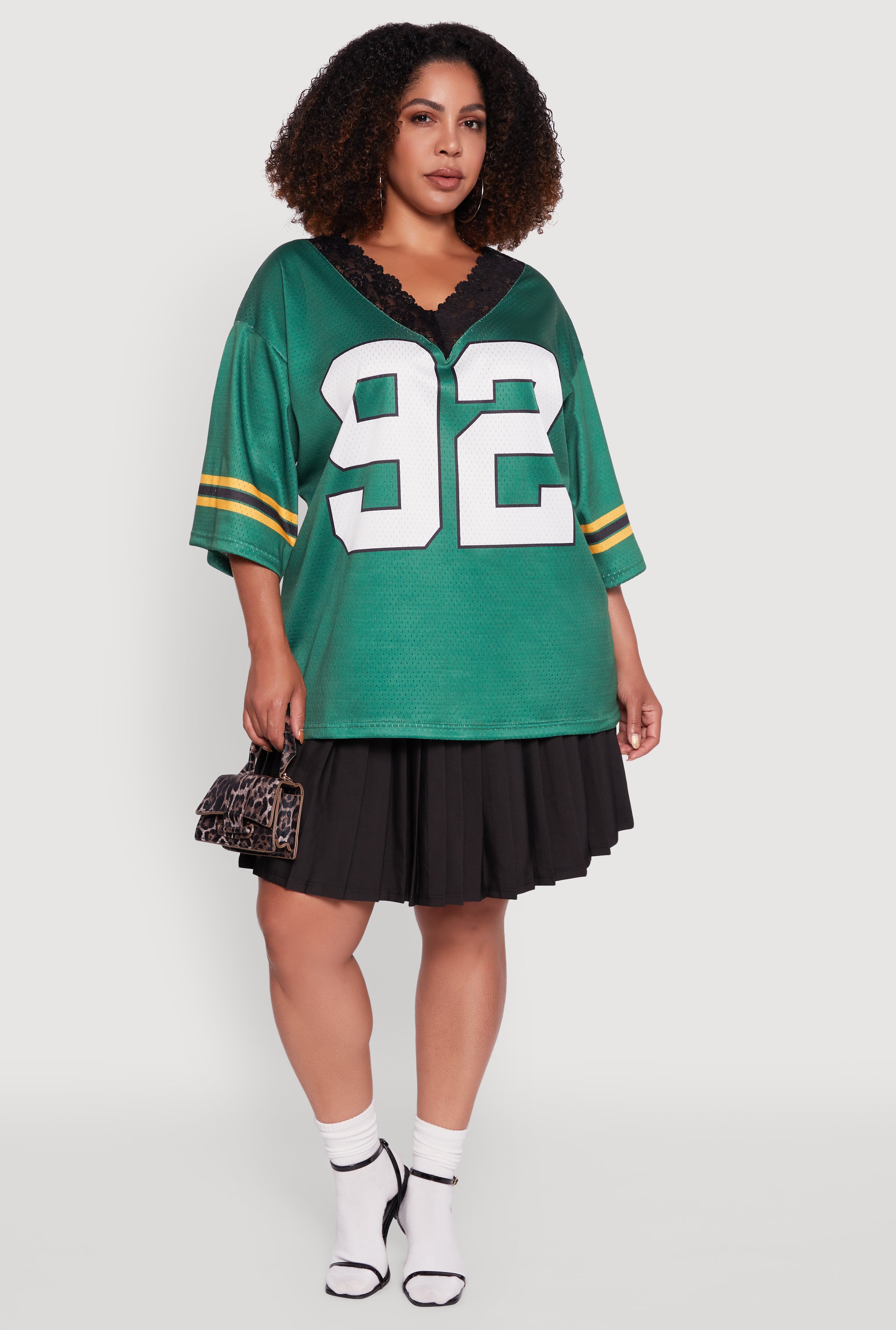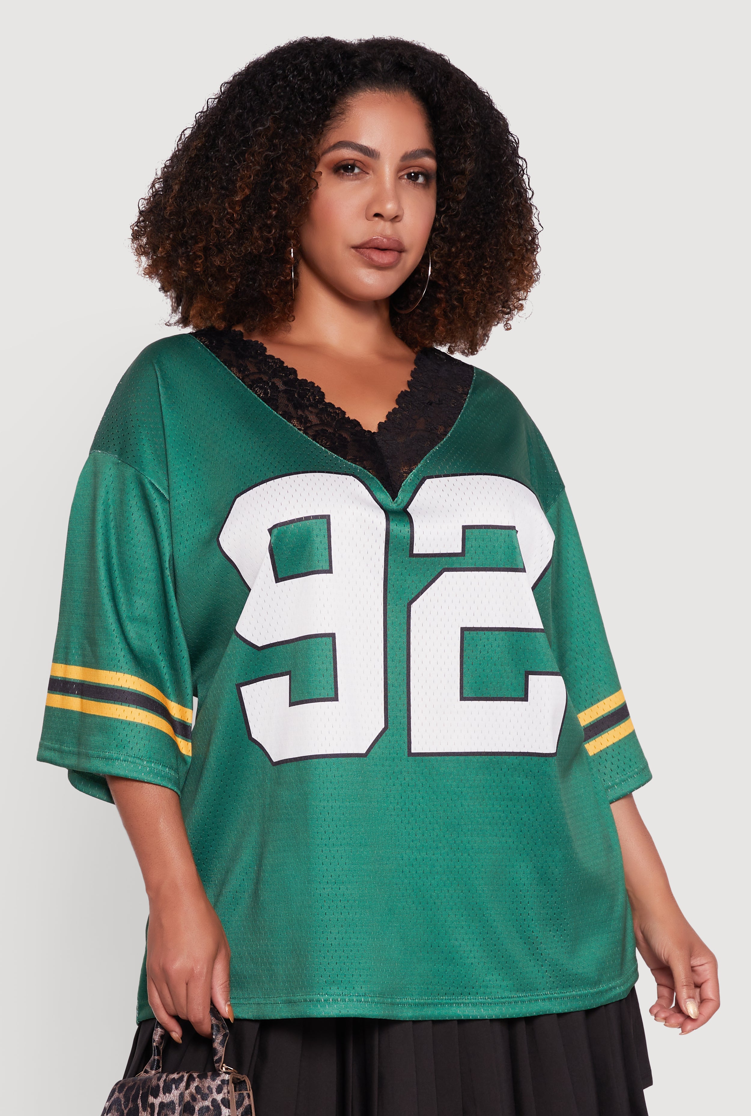 Plus Size Lace Trim 92 Graphic Football Jersey