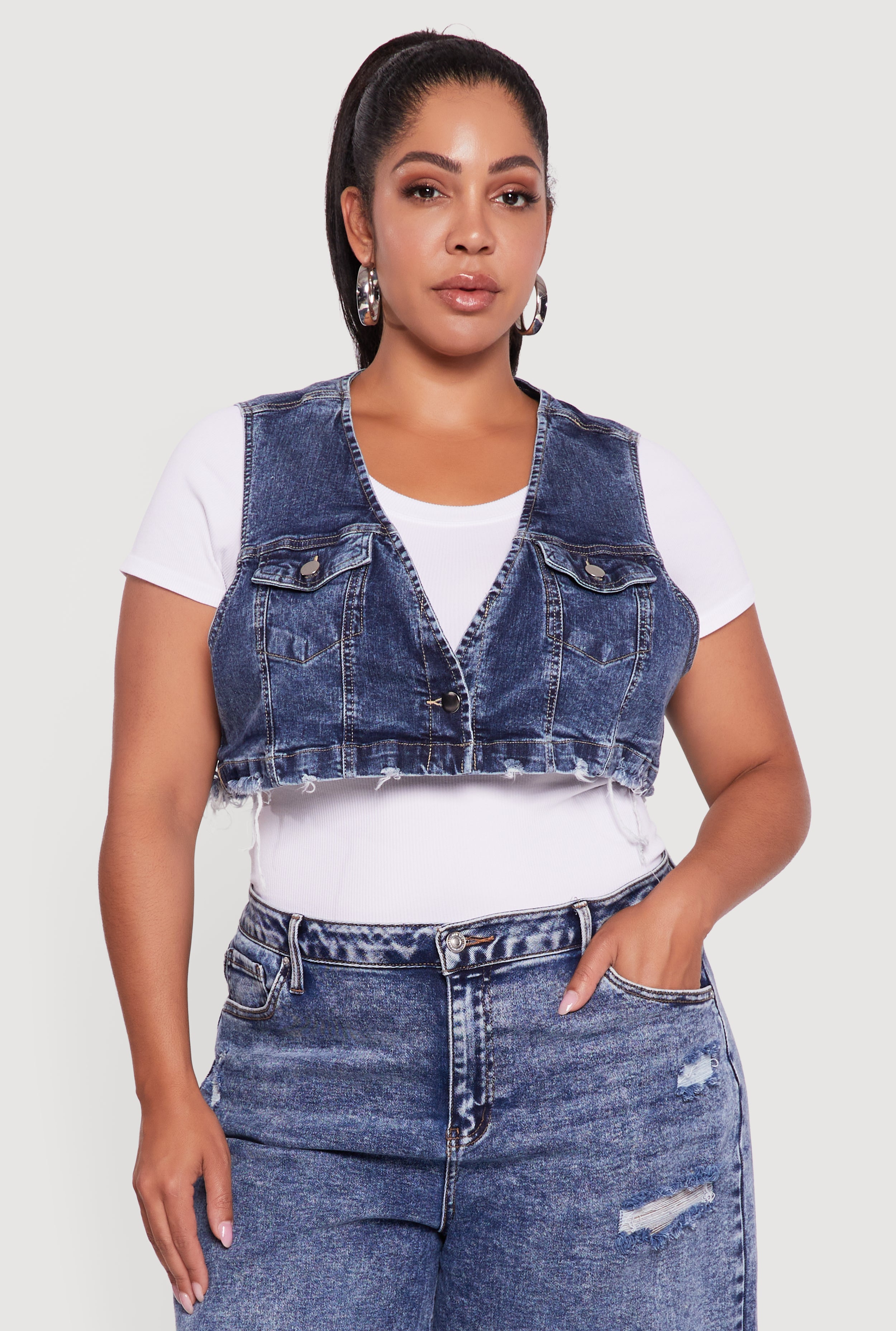 Plus Size Acid Wash Cropped Distressed Denim Vest
