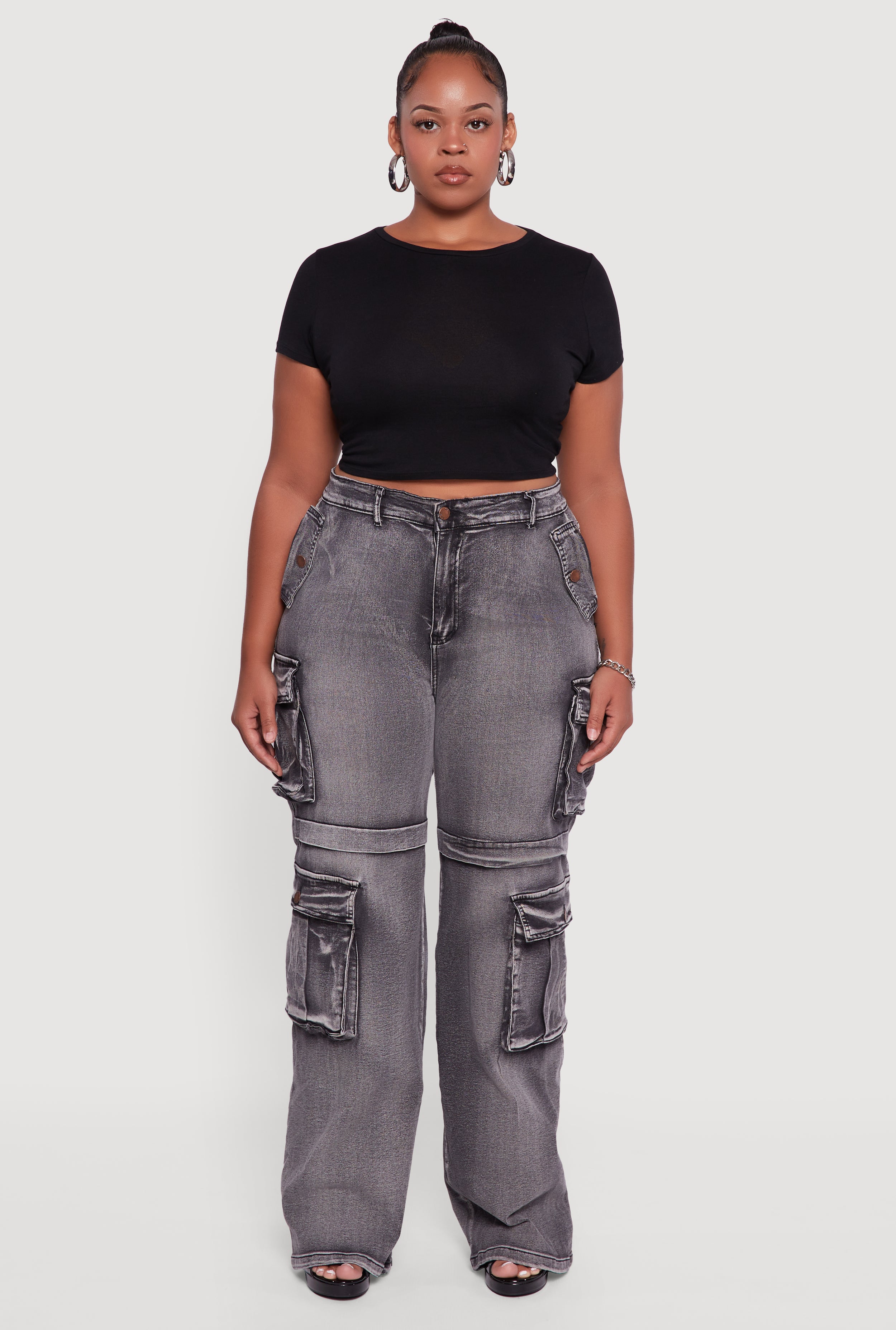 Plus Size Mineral Wash Straight Leg Cargo Jeans