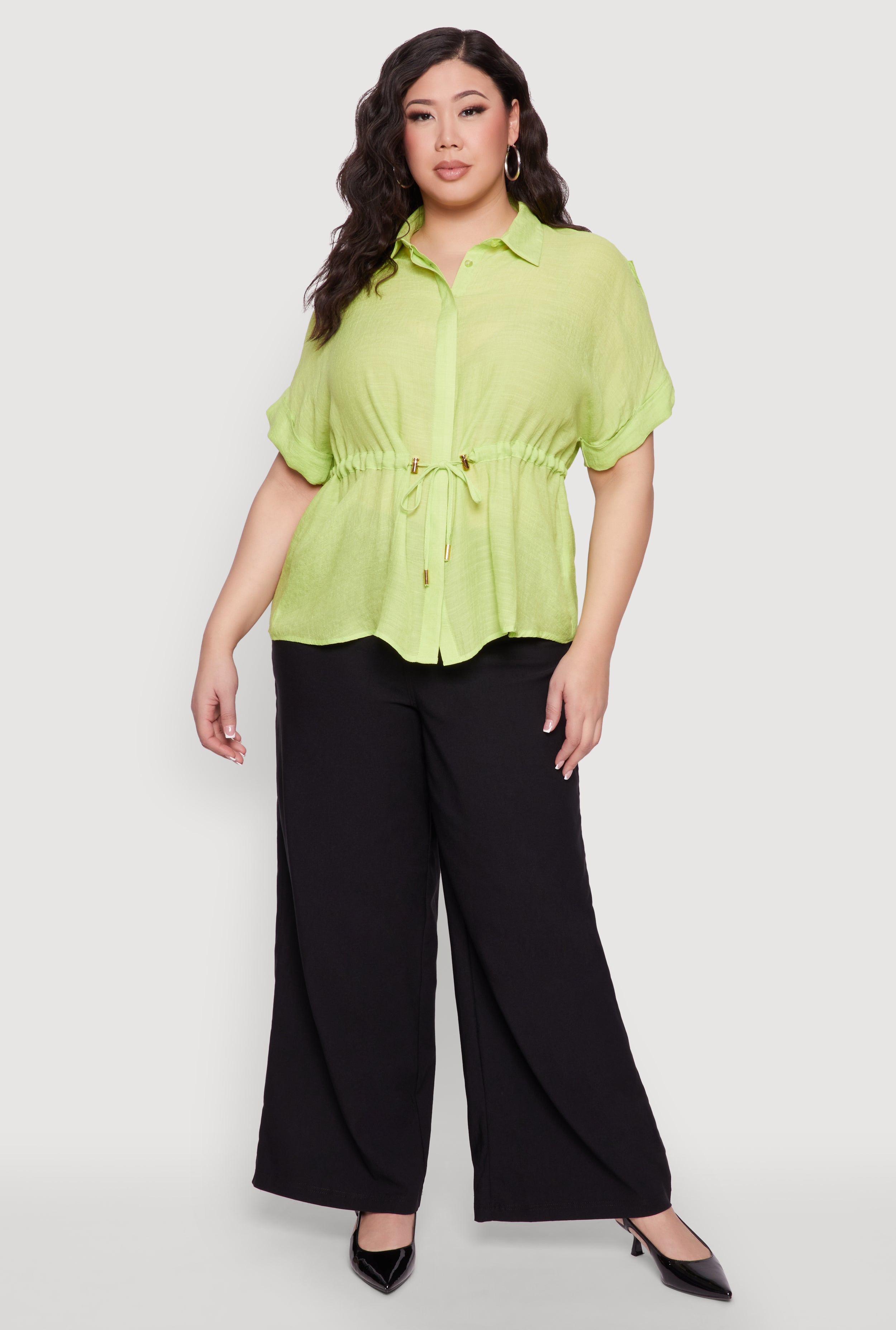 Plus Size Poplin Toggle Drawstring Capri Pants