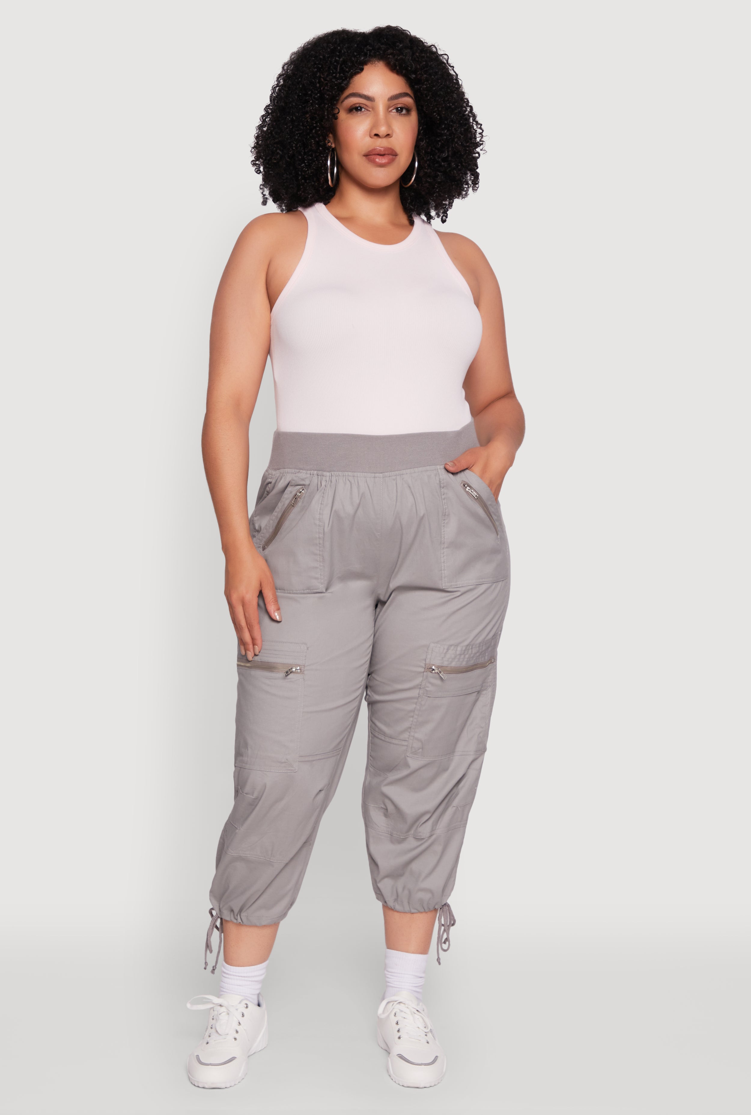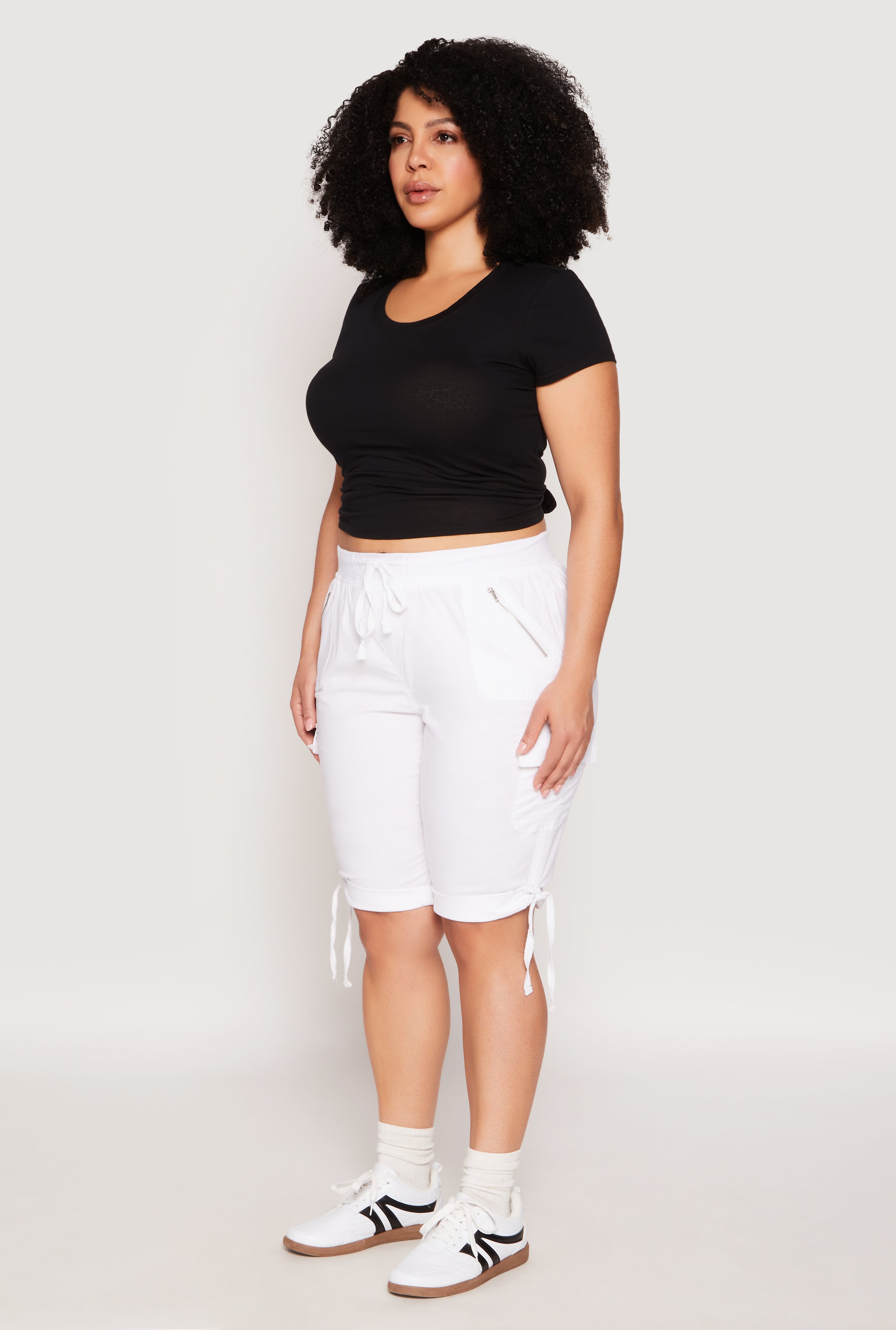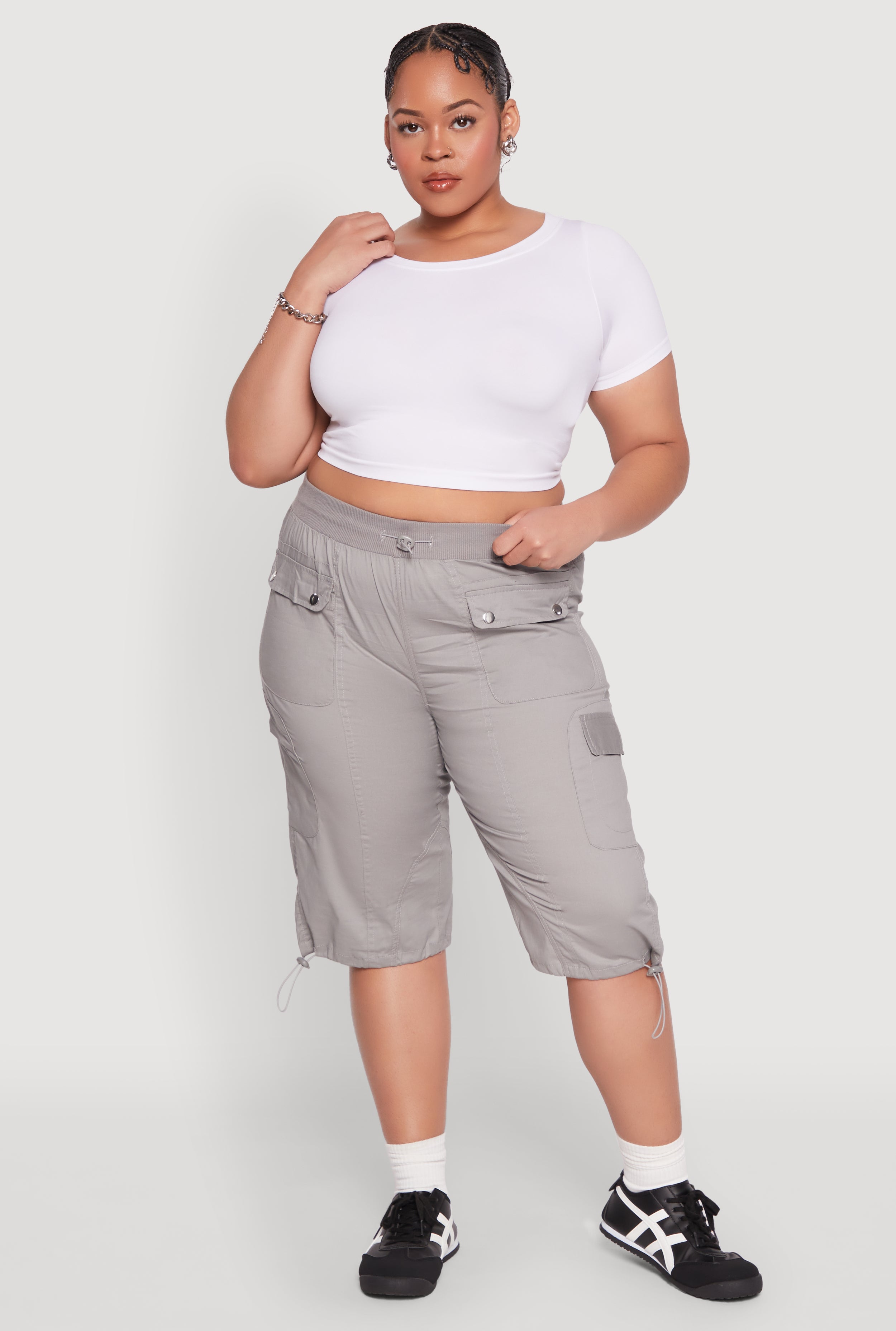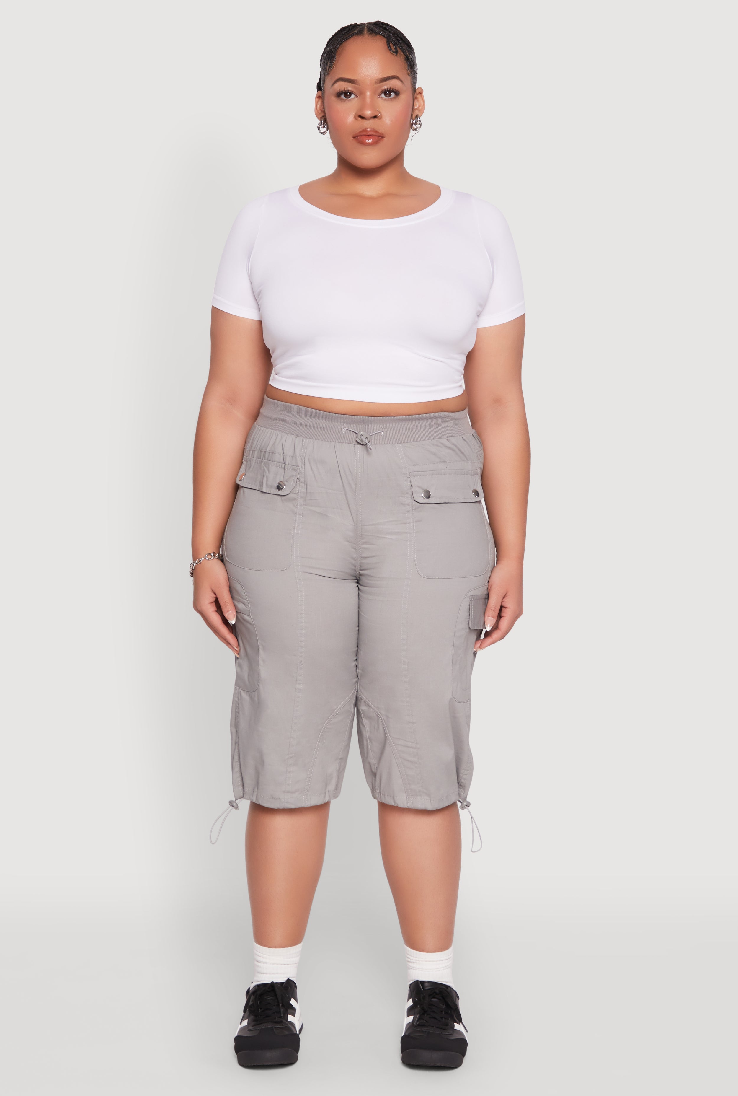 Plus Size Poplin Toggle Drawstring Cargo Capri Pants