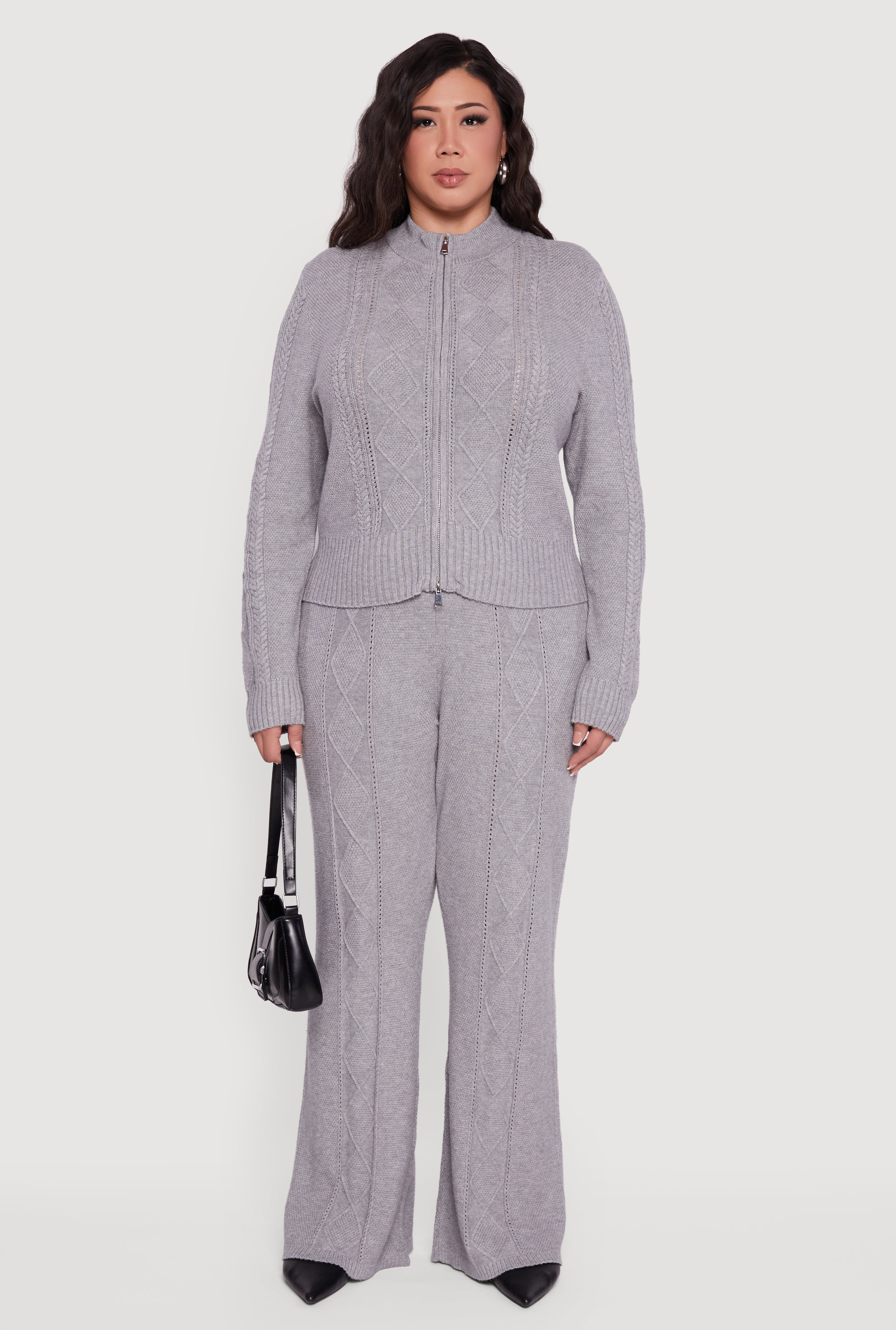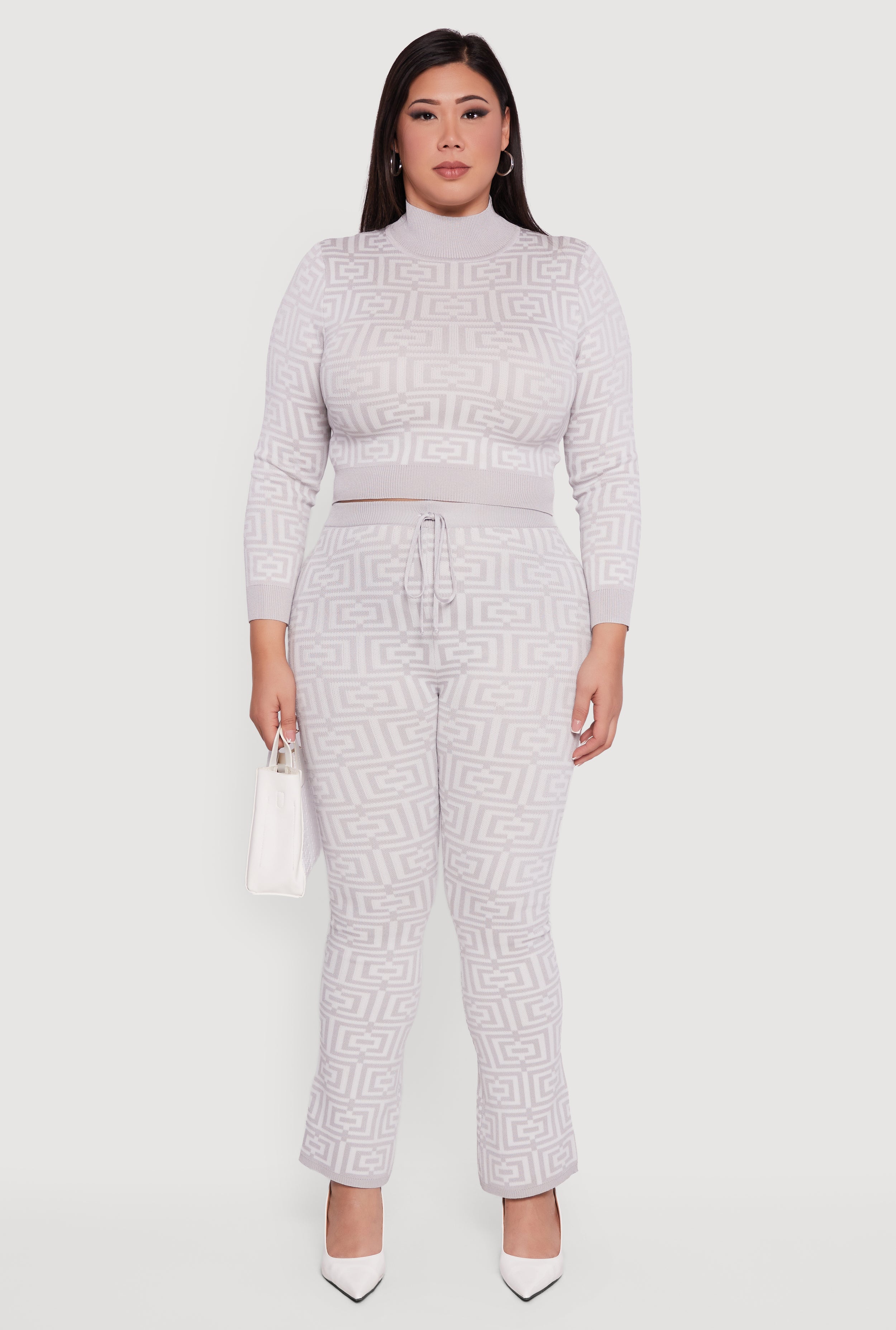 Plus Size Knitted Geometric Slim Bootcut Pants