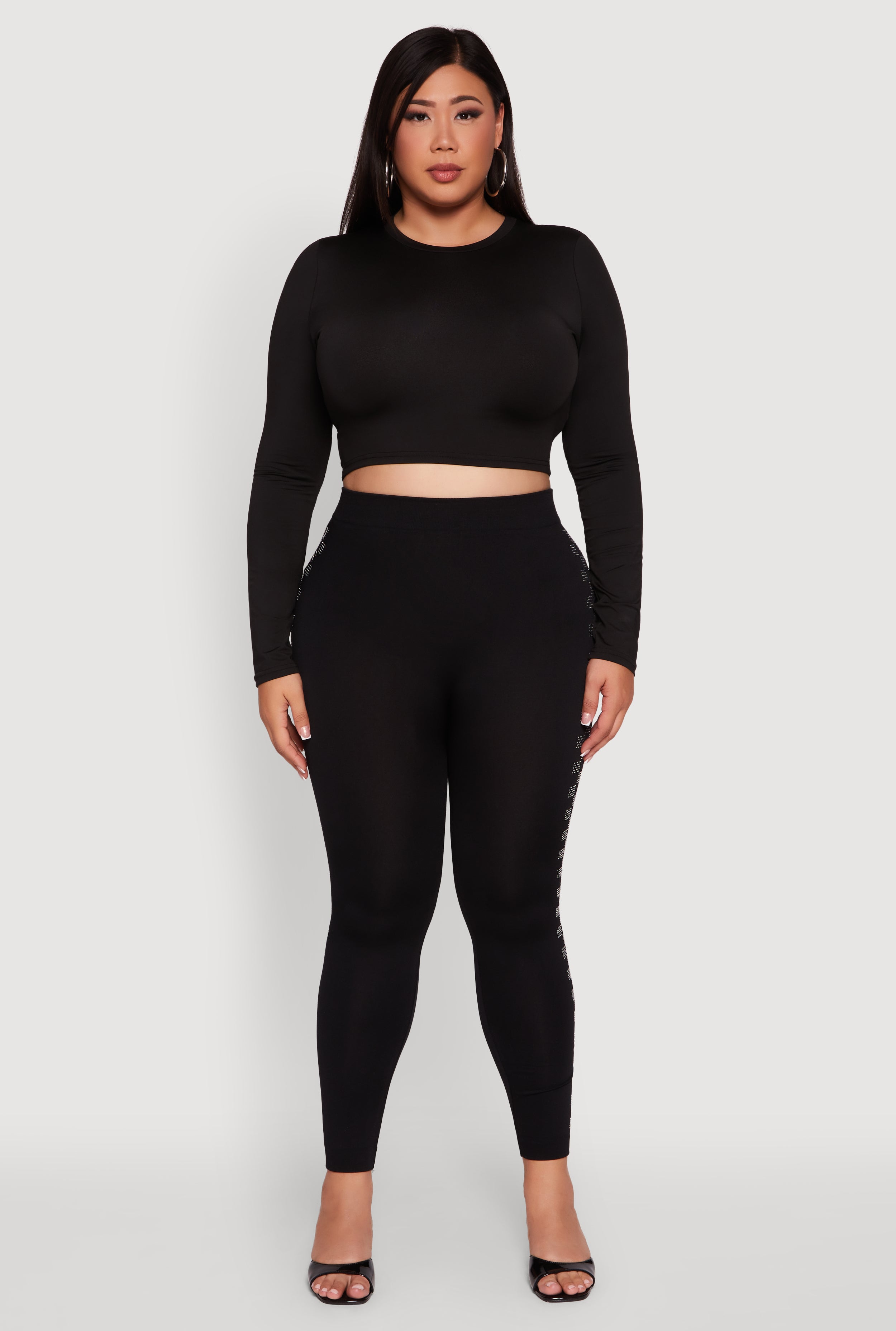 Plus Size High Waisted Side Rhinestone Checkered Leggings