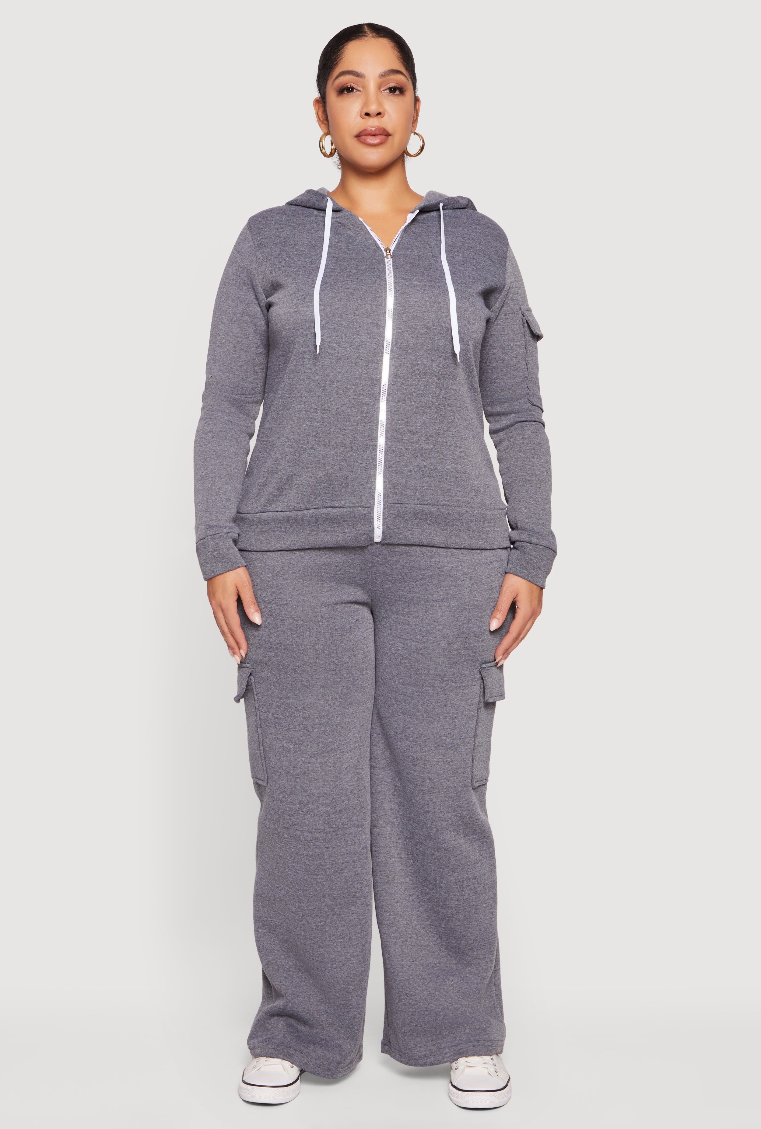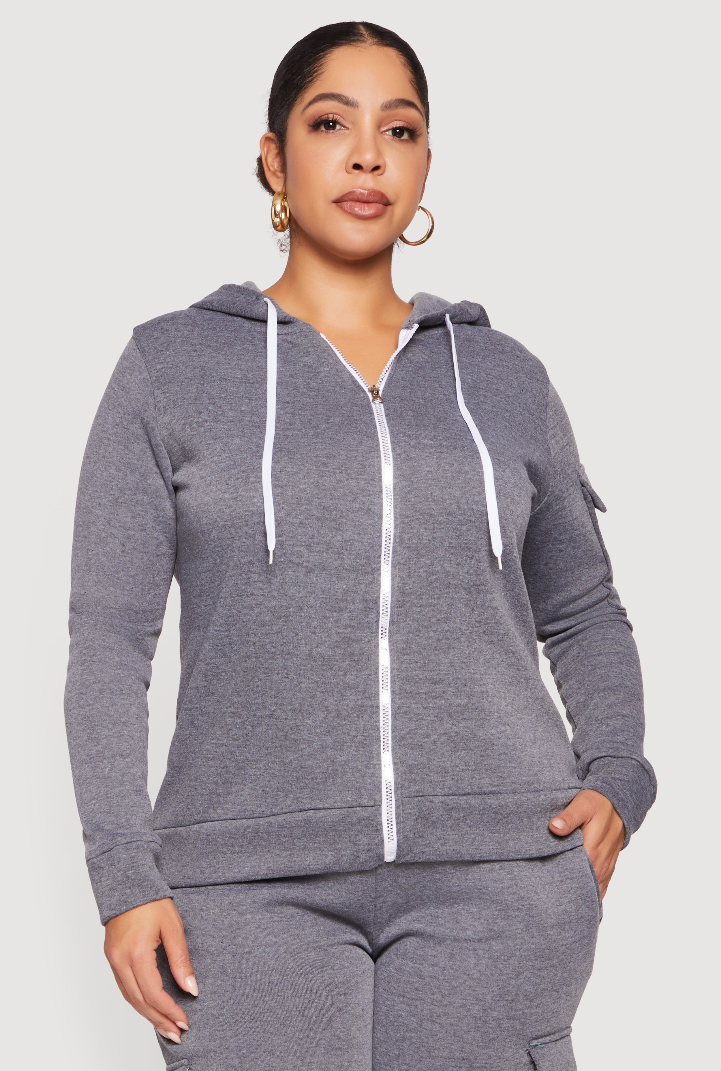 Plus Size Long Sleeve Zip Front Hoodie with Cargo Pocket