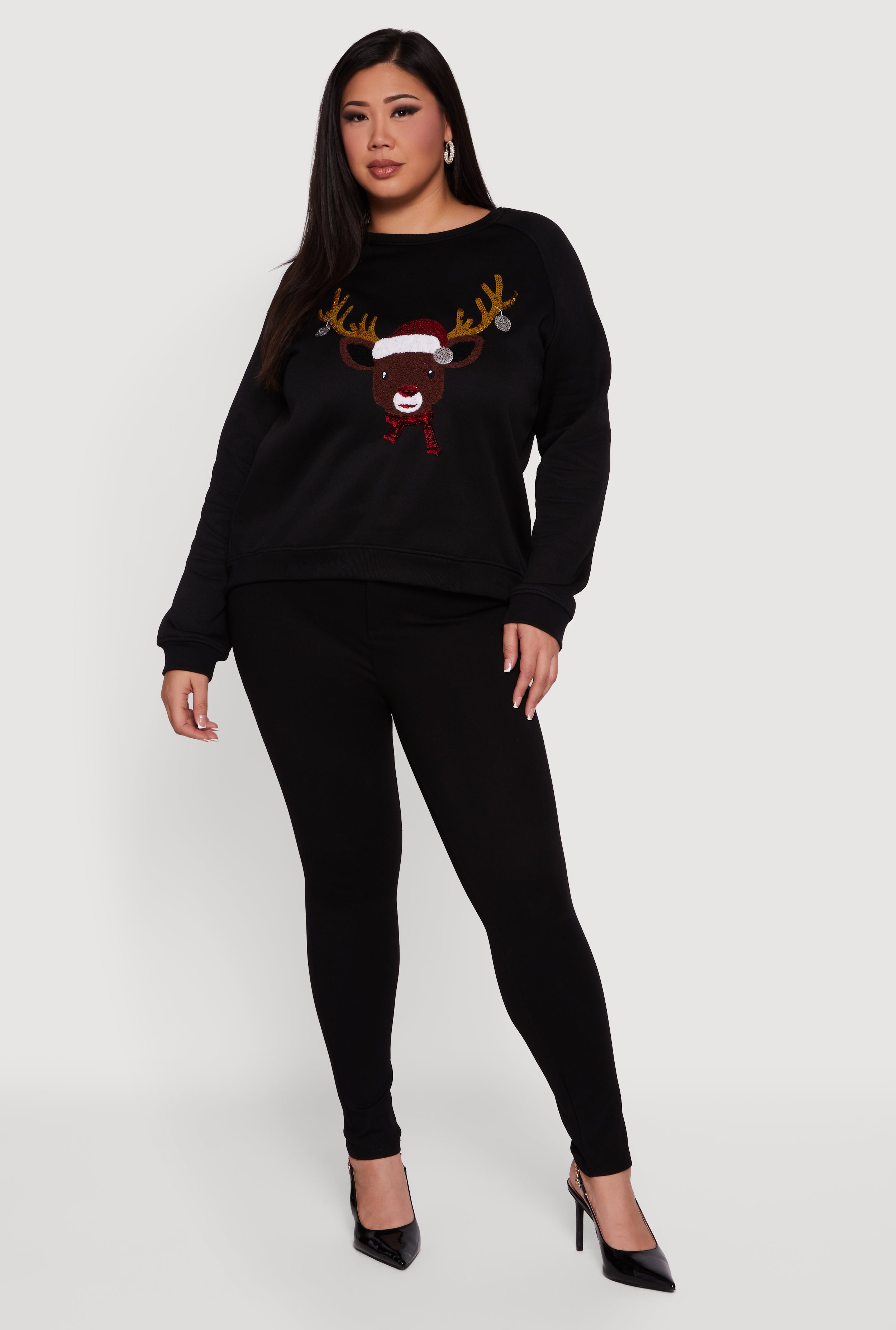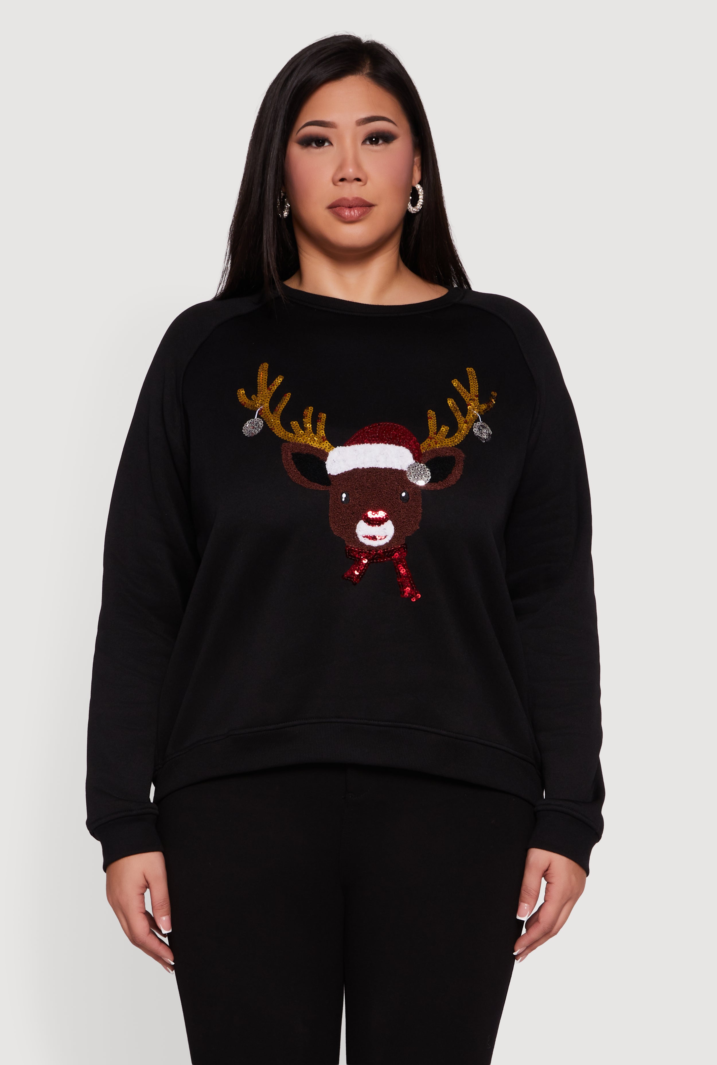 Plus Size Sequin Reindeer Chenille Patch Graphic Sweatshirt