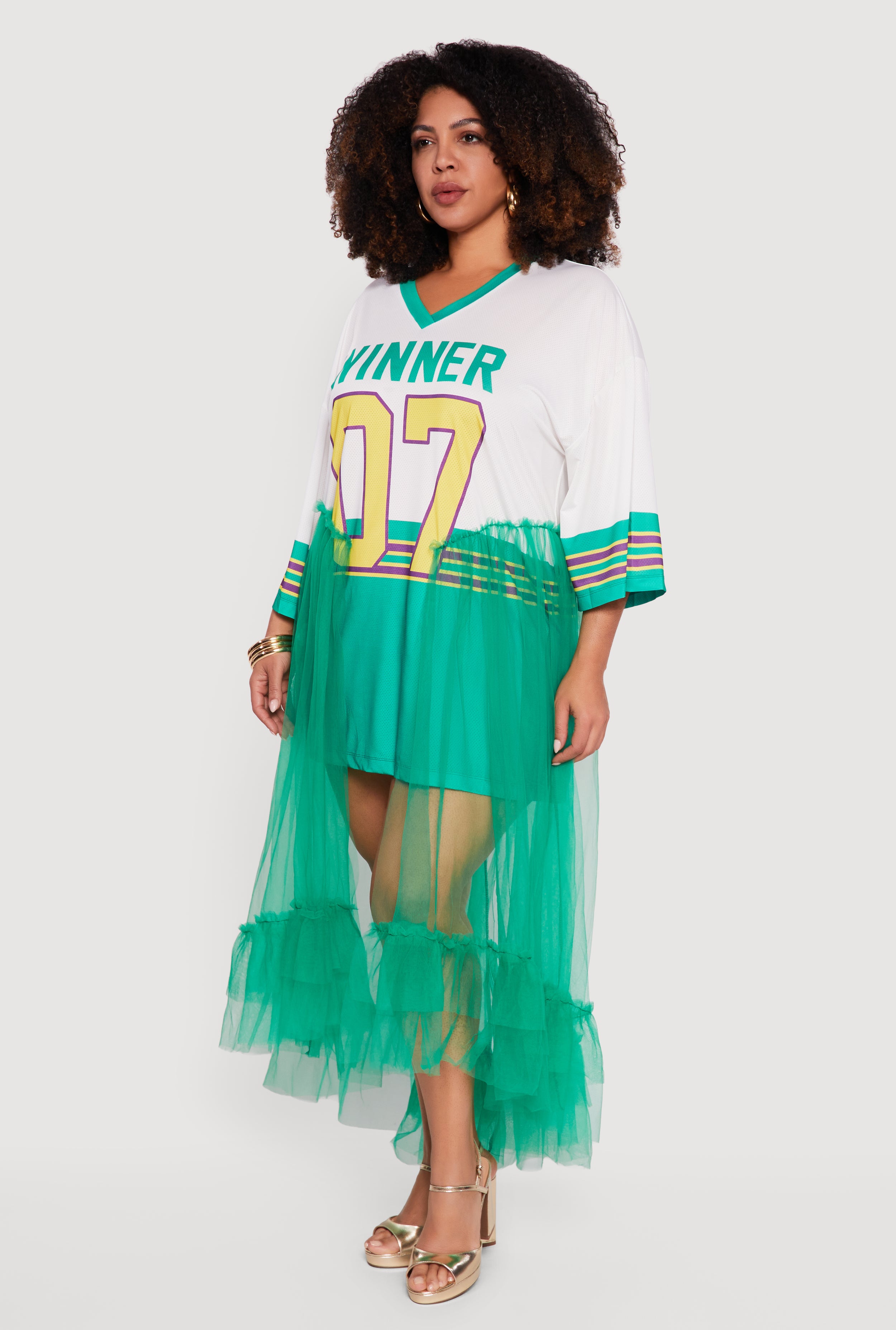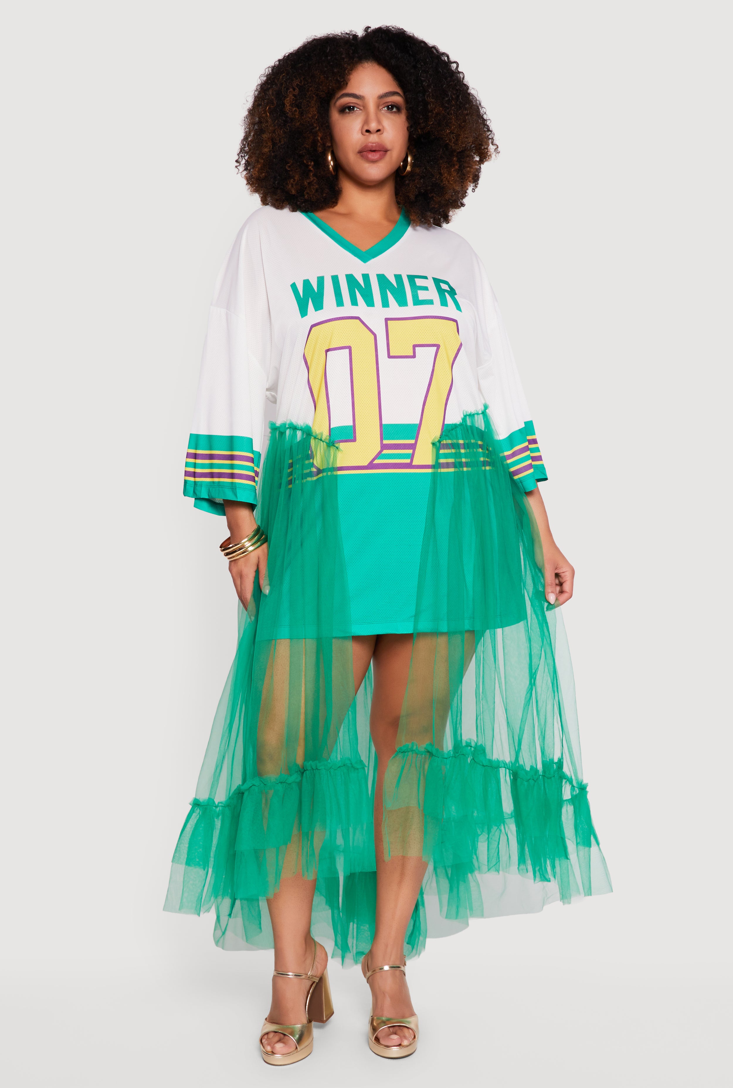 Plus Size Jersey Mesh Winner Graphic Maxi Dress